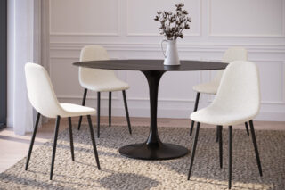 Diona Dining Chair, White Boucle And Black Legs