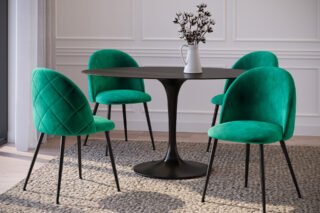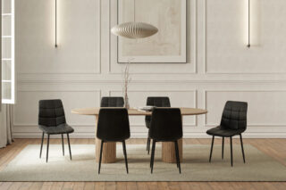 Wolfgang, Black Vegan Leather And Faux Wood Metal Legs