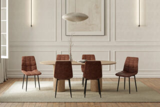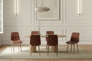 Wolfgang, Brown Vegan Leather And Faux Wood Metal Legs