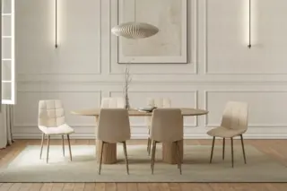 Wolfgang, Cream Vegan Leather And Faux Wood Metal Legs