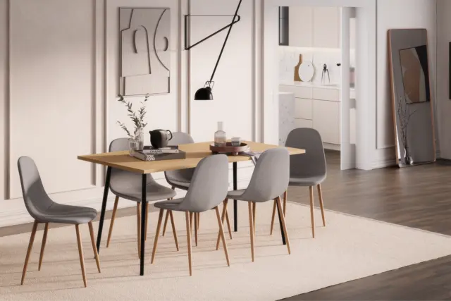 Wayner Dining Chair, Light Grey And Burlywood Legs