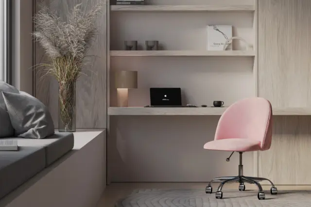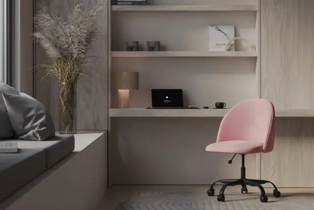 Modern Office ChairsEvdano Office Chair - Shell Pink Velvet and Chrome Base - Without Wheels £495 £154 £99 +69