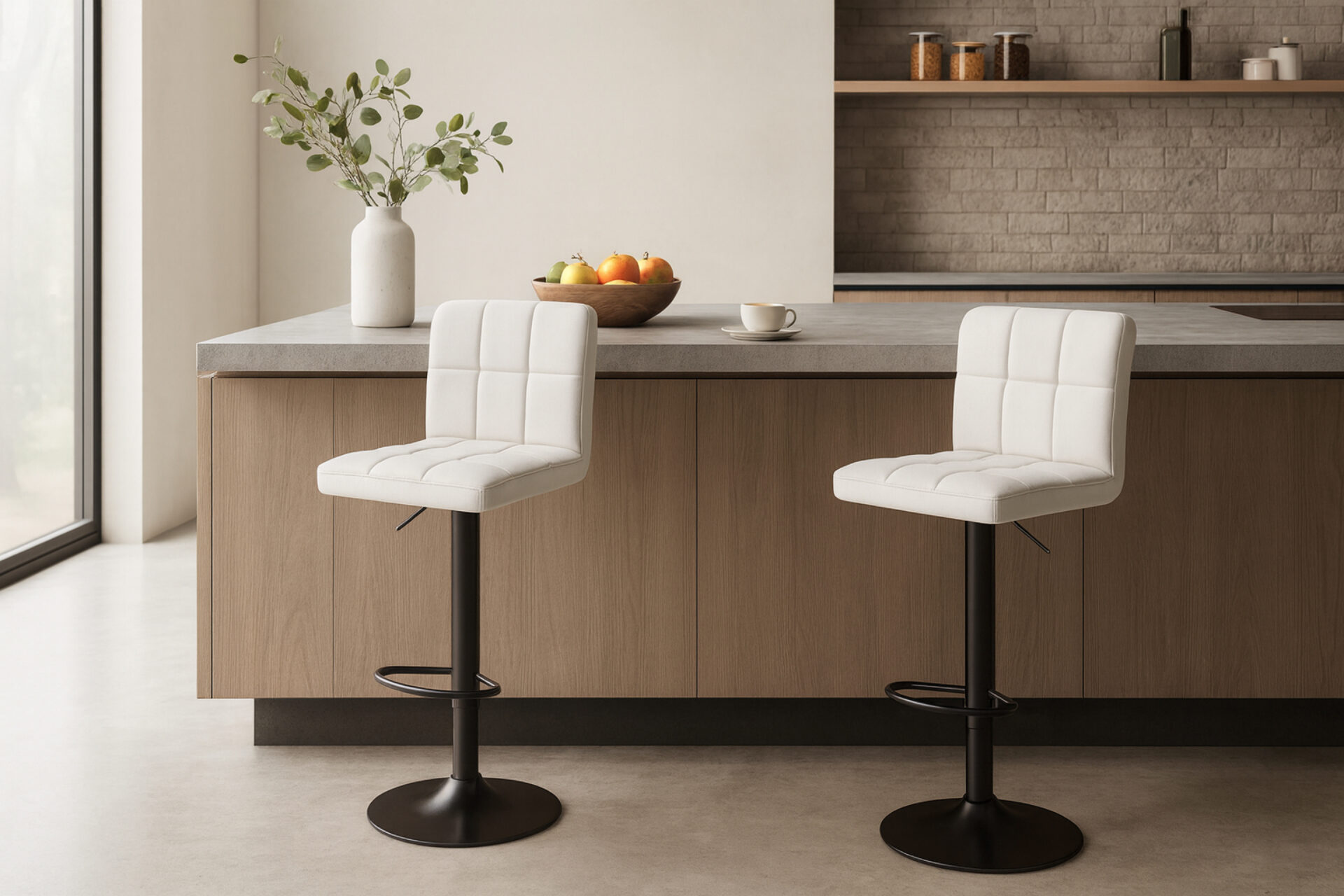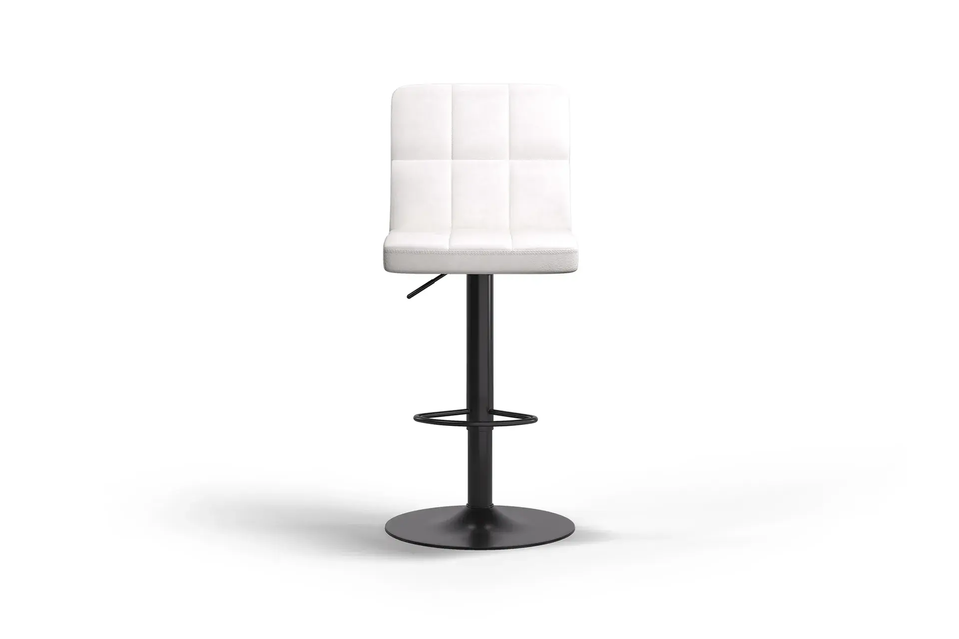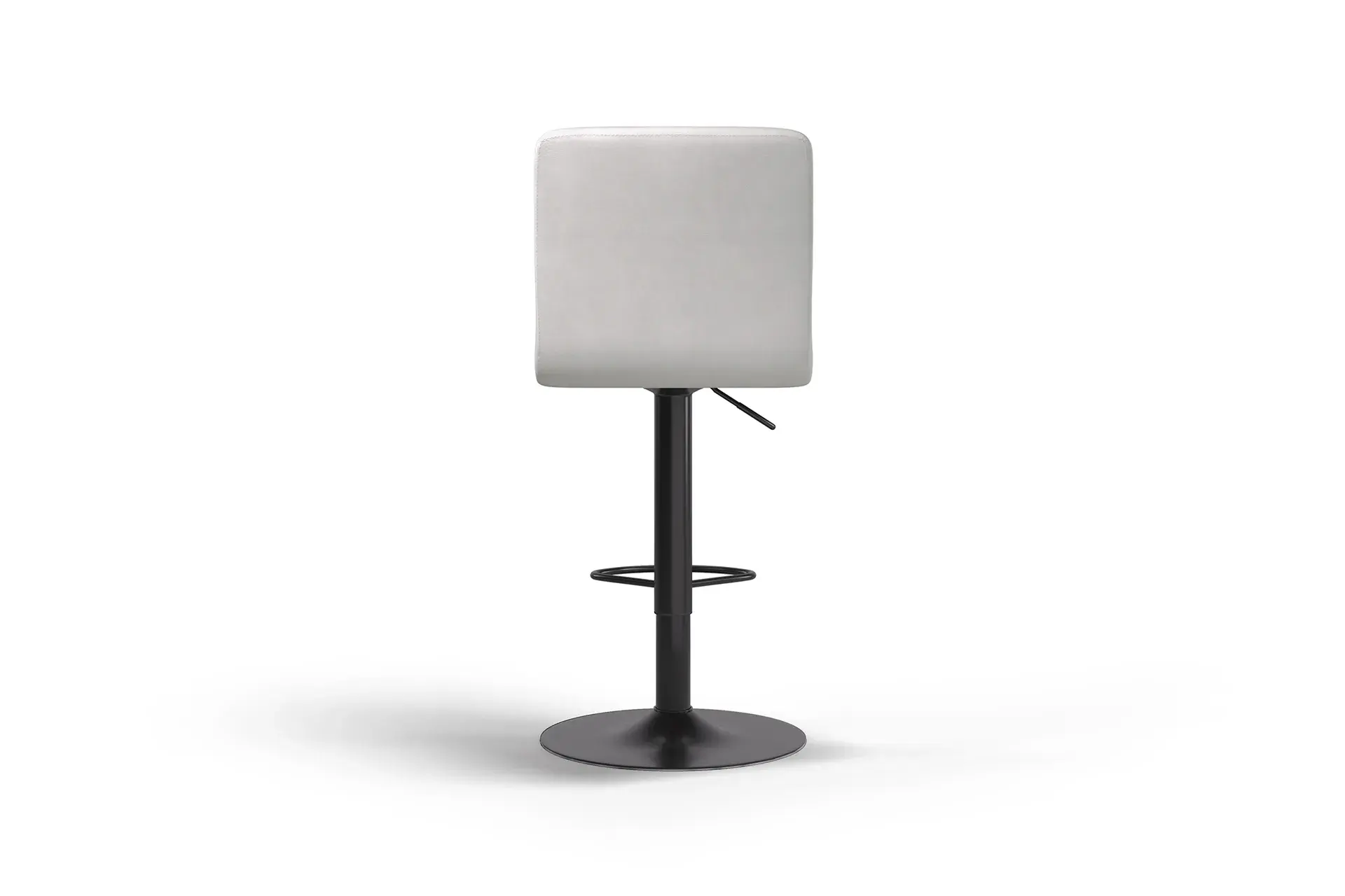 Crisp white vegan leather and a bold black base create striking contrast. Compact and sturdy, this stool brings modern charm to kitchens, offices, or cafés while offering comfort and everyday durability.