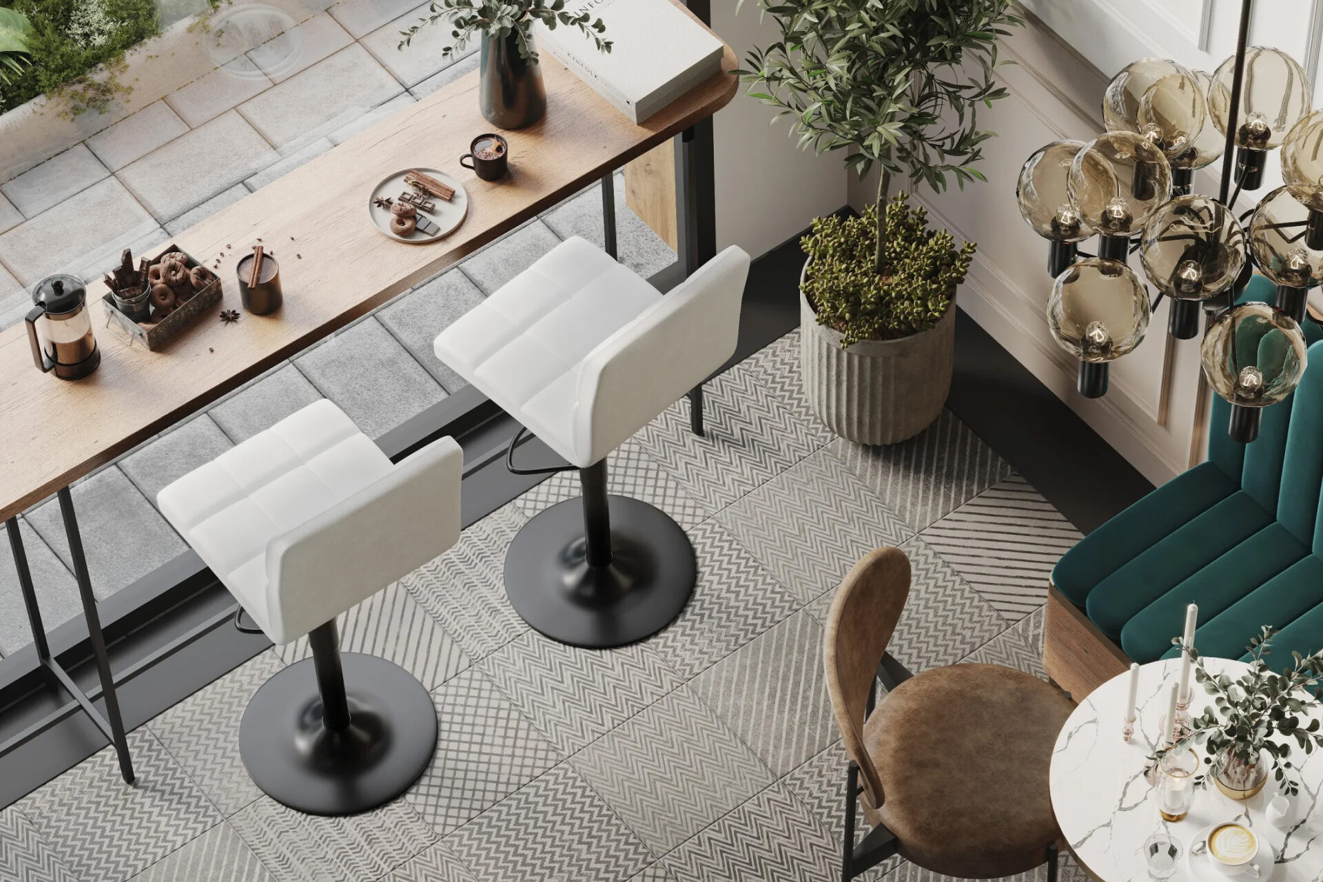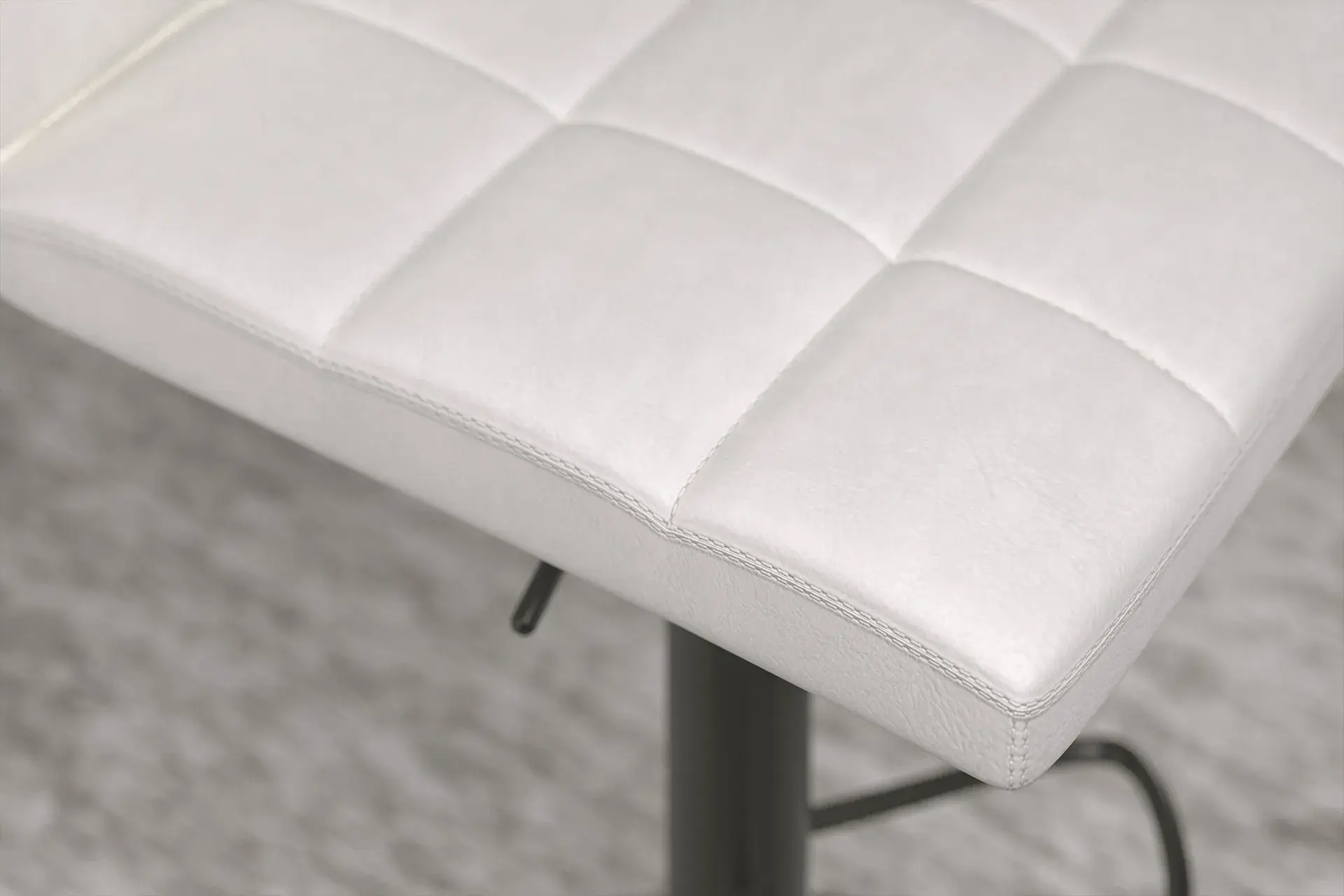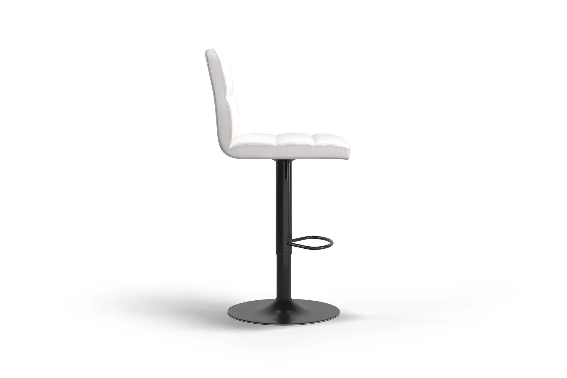 Crisp white vegan leather and a bold black base create striking contrast. Compact and sturdy, this stool brings modern charm to kitchens, offices, or cafés while offering comfort and everyday durability.