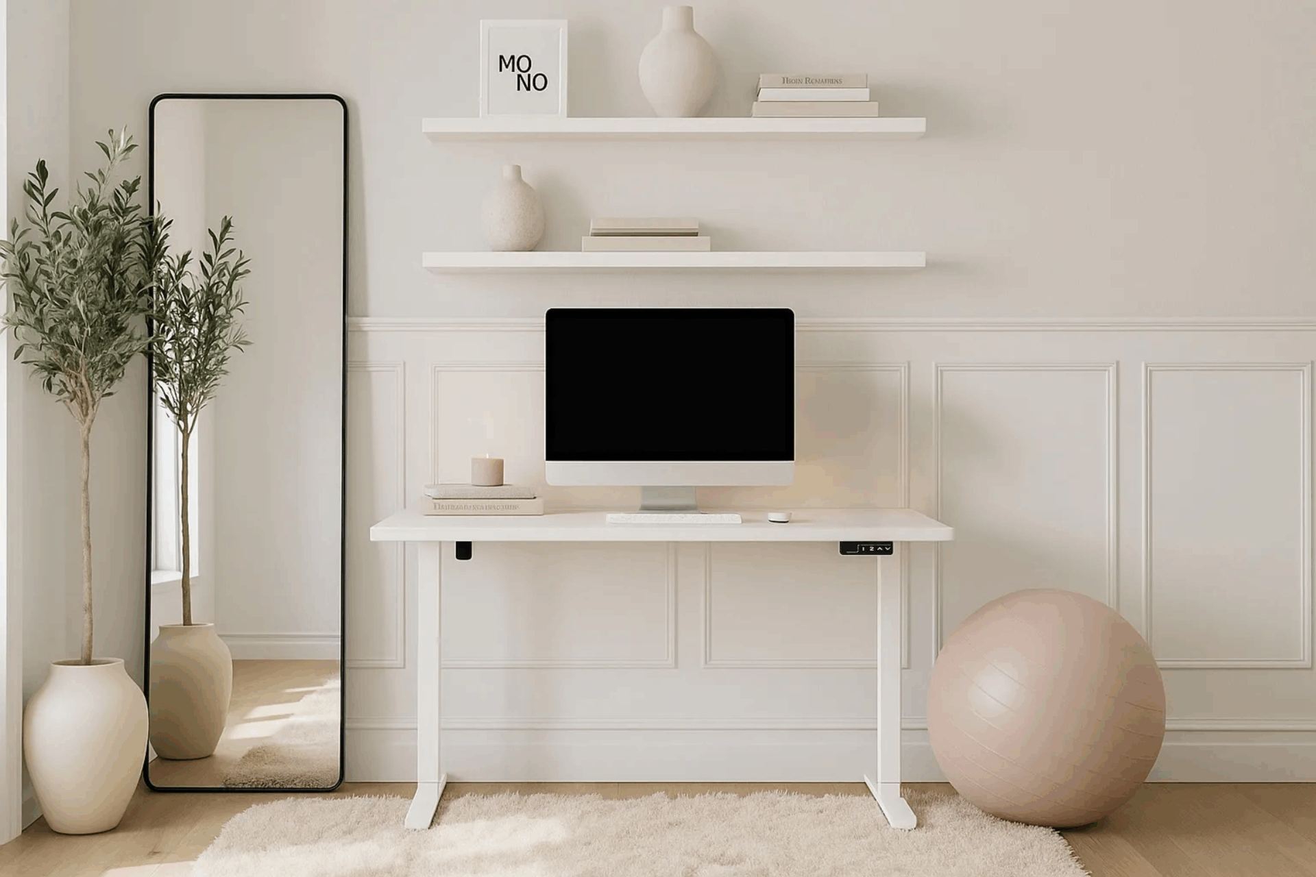 Clean lines and calm energy define this all-white desk. The whisper-quiet motor ensures smooth, sustainable motion, while minimalist dual controls promote effortless posture shifts. A perfect balance of innovation and serenity—designed to keep your space bright, focused, and full of flow.