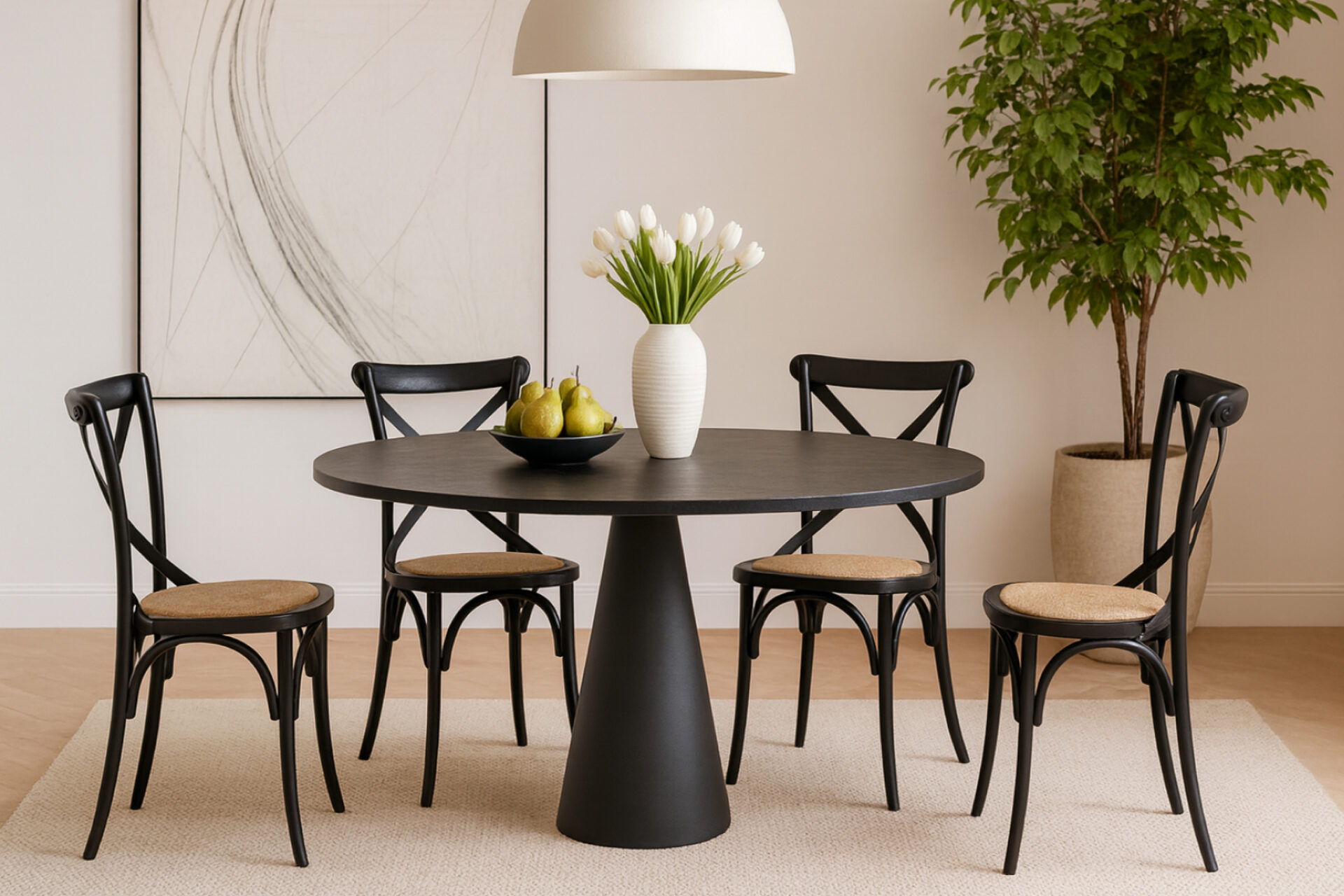The Crossback Dining Chair in Black blends French Country charm with modern versatility. Crafted with a strong wooden frame and handwoven rattan seat, it offers long-lasting comfort and style. Stackable and durable, it’s perfect for everyday dining, weddings, or restaurant settings where elegance and reliability are key.