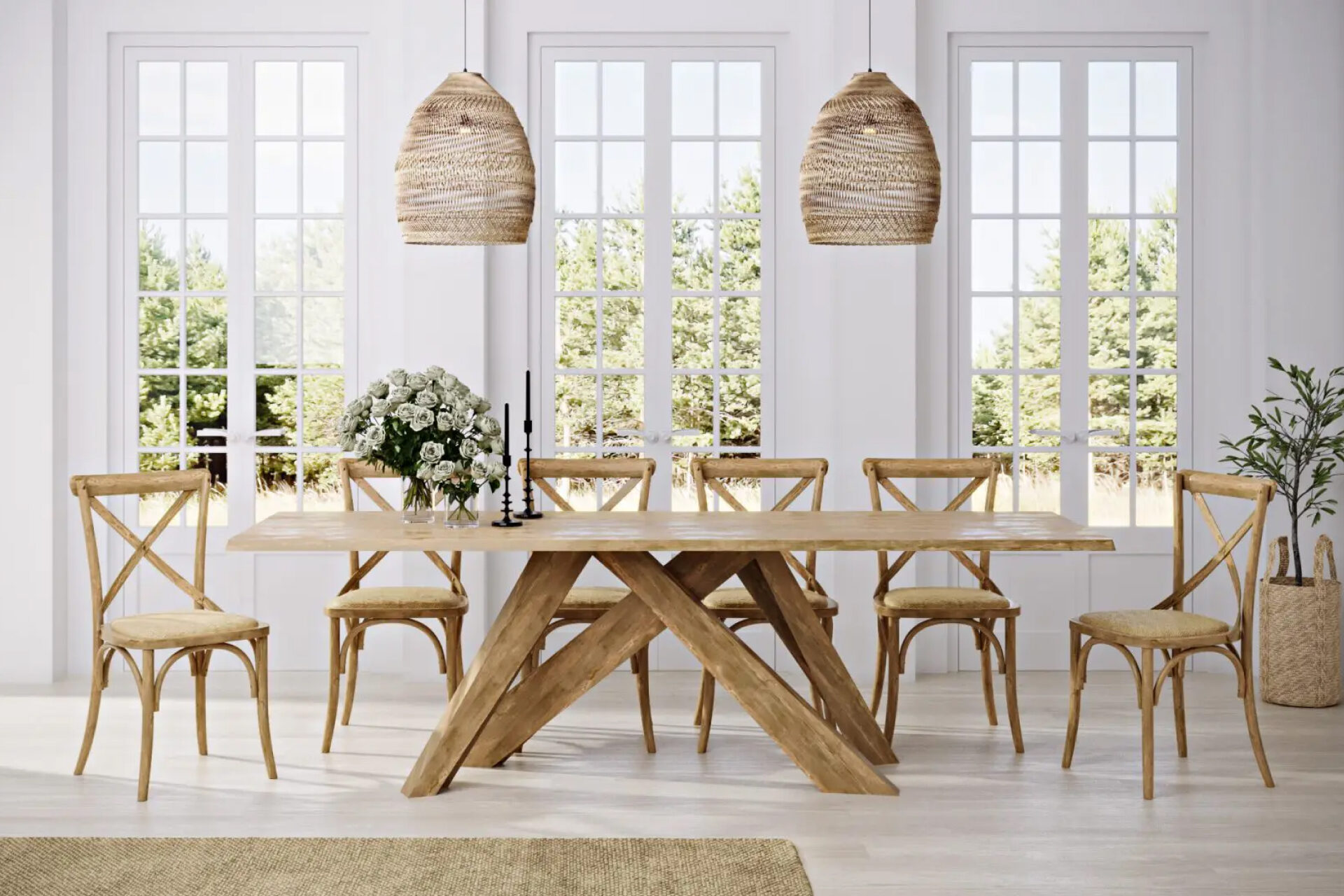 Carefully handmade with a handwoven rattan seat and sturdy wooden backrest, the Crossback Dining Chair blends artisan detail with everyday comfort. Inspired by French Country design, it brings a perfect balance of vintage charm and modern elegance into your home or dining space.