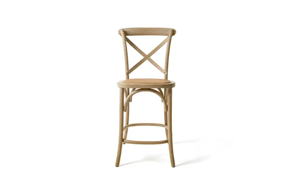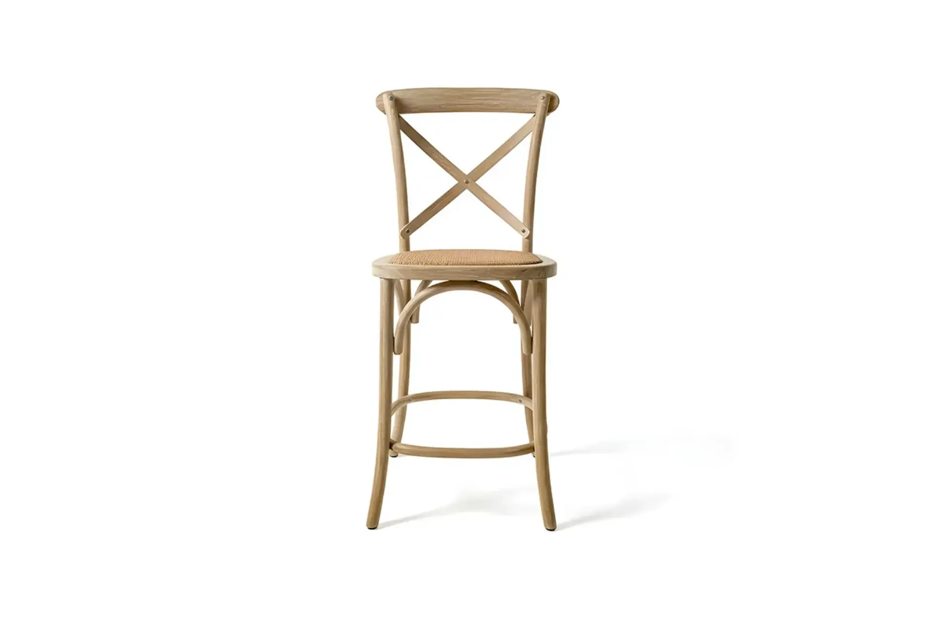 The Crossback Counter Stool in Canadian Oak exudes natural warmth and enduring appeal. Built from sturdy wood with a woven rattan seat, it balances traditional craftsmanship with modern design. The raised structure and comfortable cross back make it ideal for kitchen islands and counter spaces, offering both style and support. Finished in a soft oak tone that complements a range of interiors, this stool is a timeless choice for homes, cafés, and restaurants alike—combining strength, character, and lasting beauty in one inviting piece. -