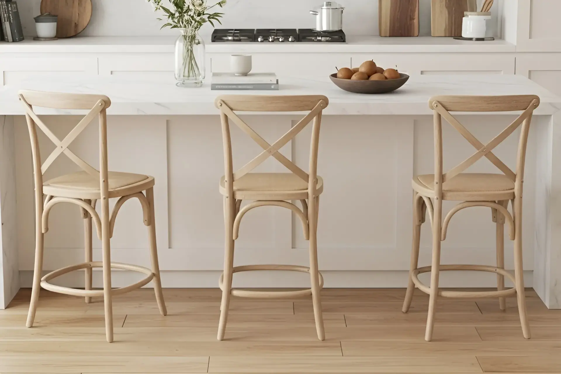 The Crossback Barstool in Oak radiates warmth and authenticity through its natural wood frame and woven rattan seat. Built for strength and versatility, it’s a perfect mix of craftsmanship and convenience—bringing French-inspired sophistication and organic beauty to kitchens, bars, and gathering spaces.