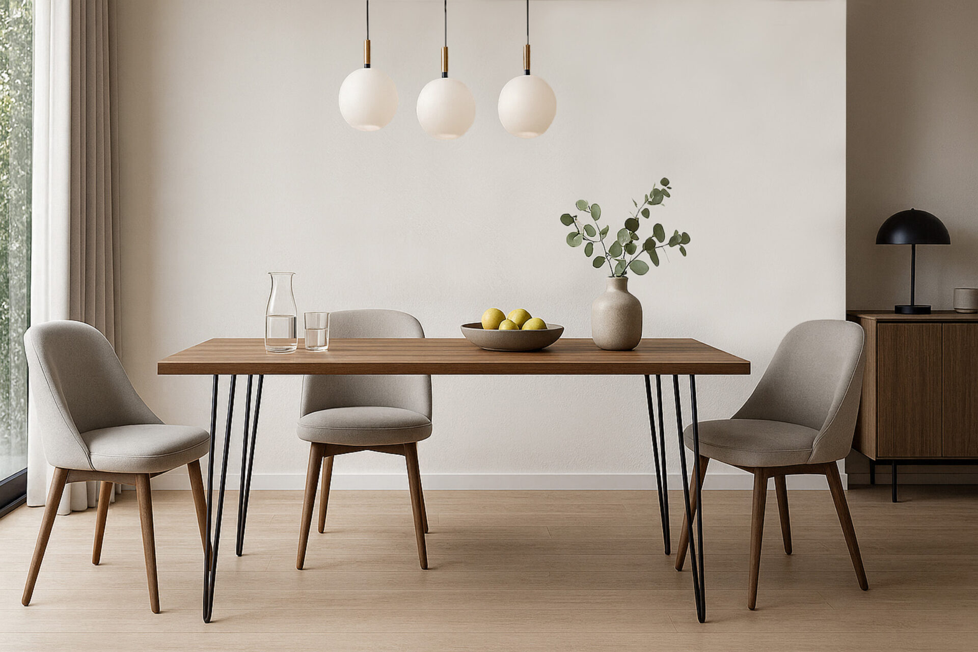 The Aska Dining Table in walnut offers a generous surface wrapped in timeless warmth. Designed for connection, it creates a welcoming atmosphere where dining feels both elegant and effortless.