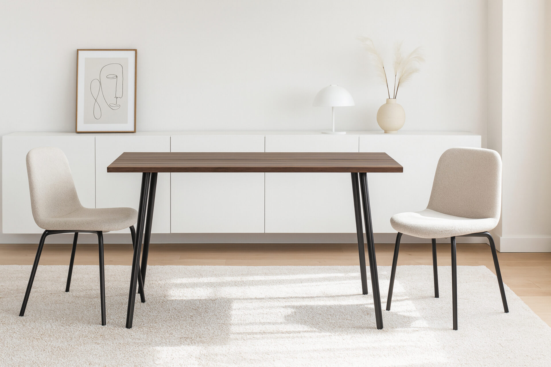 Inspired by Nordic craftsmanship, the Altana Dining Table in walnut brings depth and sophistication to your dining experience. The tabletop showcases the wood’s rich grain and smooth finish, merging timeless design with everyday functionality for gatherings that feel both elegant and effortlessly inviting.
