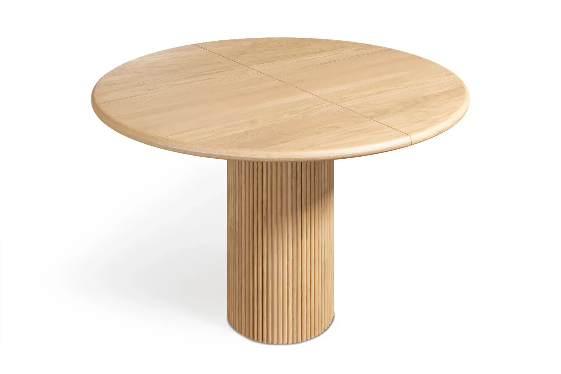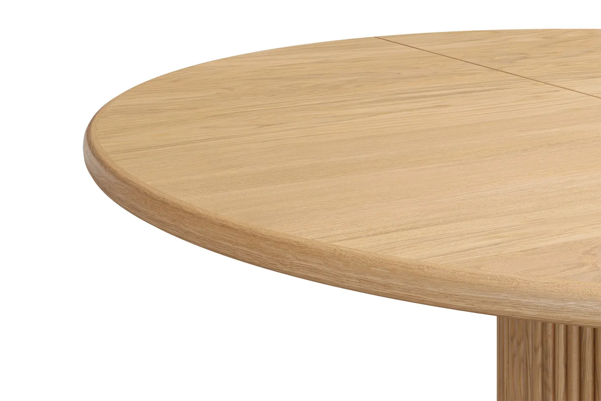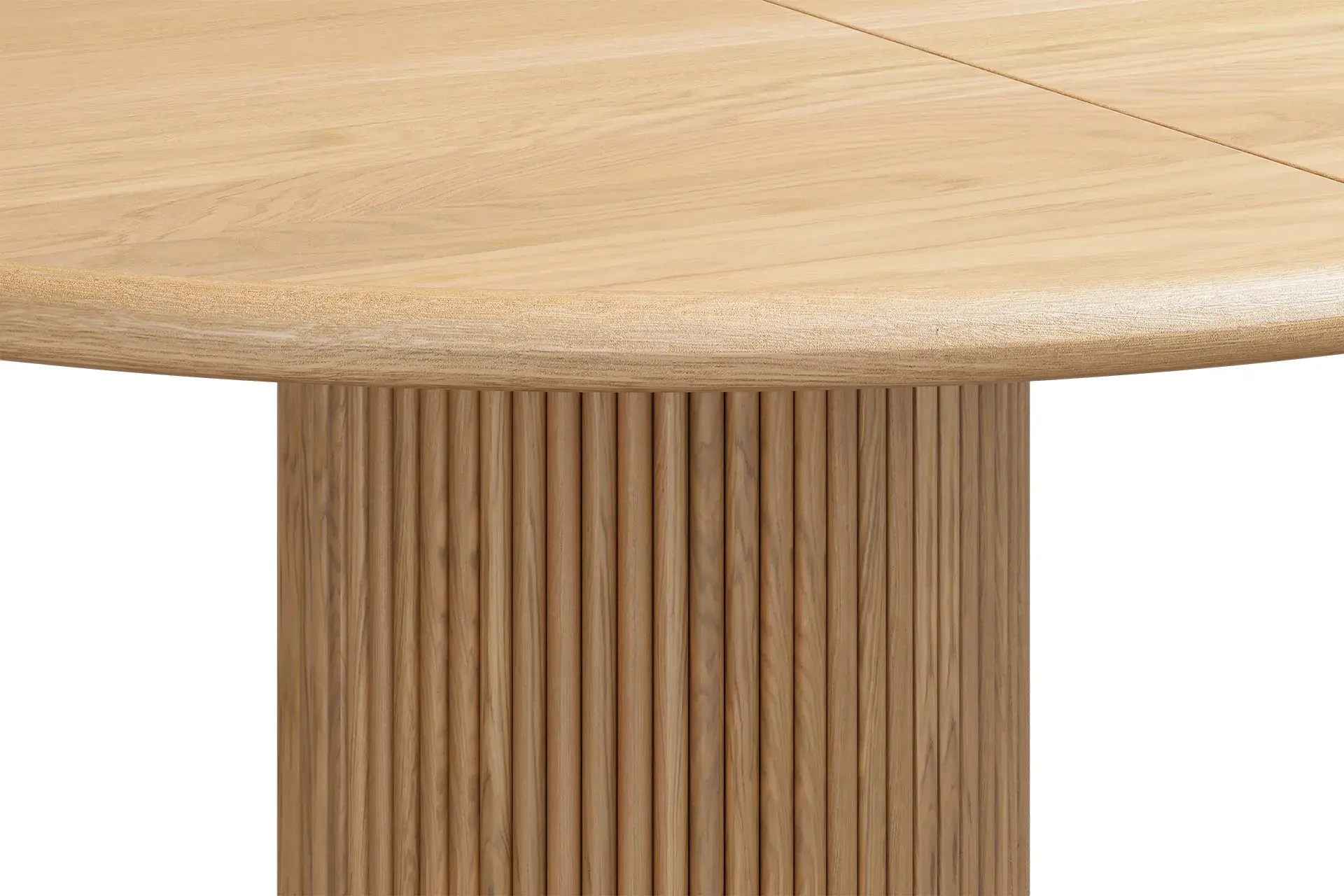 The Elmsworth Dining Table in oak captures Scandinavian serenity through light tones and natural texture. The fluted base adds subtle dimension, while the round top creates a welcoming space for conversation. Crafted with care and balance, it brings a sense of calm and warmth to dining rooms, blending timeless beauty with modern simplicity. Perfect for homes that embrace brightness, natural materials, and everyday connection. -