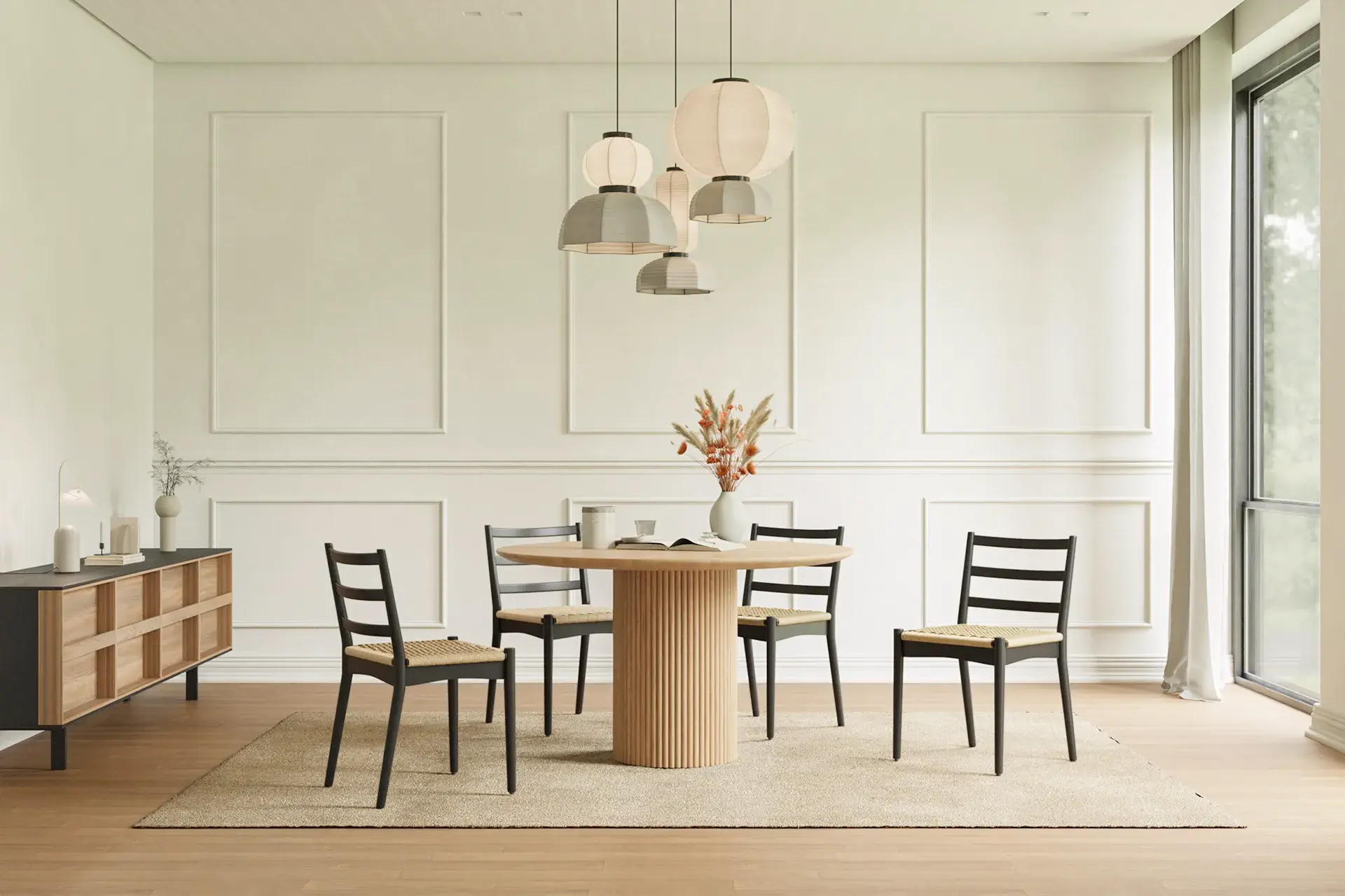 With its round top and fluted pedestal base, the Elmsworth Dining Table is a statement of modern harmony. Its sculptural form combines artful texture with smooth geometry, creating a timeless centrepiece that invites connection and conversation in any setting.