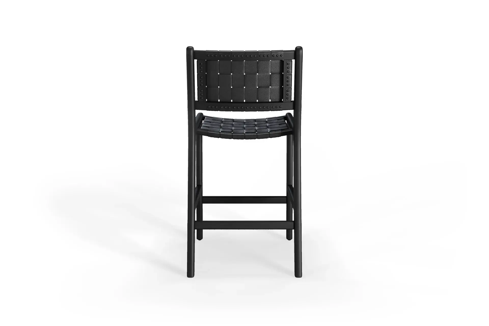The Eyva Bar Chair in black wood and vegan leather embodies refined minimalism. Its deep tones and sculptural lines create a bold, grounded statement while offering comfort and elegance in perfect harmony. Designed for modern interiors, it blends timeless sophistication with everyday ease and effortless visual balance.