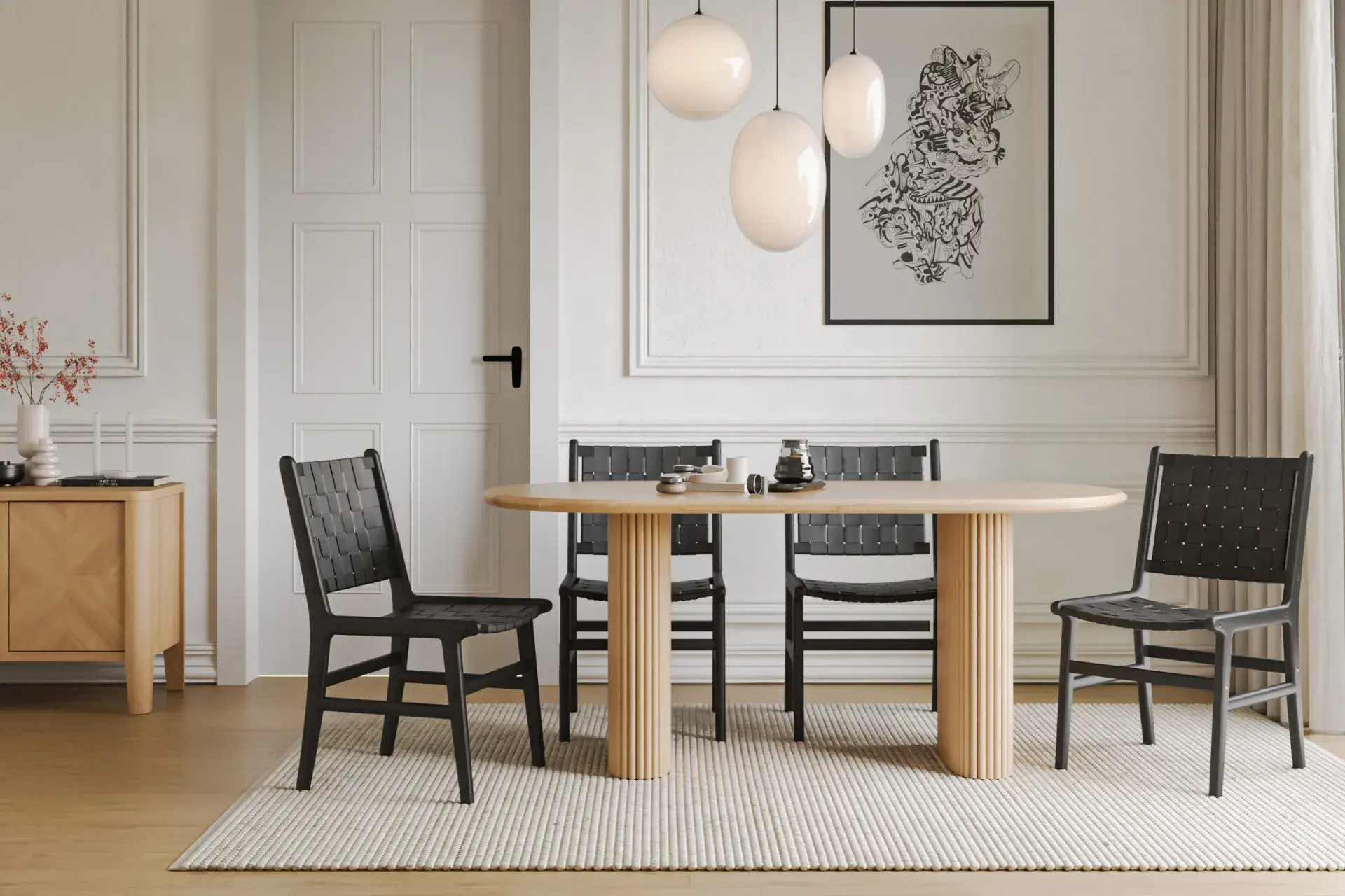 Anchor your dining room with the bold sophistication of the black Eyva Chair. Its deep tones contrast beautifully against light tables and neutral interiors, creating a look that’s refined yet relaxed—a timeless piece for meaningful gatherings and modern, grounded living.