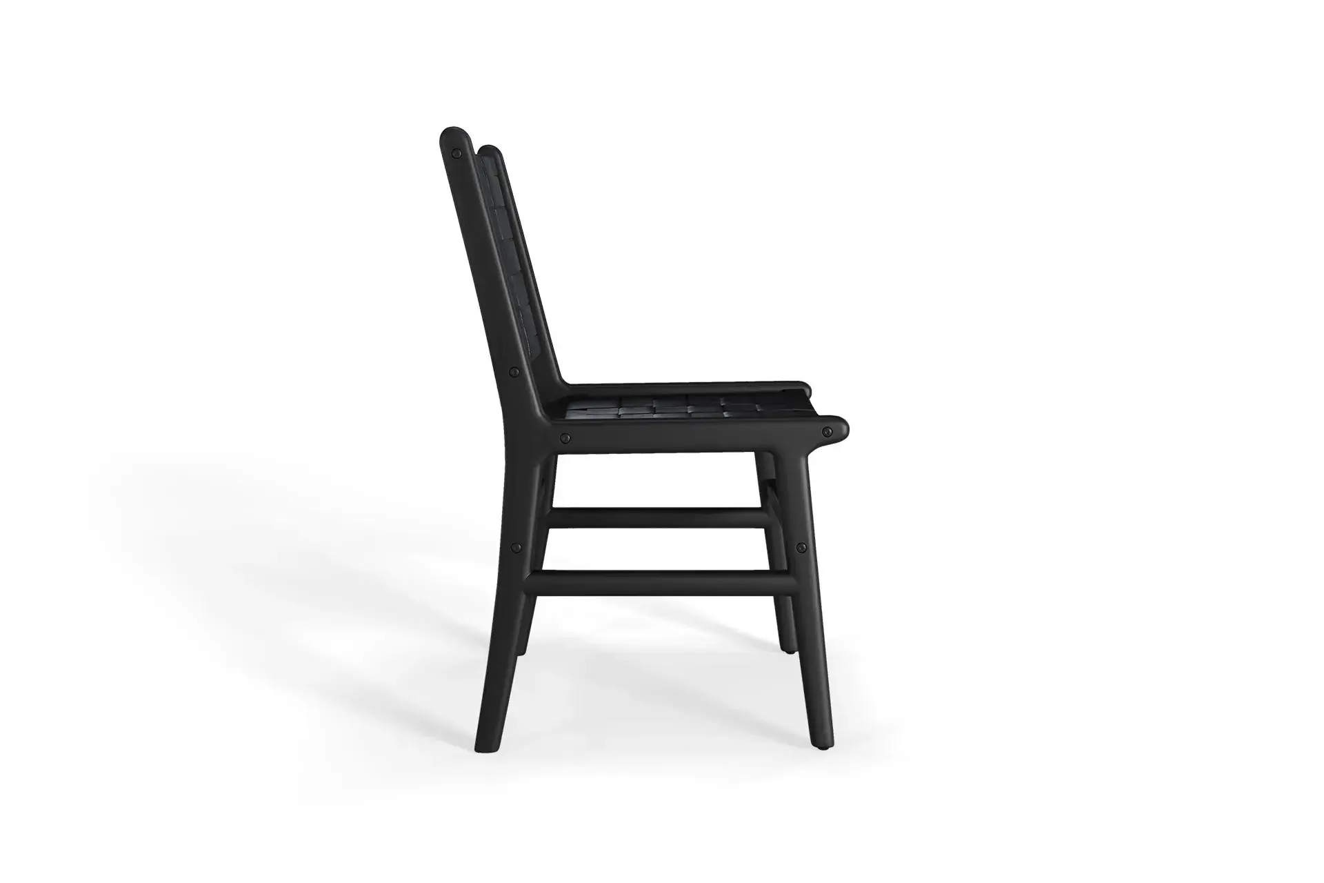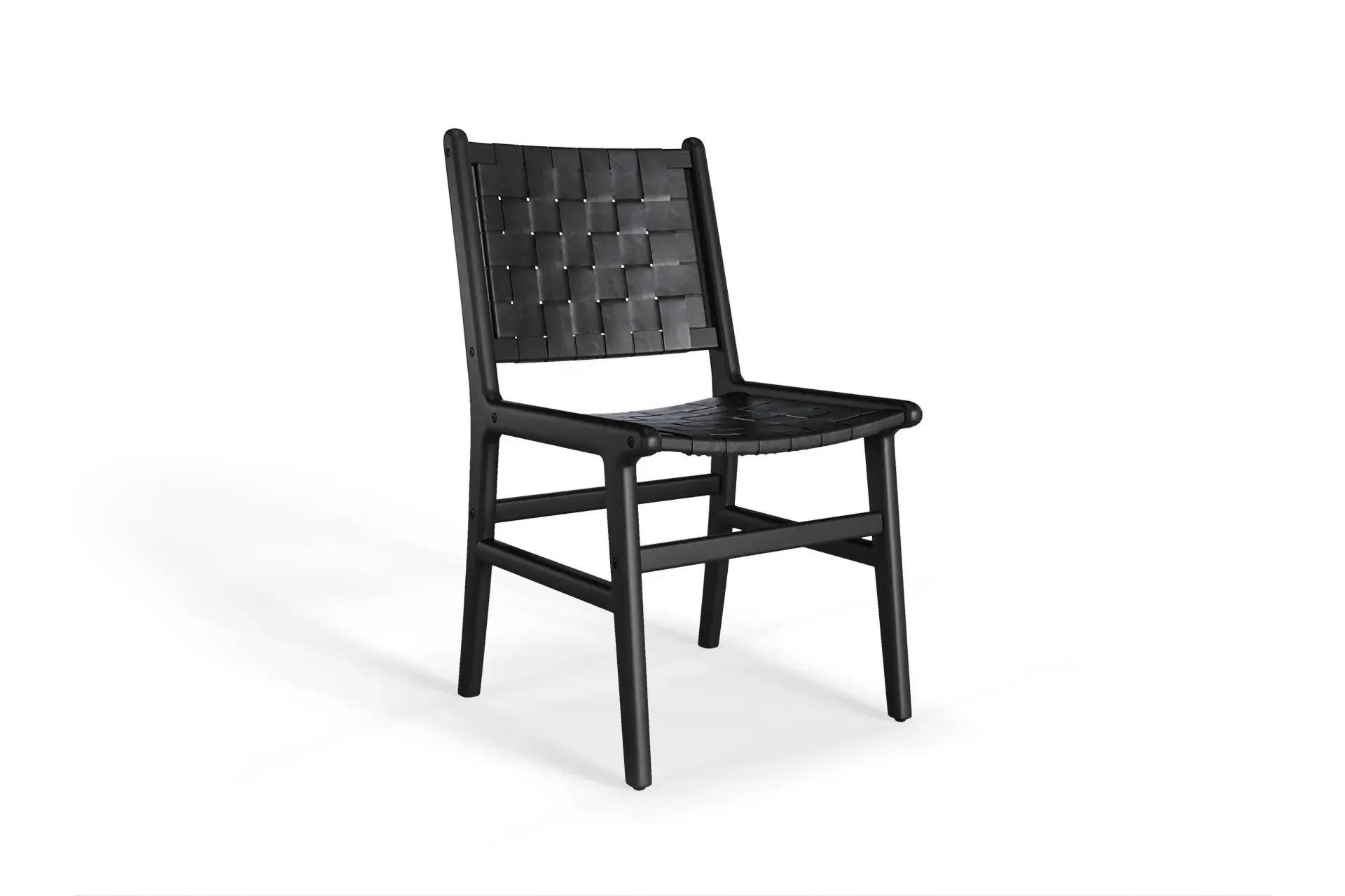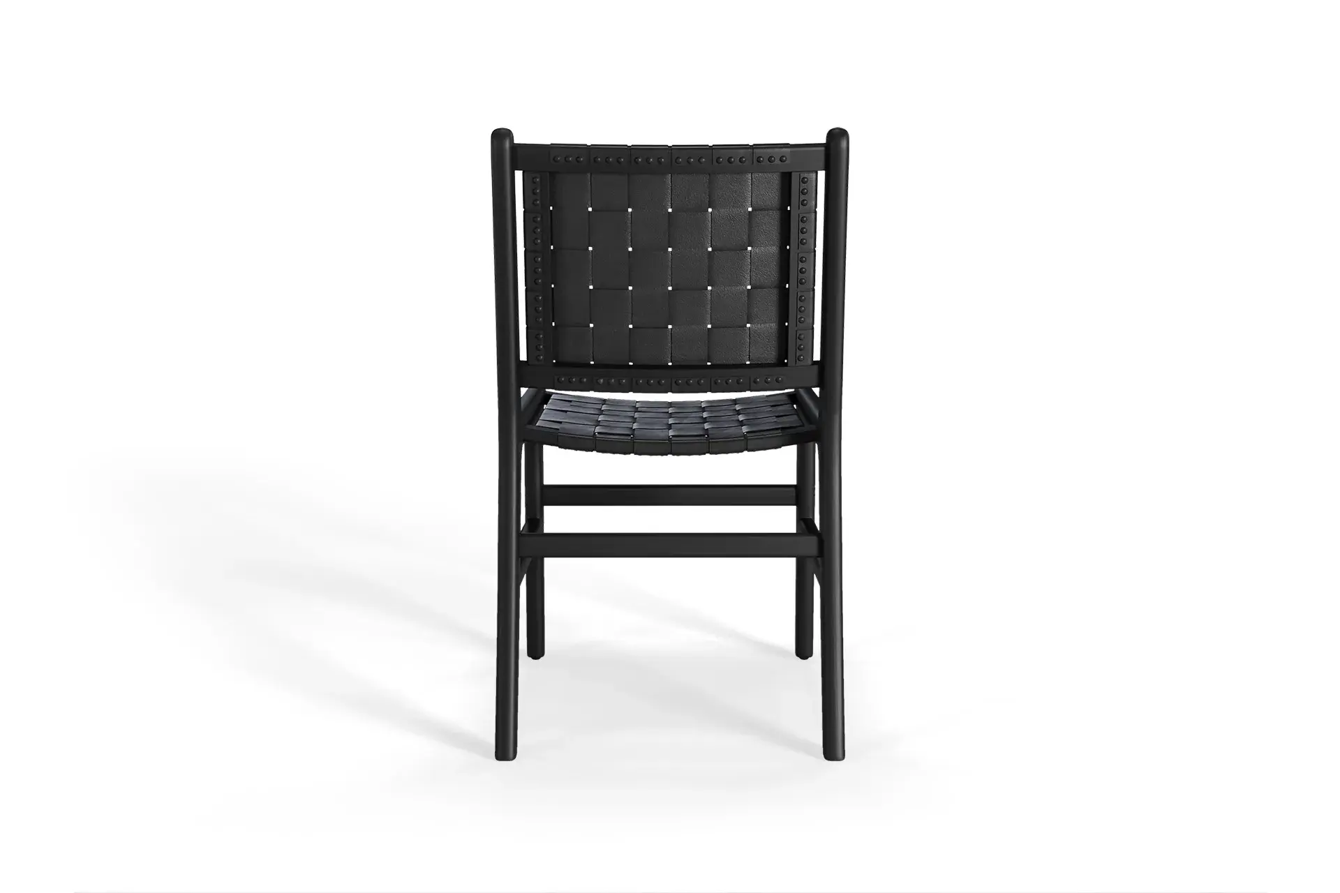The Eyva Dining Chair in black wood and vegan leather brings quiet strength and graceful refinement to your table. With soft contours and durable craftsmanship, it offers long-lasting comfort and style. Balanced between modern simplicity and timeless character, it elevates every dining moment with understated sophistication.