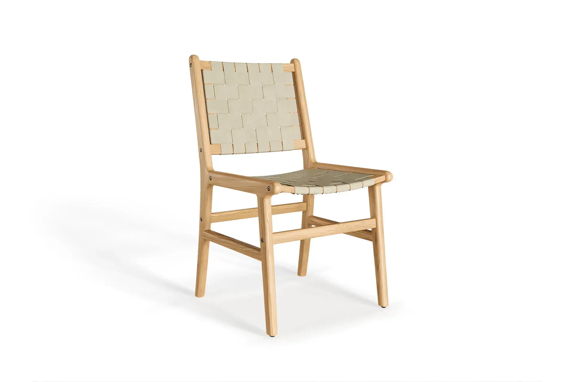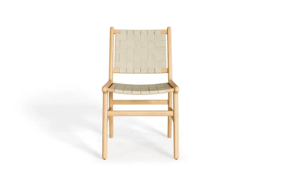 The Eyva Dining Chair in oak wood and beige vegan leather embodies natural serenity. Its soft tones and gentle textures create a calm, inviting atmosphere, while its crafted frame ensures durability. Designed for easy living, it adds warmth, balance, and effortless beauty to everyday gatherings.