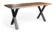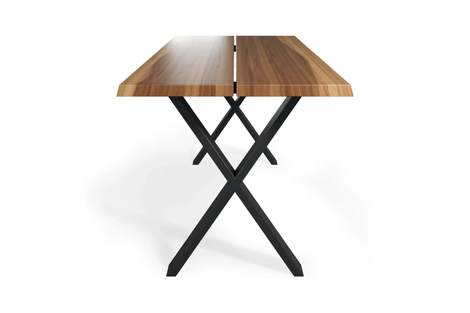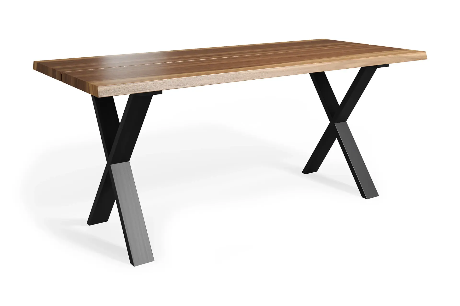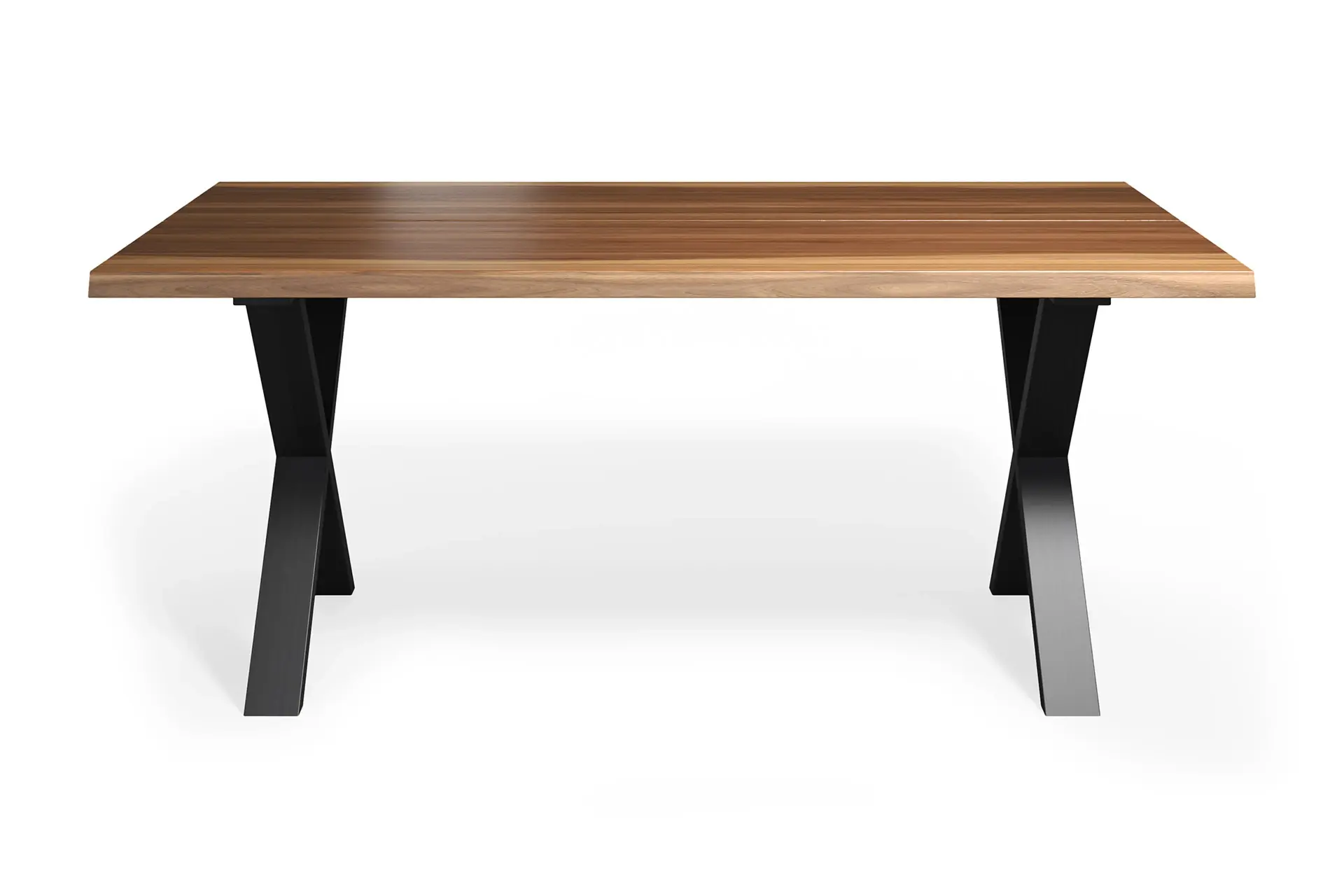 Bring refined simplicity and modern craftsmanship into your dining space with this striking table. Featuring a beautifully finished wooden tabletop with natural grain patterns, it delivers warmth and character while maintaining a clean, contemporary look. The bold, sculptural black legs create a strong visual contrast and provide exceptional stability, making it as durable as it is stylish. Perfect for everyday meals or hosting guests, this table blends timeless materials with modern design to elevate any interior. -