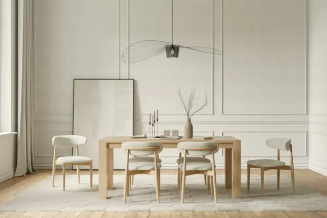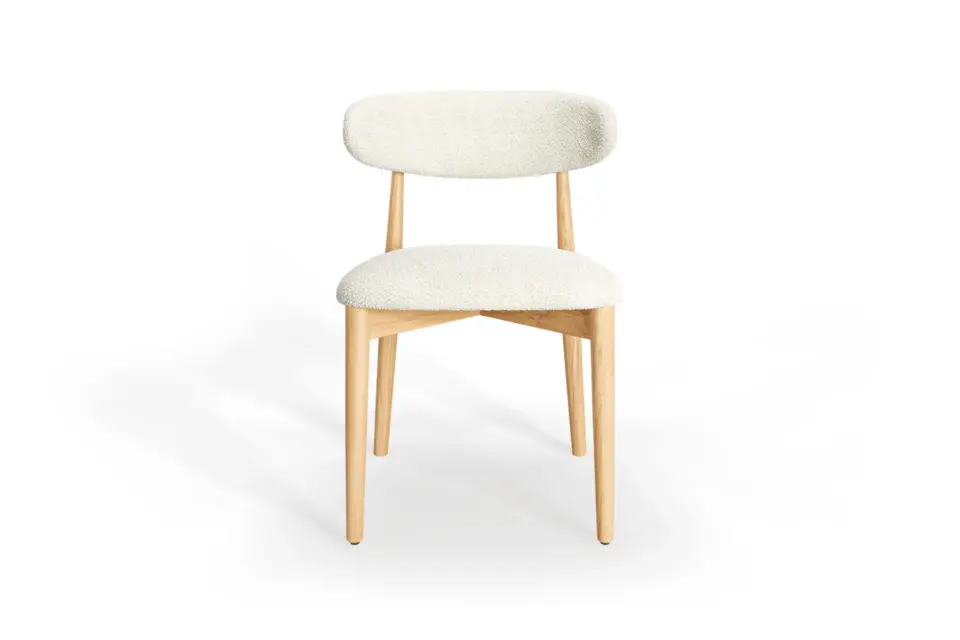Soft-toned beech and snowy boucle create a light, airy seat that feels effortlessly uplifting. A chair that brightens a table, carrying the spirit of ease, freshness, and quiet sophistication.