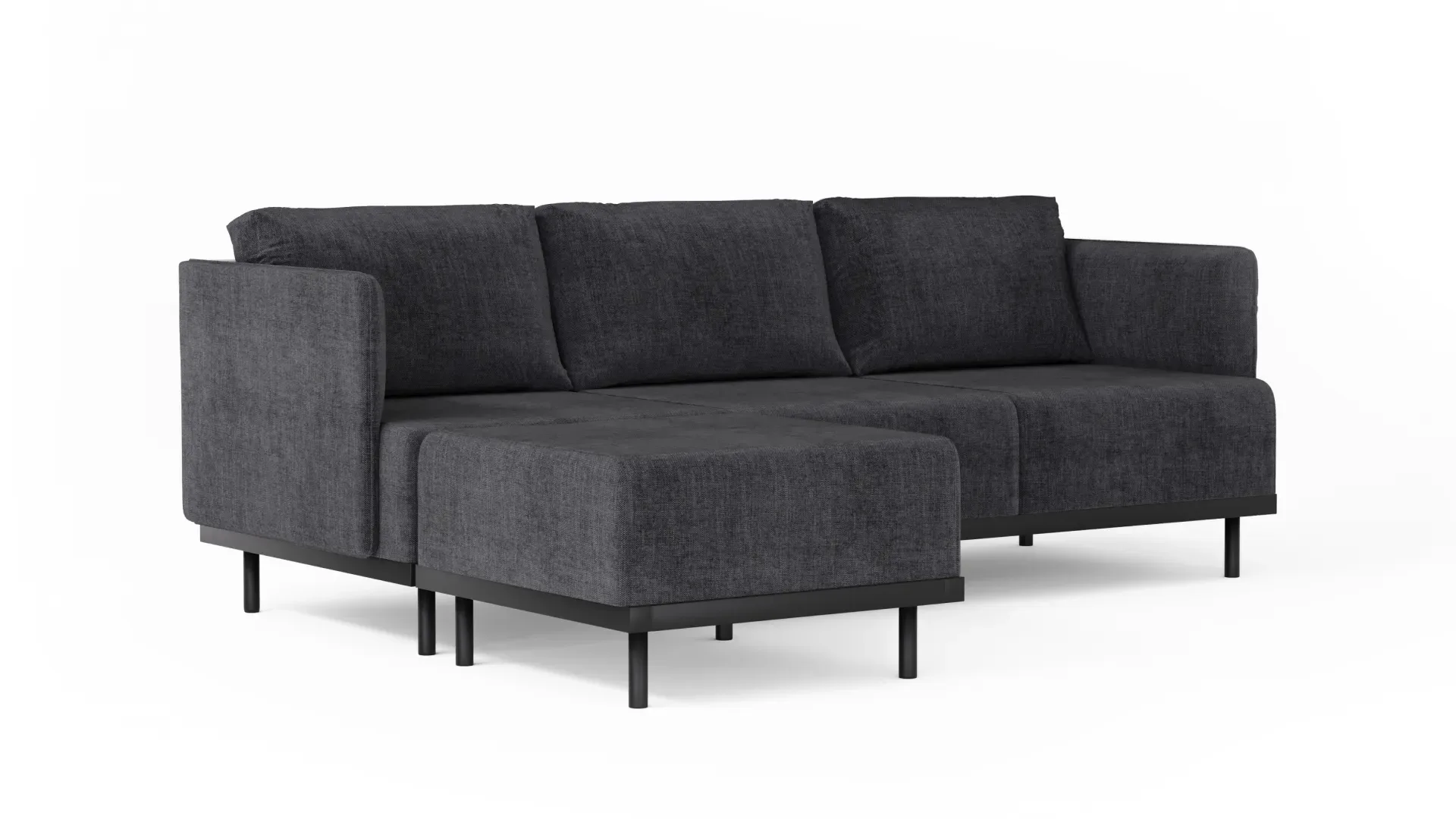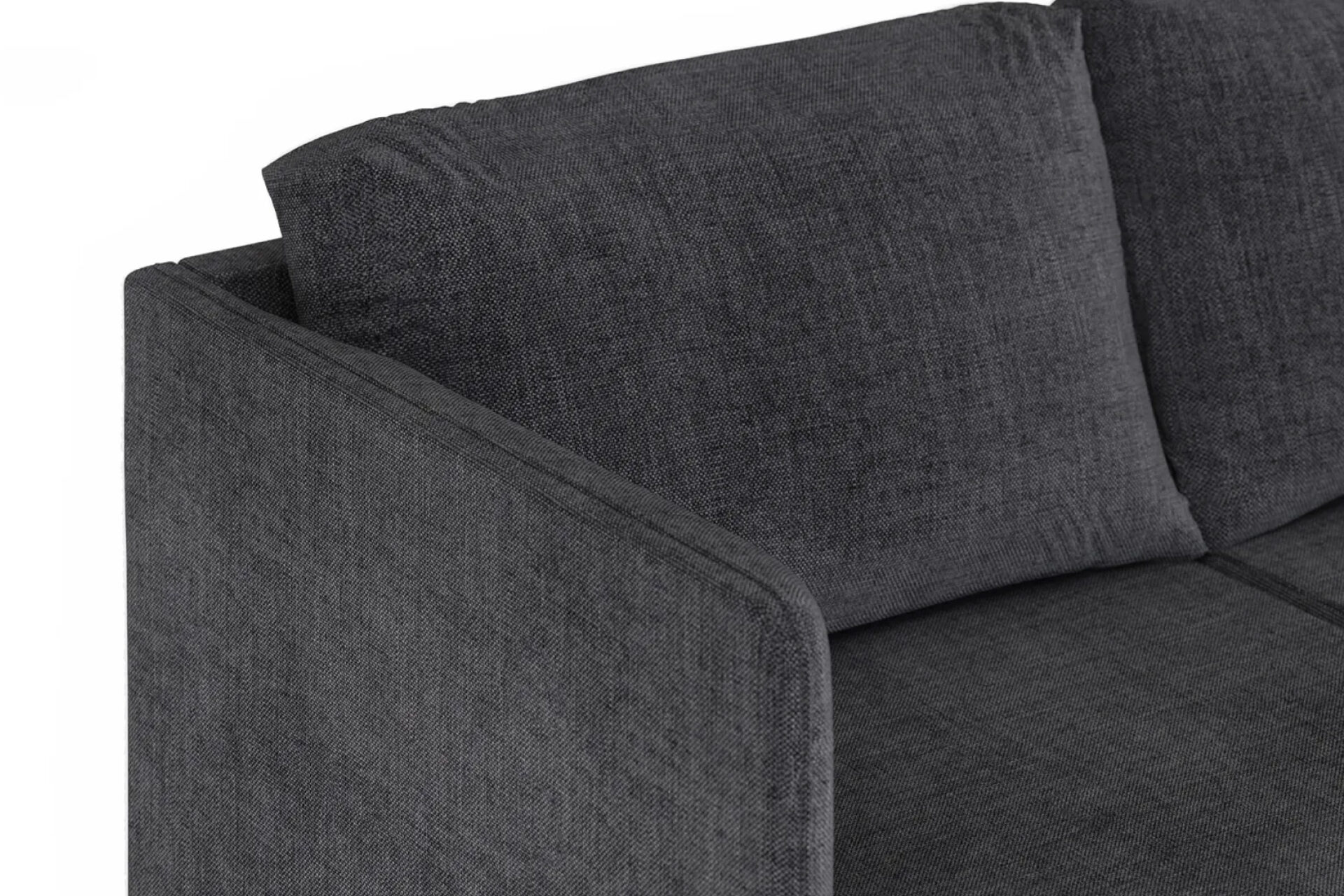 The Matilda Four Seater Sectional in Dark Grey Linen offers spacious comfort with timeless design. Featuring plush cushions, easy-care fabric, and a raised frame, it blends sophistication, ease, and long-lasting appeal.
