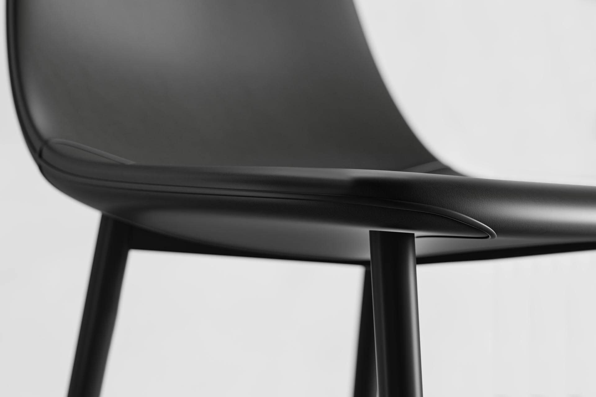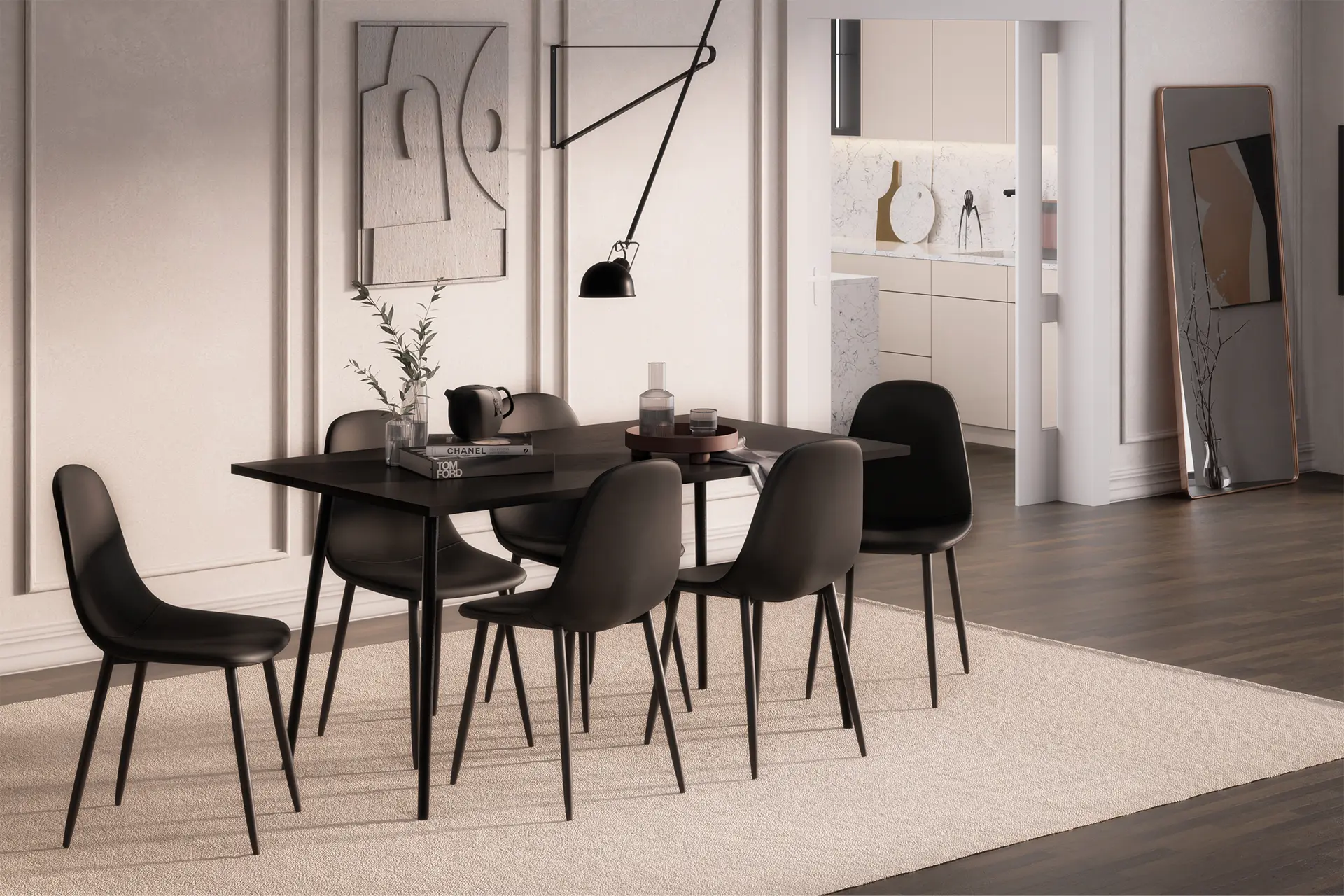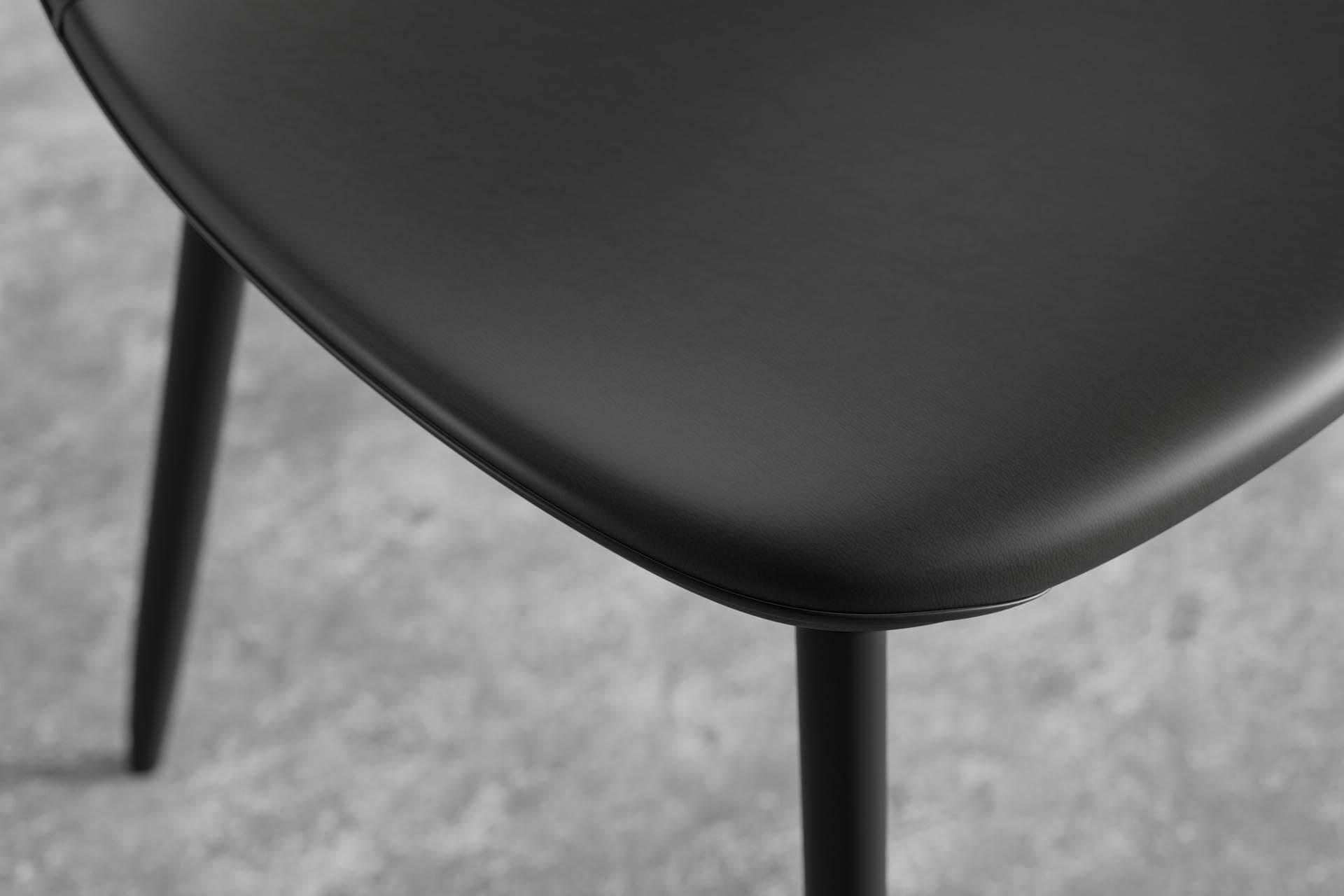 The Evdano Dining Chair in black with black legs brings a sleek and timeless look to your home. Its minimalistic silhouette allows it to blend seamlessly into modern or classic interiors, while the rich black finish adds depth and sophistication. Whether placed in your dining area or living room, it creates a warm yet contemporary setting for everyday meals or special gatherings. Comfortable, versatile, and effortlessly stylish, this chair is the perfect addition to elevate your space with understated elegance. -