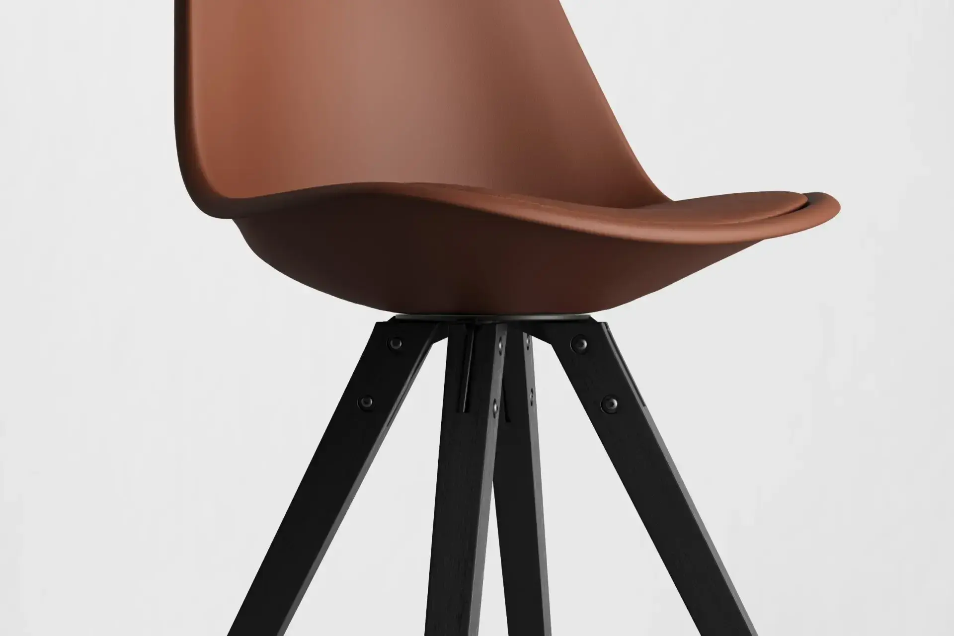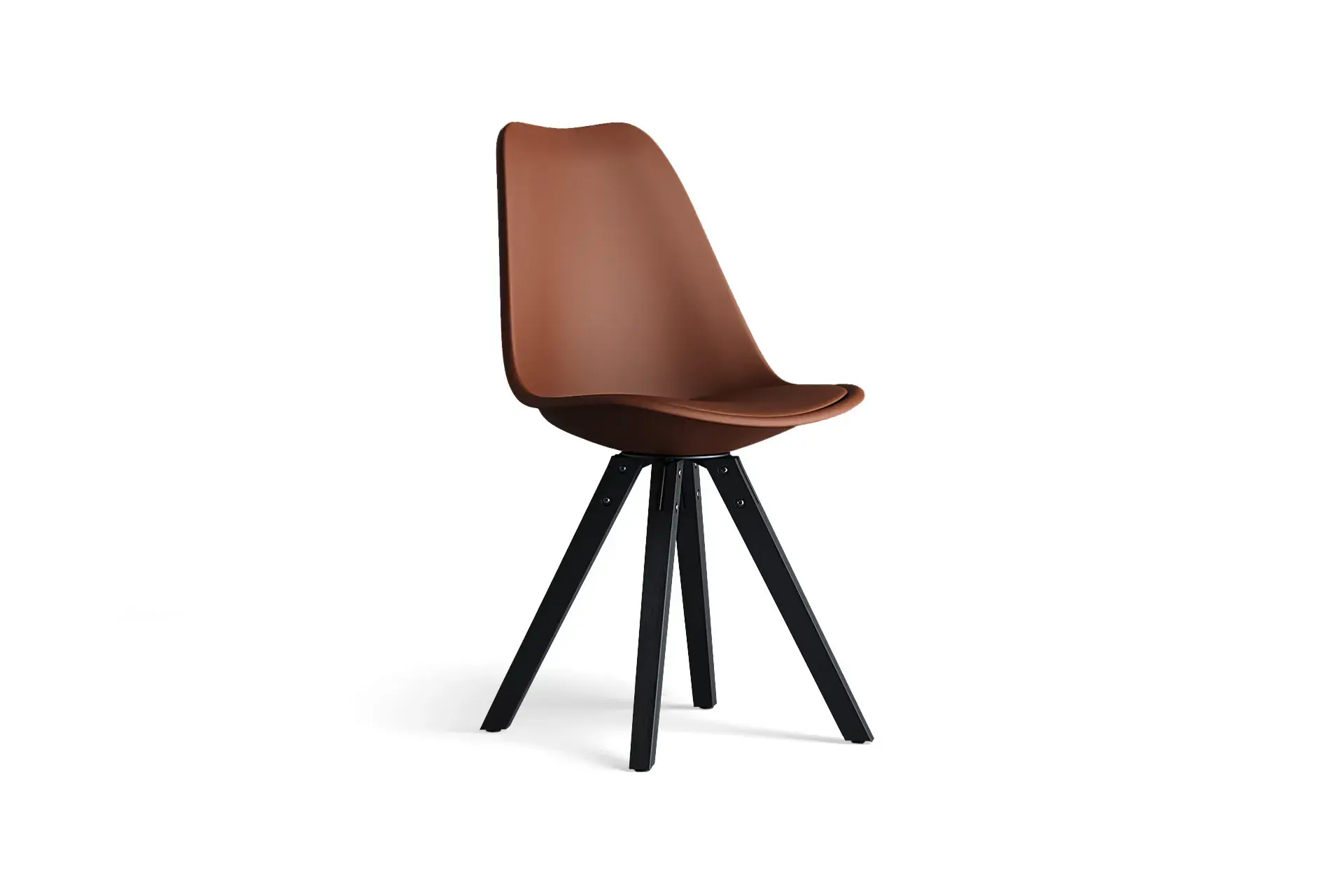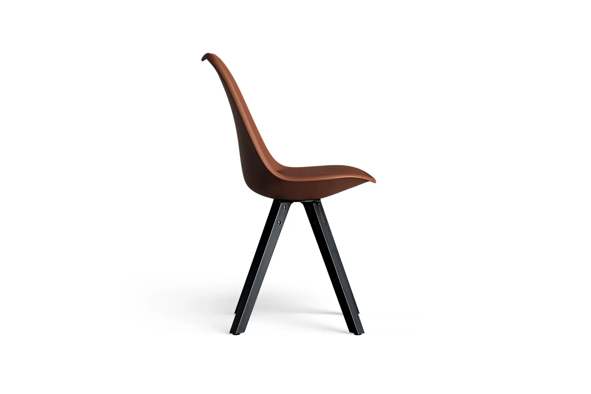 Warmth and depth come together in this inviting design. The rich brown vegan leather seat radiates sophistication, perfectly balanced by the grounding presence of black wooden legs. With its mid-century modern charm and Scandinavian minimalism, it enhances interiors with character while ensuring lasting durability. The cushioned support offers both comfort and resilience, making it ideal for long evenings at the table or relaxed gatherings. Whether styled in contemporary or classic settings, this pairing brings warmth, elegance, and quiet confidence into your space. -