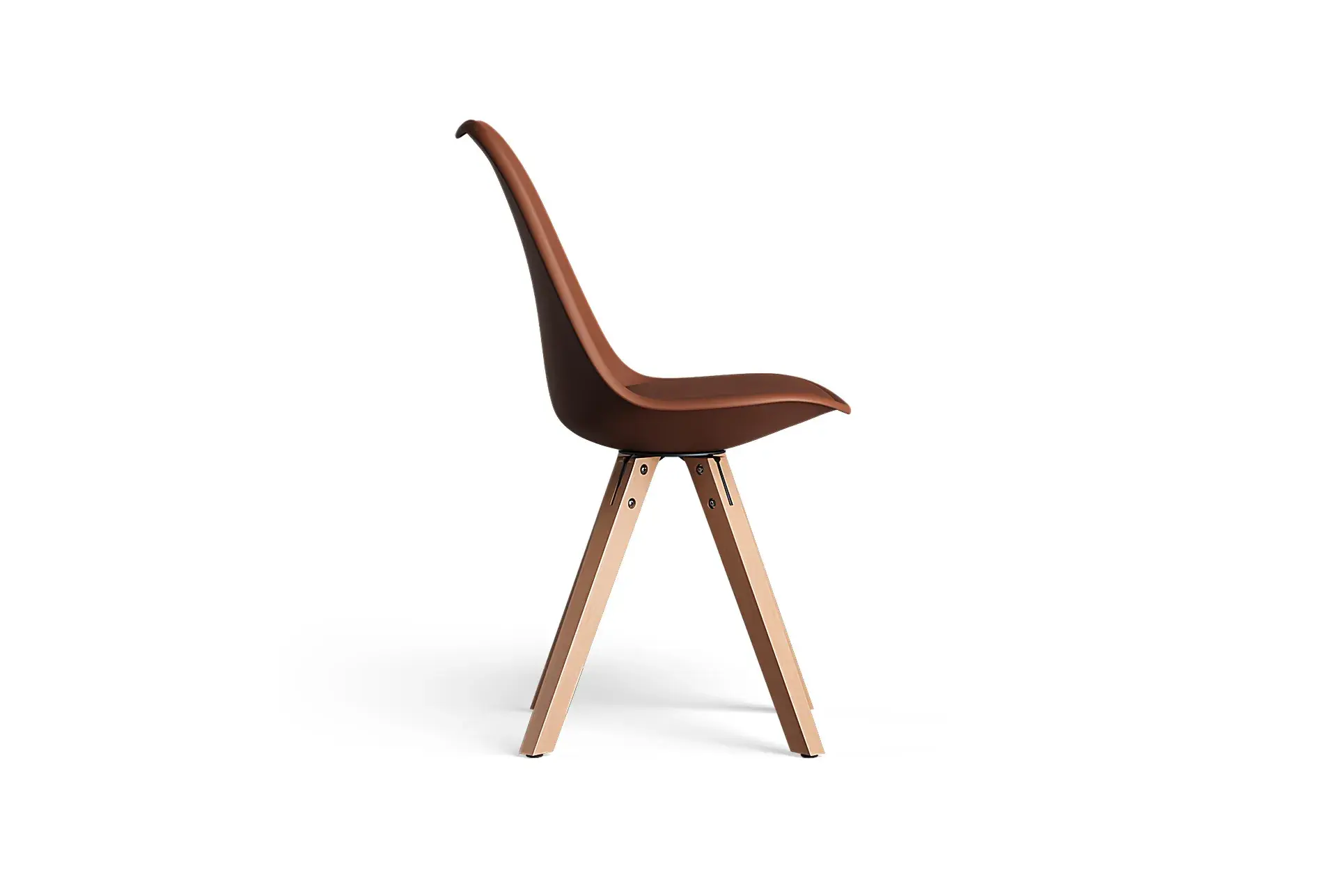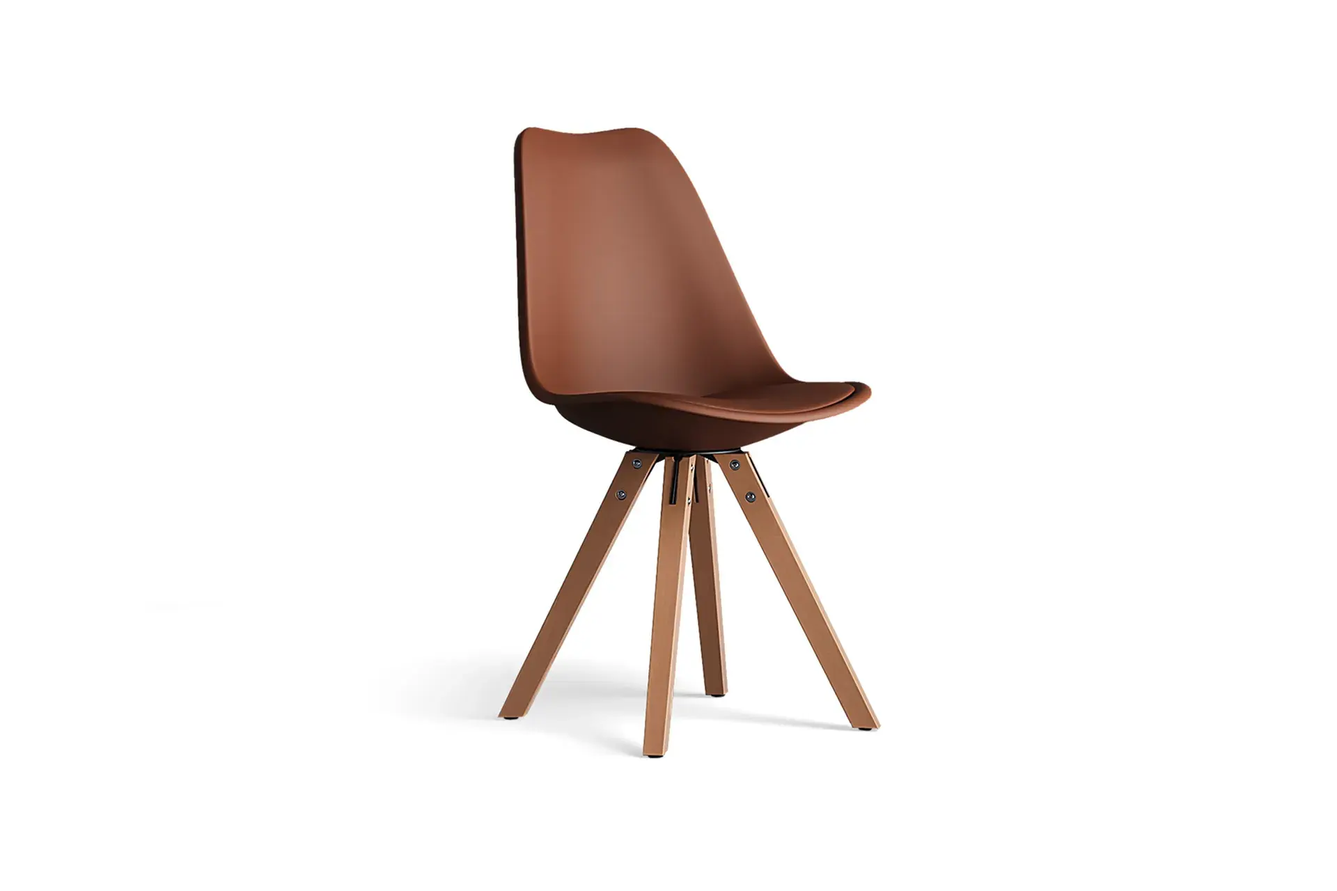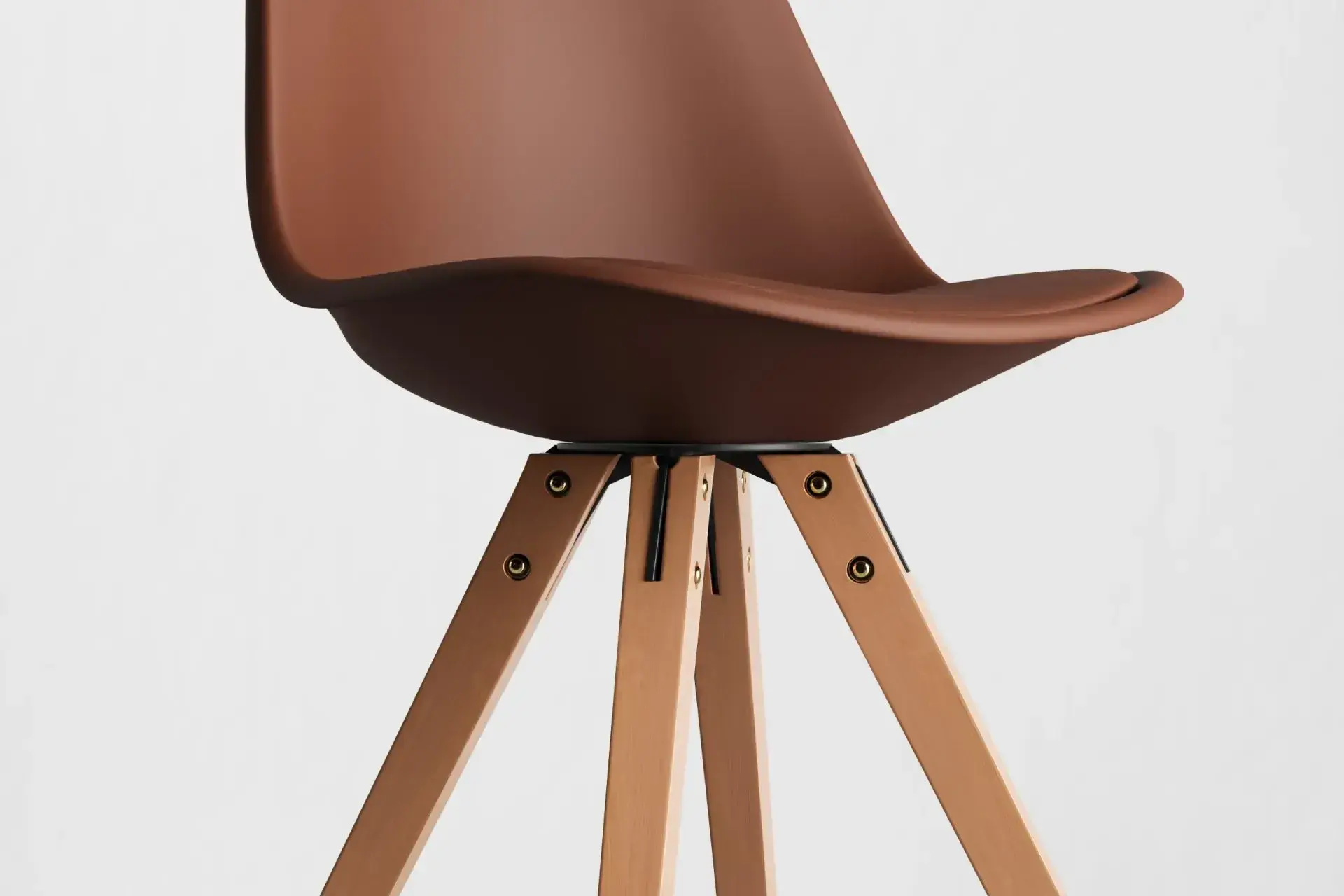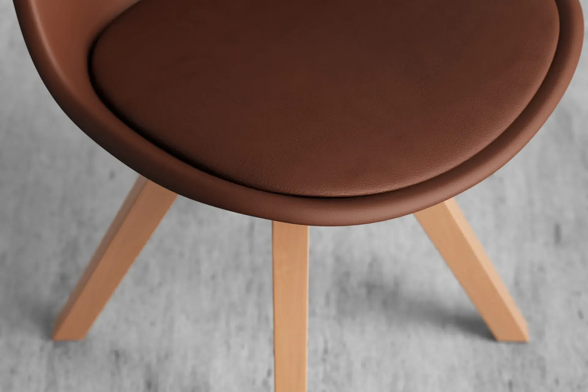 Infused with natural warmth, this combination pairs a supple brown vegan leather seat with light wooden legs for a balanced, earthy charm. Rooted in Nordic minimalism, it brings softness and comfort into your dining or living space while remaining durable enough for daily use. The harmony of tones complements rustic tables, contemporary settings, and everything in between. With its inviting feel and enduring strength, this design creates a welcoming seat that reflects sophistication while embracing the beauty of natural simplicity. -