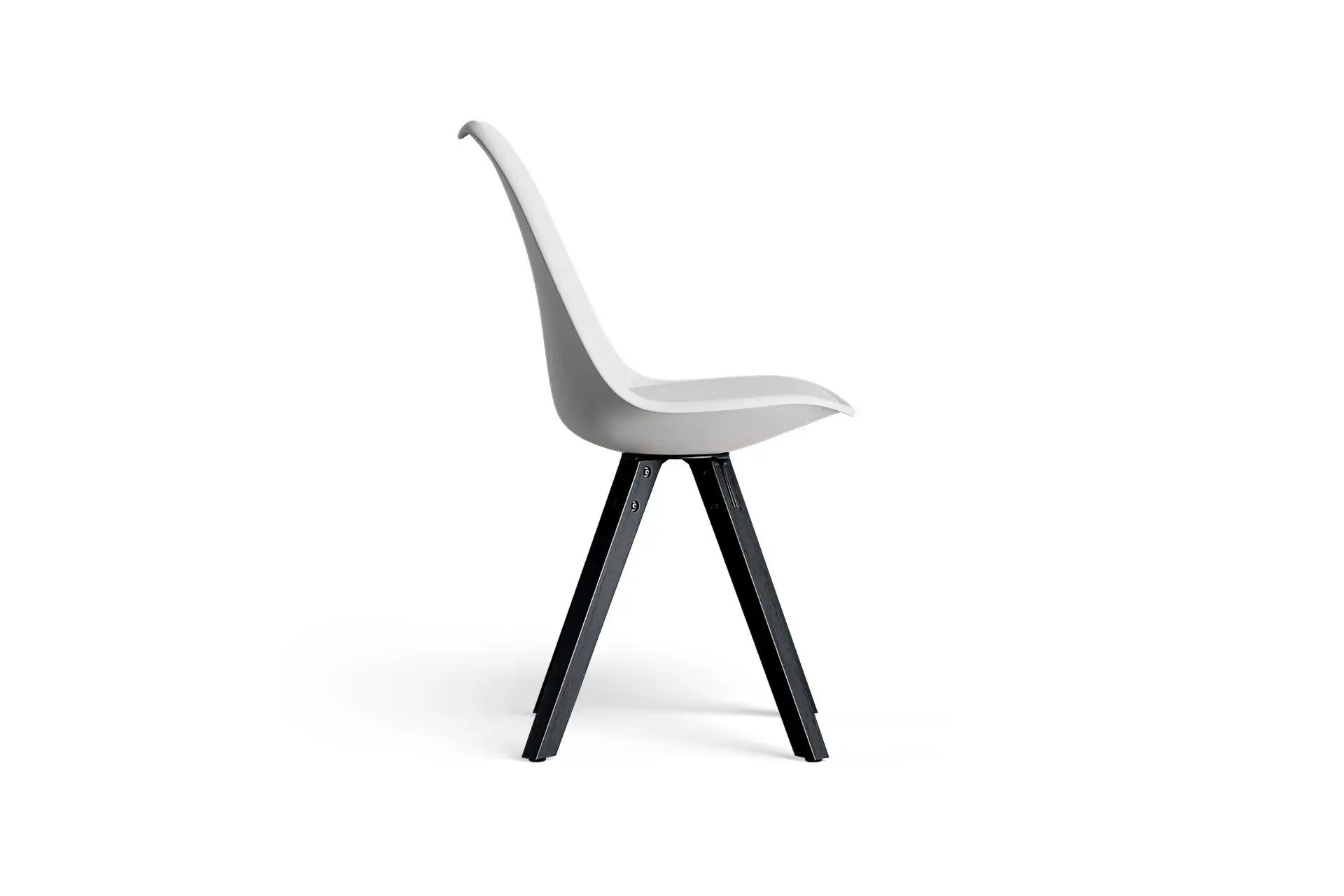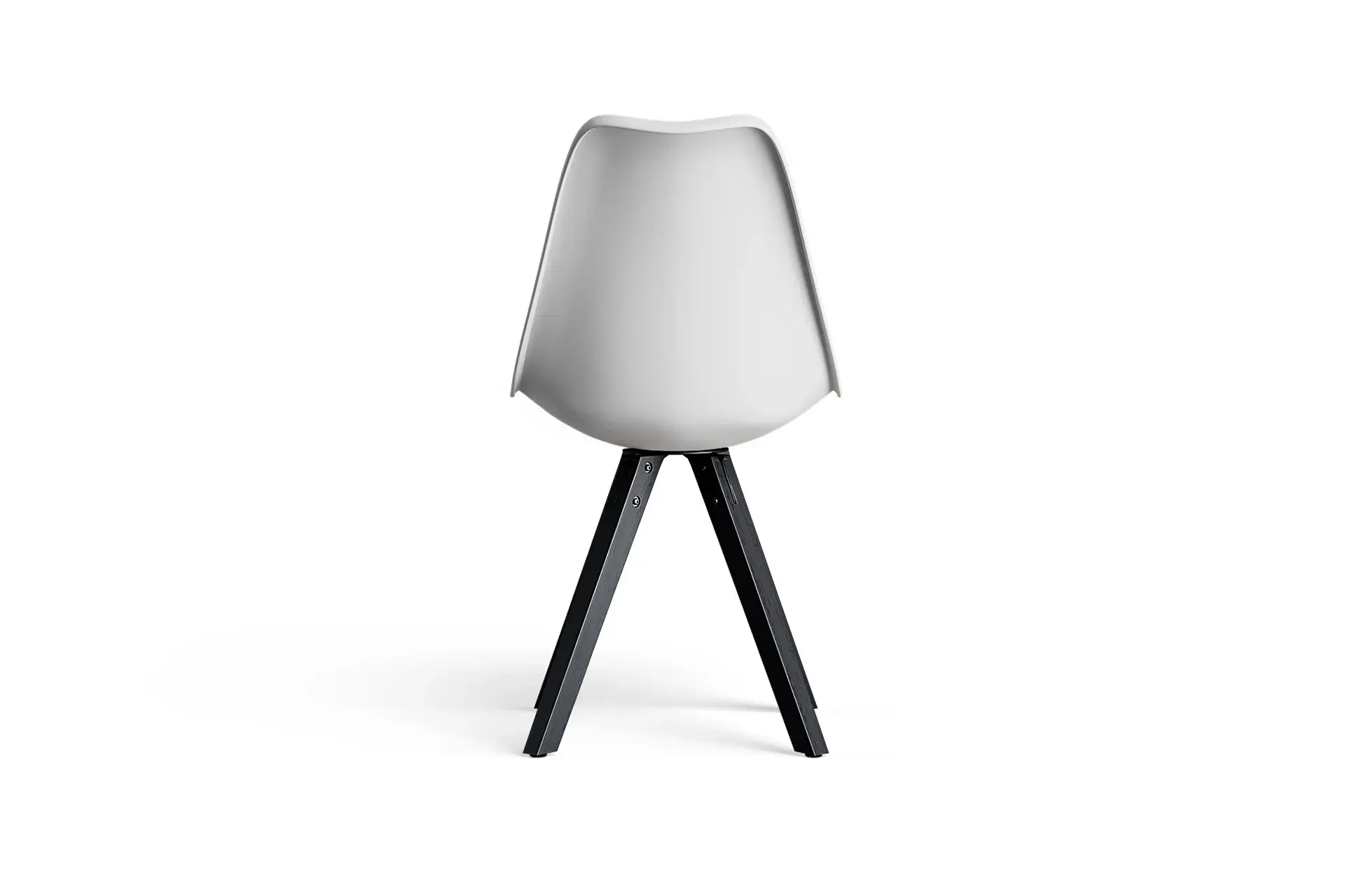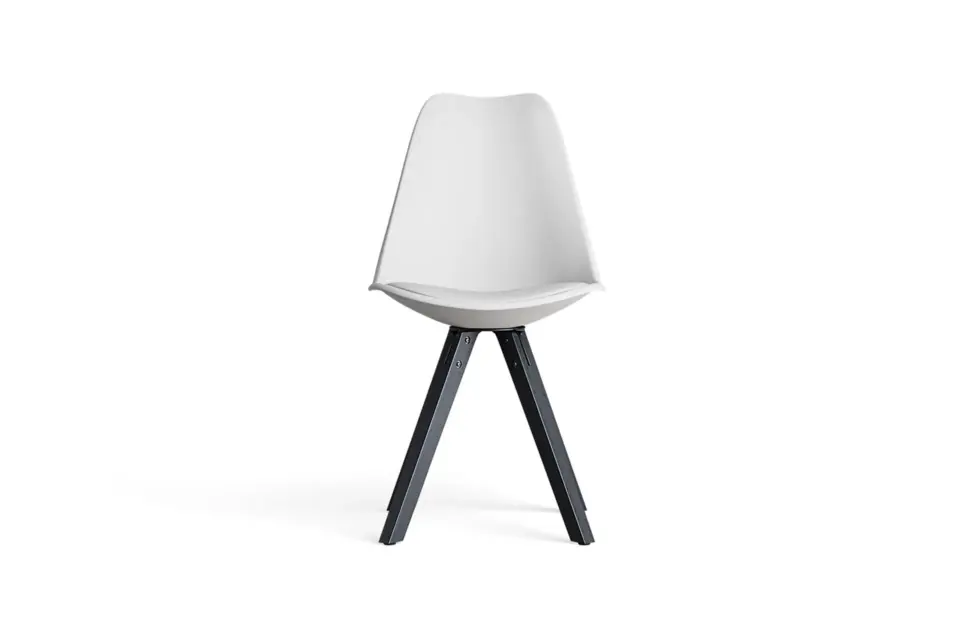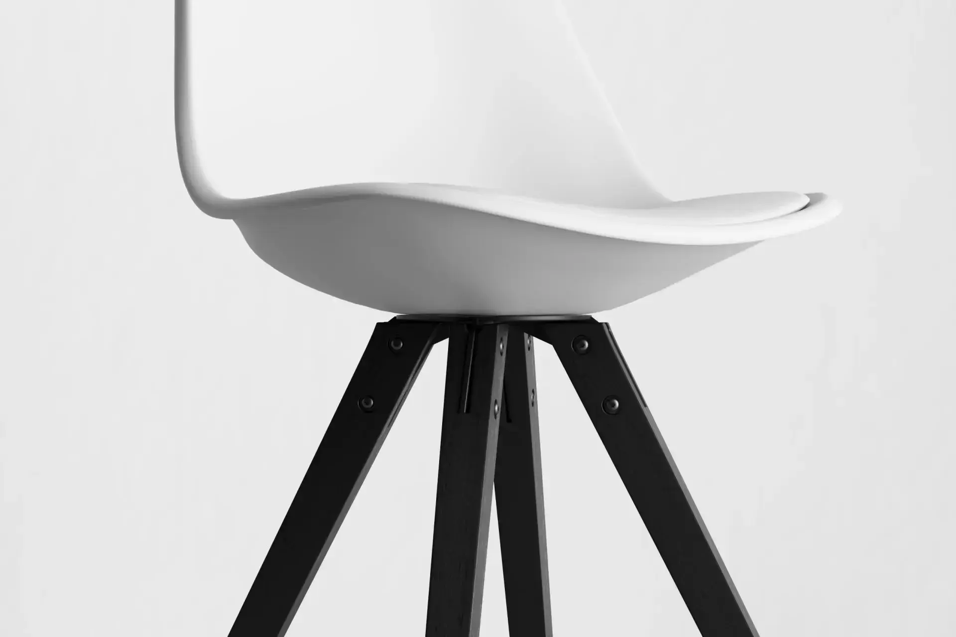A vision of purity and contrast, this chair combines a crisp white vegan leather seat with bold black wooden legs for a timelessly chic pairing. Its clean design captures Nordic simplicity while offering strength and resilience for daily use. Perfect for bright dining rooms or refined interiors, the pairing creates a striking silhouette that elevates modern minimalism. Comfortable, durable, and elegant, this piece becomes a versatile addition that blends seamlessly with your décor while making every occasion feel fresh and inspired. -