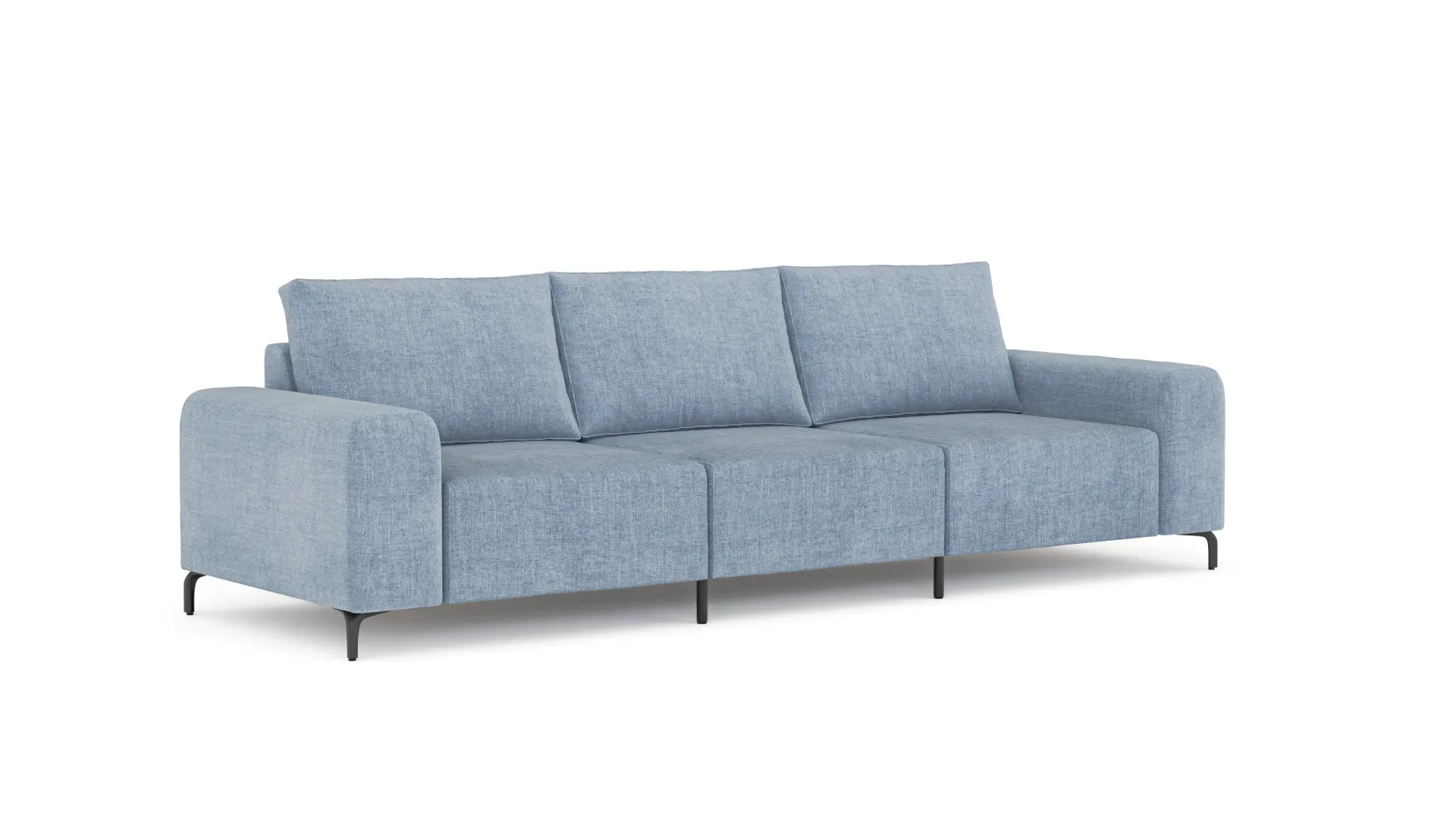 The Morgana Three Seater Sofa in Light Blue Linen captures Nordic minimalism with a fresh, calming tone. Upholstered in breathable linen, it brings a soothing, airy quality that brightens your space. Spacious yet elegant, it features supportive seating and plush cushions that encourage natural posture and long-term comfort. Perfect for family gatherings, relaxed evenings, or hosting friends, Morgana offers a welcoming retreat with quiet sophistication. With its graceful lines and timeless charm, it elevates your home with comfort, versatility, and modern Scandinavian style. -