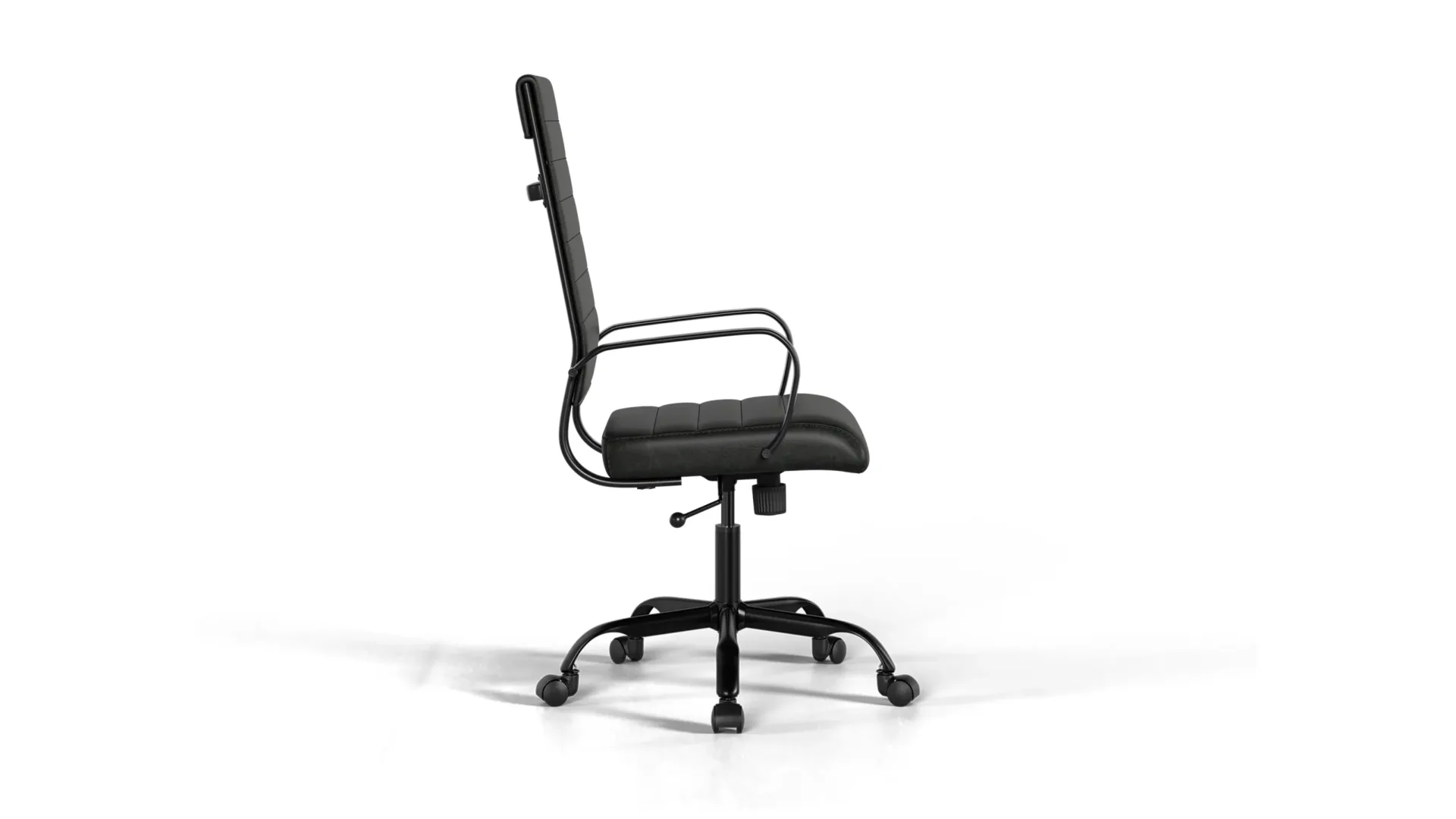 The Laguna High Back Chair in Black Vegan Leather with Black Base combines ergonomic design with refined durability. Featuring breathable vegan leather, reinforced stitching, and stable support, it ensures comfort and focus throughout long workdays. With a sturdy foundation and smooth mobility, it delivers reliability and style in every workspace.