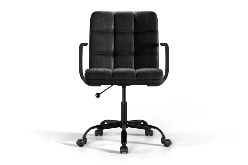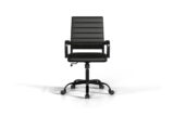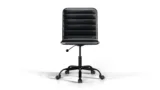 The Futura Medium Back Chair in Black Vegan Leather with Black Base and Wheels combines mid-century style, breathable vegan leather, and ergonomic support. With smooth mobility and lasting comfort, it adapts seamlessly to home or office settings, boosting productivity while ensuring a healthy posture all day.