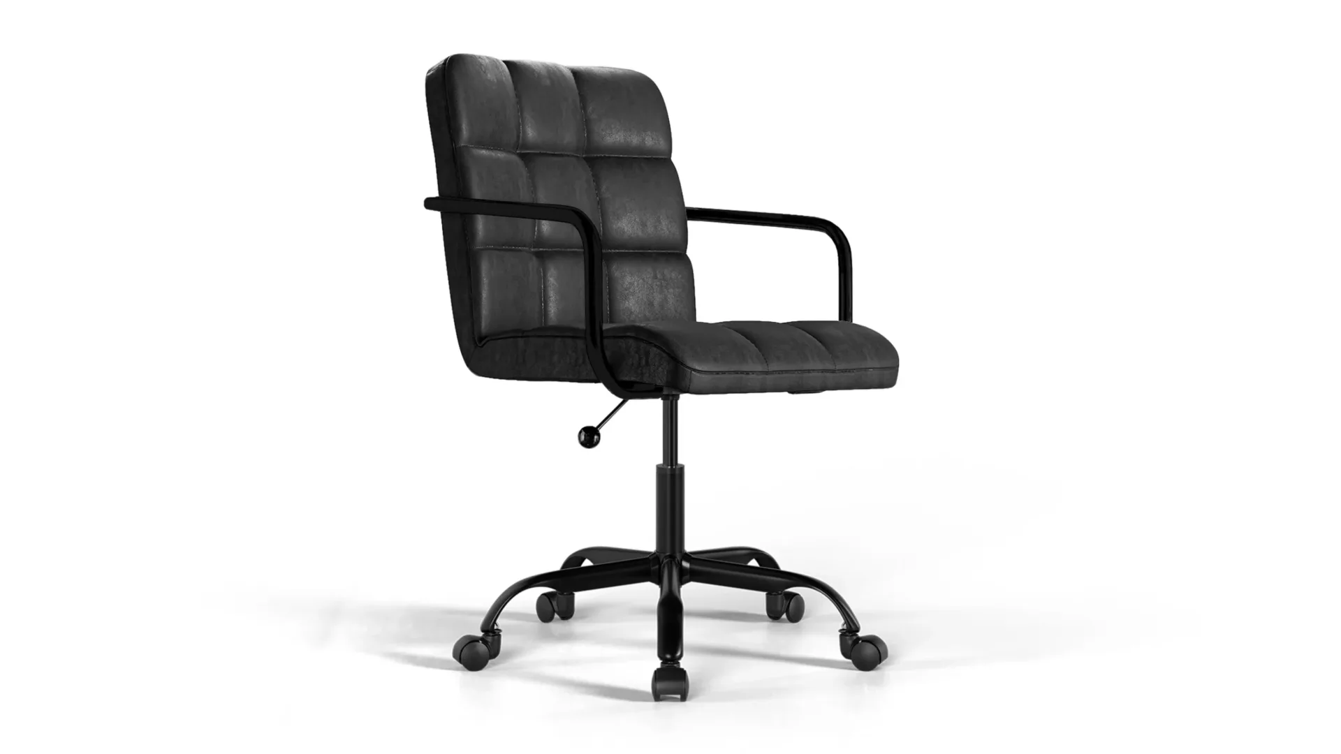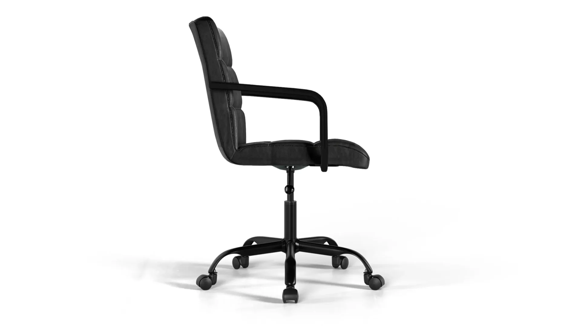 The Futura Office Chair in Black Vegan Leather with Black Base and Wheels combines Scandinavian style with ergonomic comfort. High-density cushions and height adjustability ensure lasting support, while breathable stitching reduces heat during long sessions. Smooth-glide wheels and a sturdy black base provide mobility and strength, making it perfect for both home and professional workspaces. -