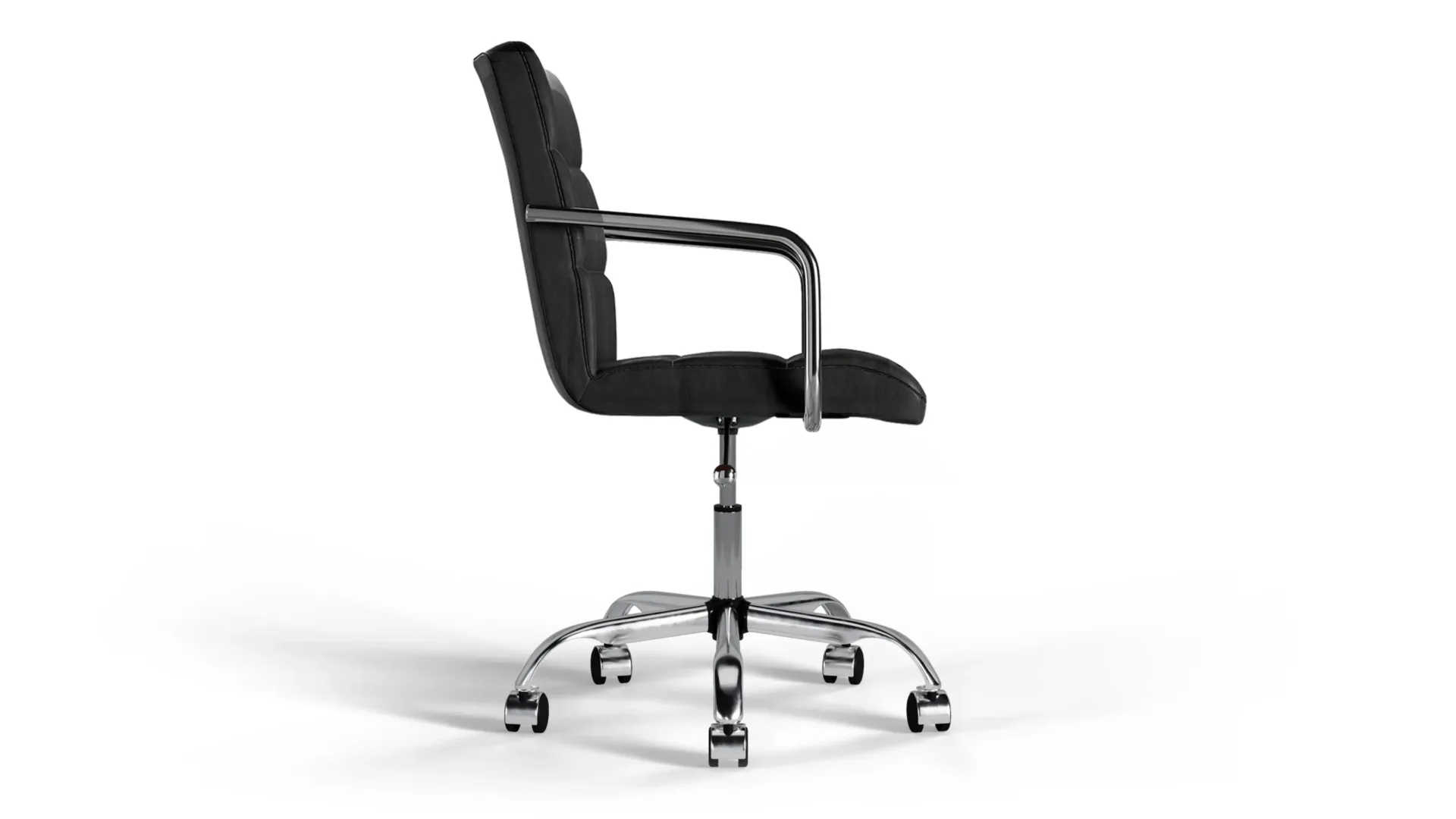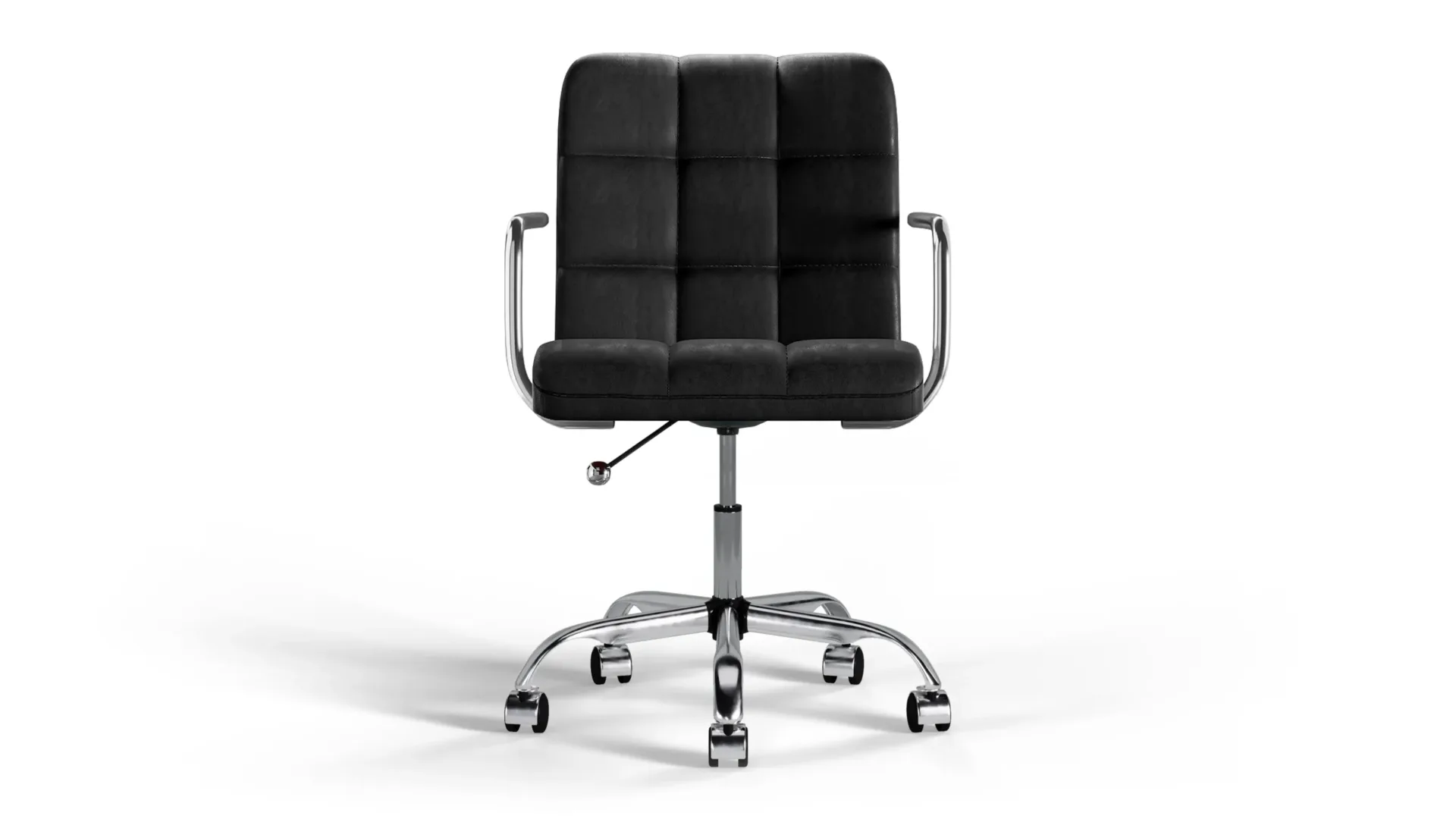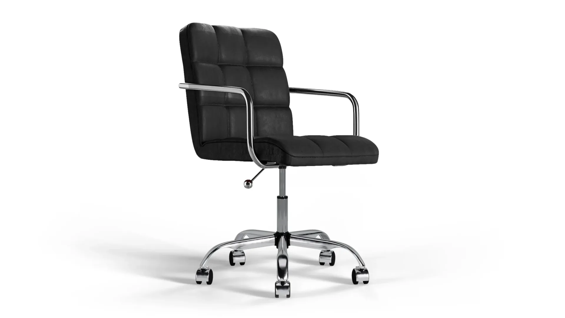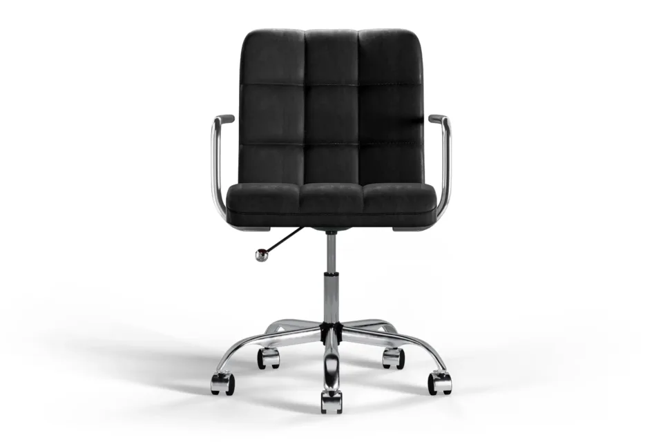 The Futura Office Chair in Black Vegan Leather with Chrome Base and Wheels blends timeless sophistication with practical comfort. Plush cushioning, height adjustability, and breathable stitching ensure lasting support, while a polished chrome base and smooth wheels provide strength and easy movement. Perfect for home or office use. -