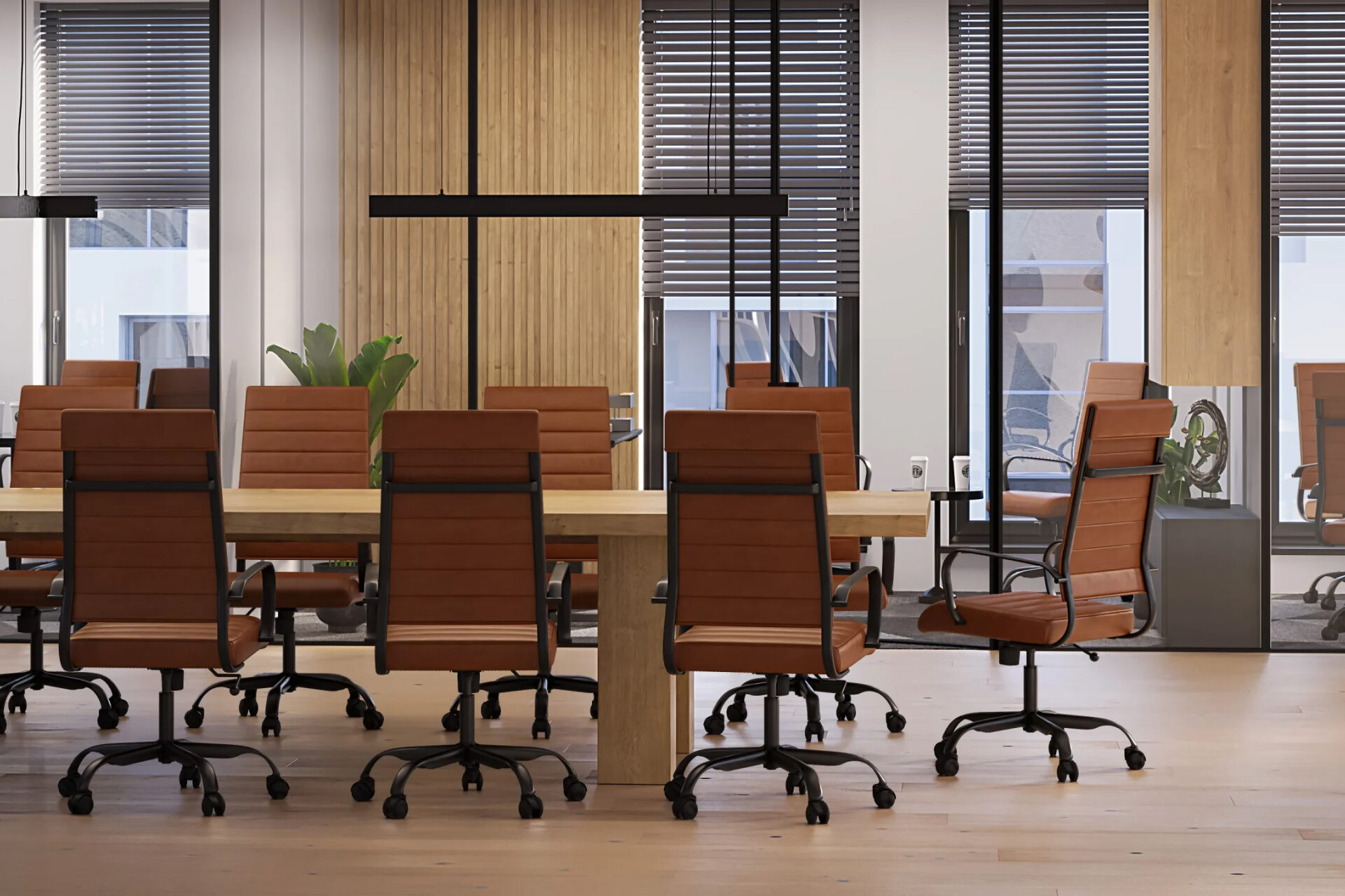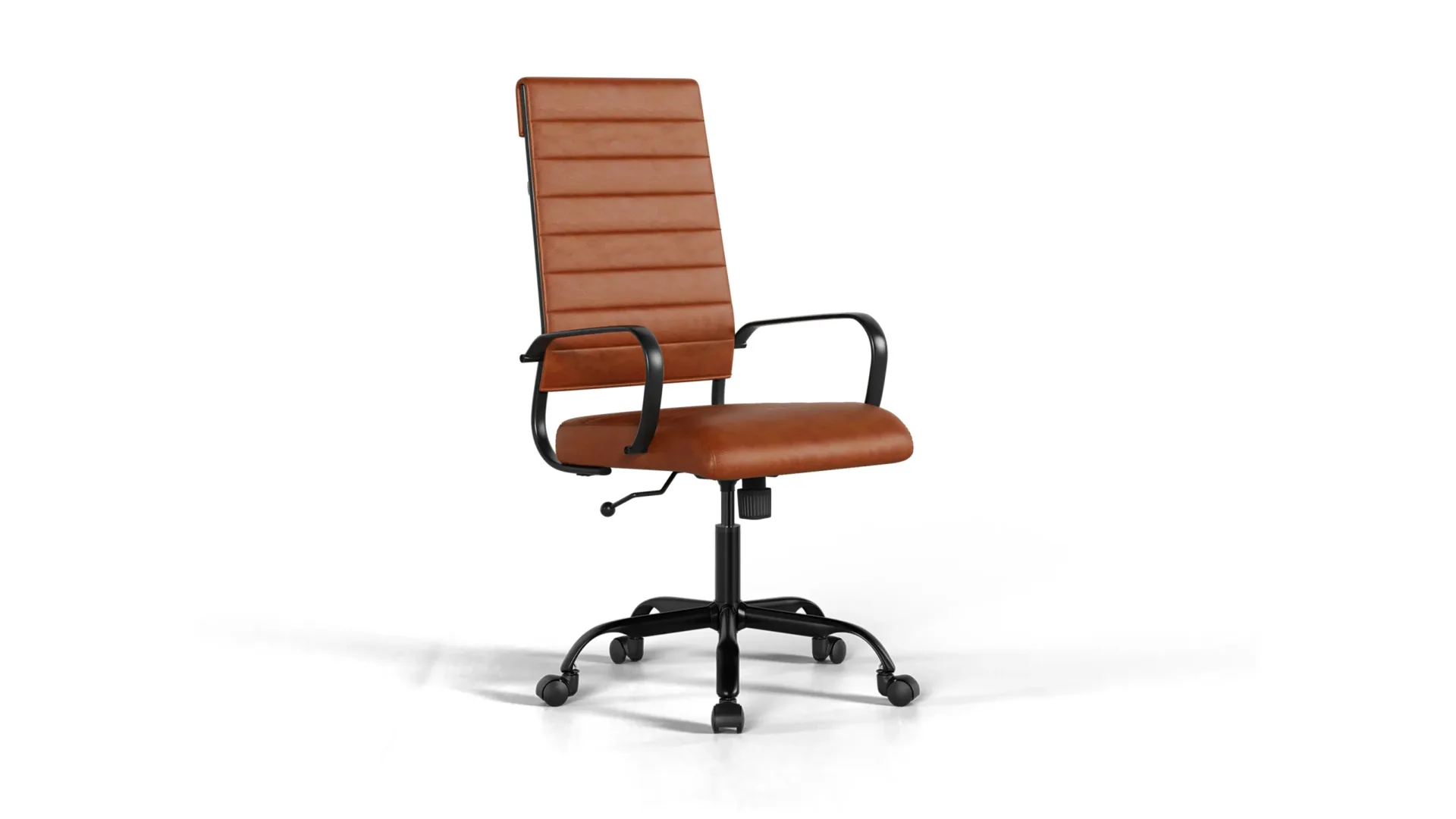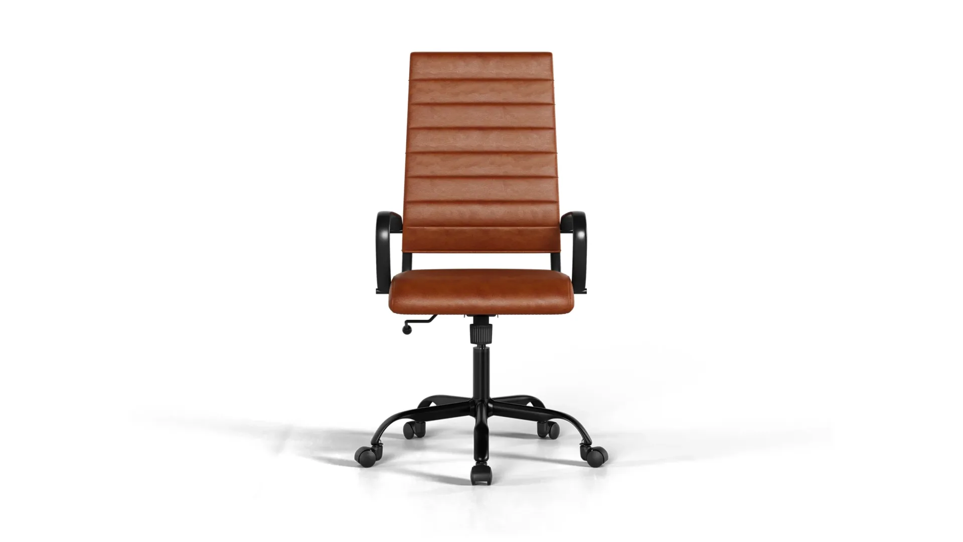 The Laguna High Back Office Chair with Wheels in Brown Vegan Leather and Black Base embodies timeless sophistication with modern ergonomic care. Its tall backrest, supple vegan leather, and strong black base bring warmth and elegance to any workspace. Designed with lumbar support, a knee-tilt mechanism, and adjustable height, it promotes natural posture and lasting comfort. With 360° swivel and durable components, Laguna adapts seamlessly to your working rhythm. More than a chair, it transforms offices into calm, stylish retreats for everyday productivity. -