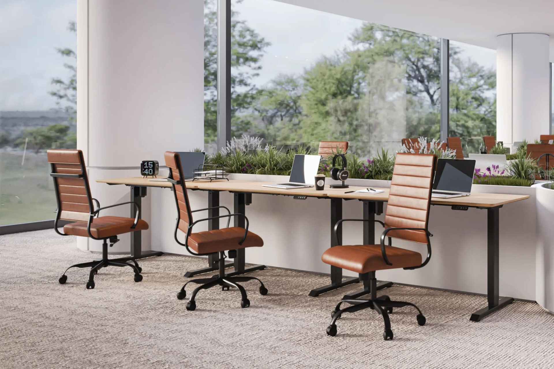 The Laguna High Back Chair in Brown Vegan Leather with Black Base combines refined style with ergonomic durability. Vegan leather upholstery and airflow stitching prevent fatigue, while its sturdy base ensures strength up to 150 kg. Smooth wheels add flexibility, creating a comfortable and stylish partner for everyday work.