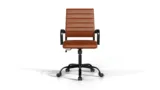 The Dinamo Chair in Brown Vegan Leather with Black Base and Wheels combines breathable vegan leather with armless versatility and structural strength. Inclusive for all body types and built to support up to 150 kg, it offers affordability, smooth mobility, and long-lasting comfort for professional and home offices alike.