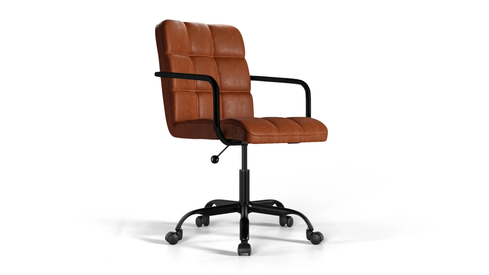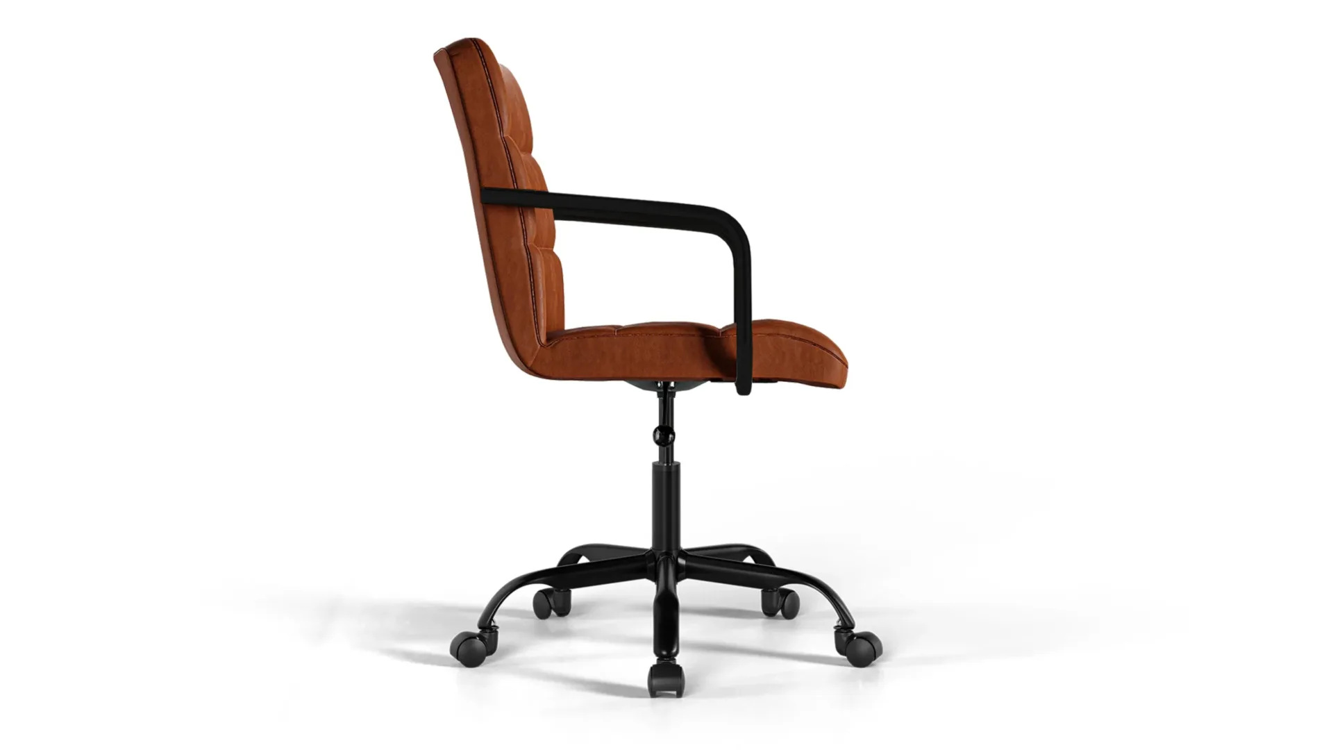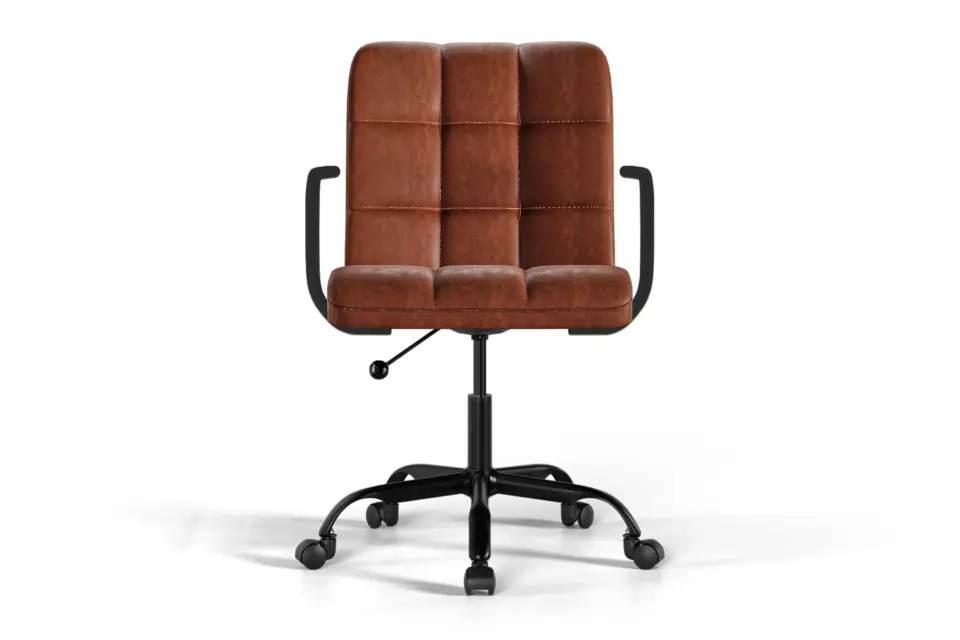The Futura Office Chair in Brown Vegan Leather with Black Base and Wheels brings natural warmth and ergonomic comfort. Its soft cushions, height adjustability, and breathable stitching encourage posture and relaxation, while smooth wheels and a solid base provide strength. A timeless choice for stylish and productive workspaces. -