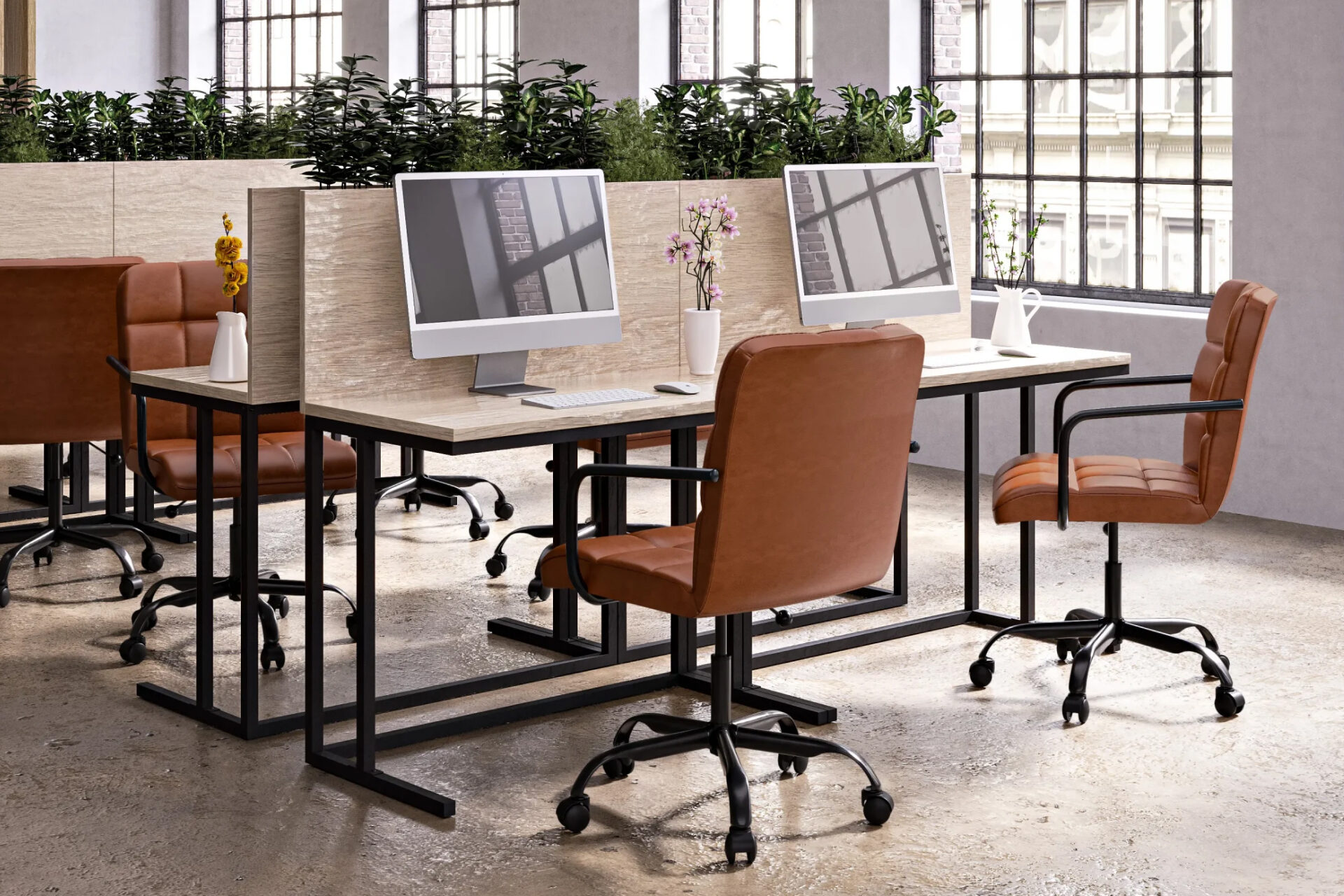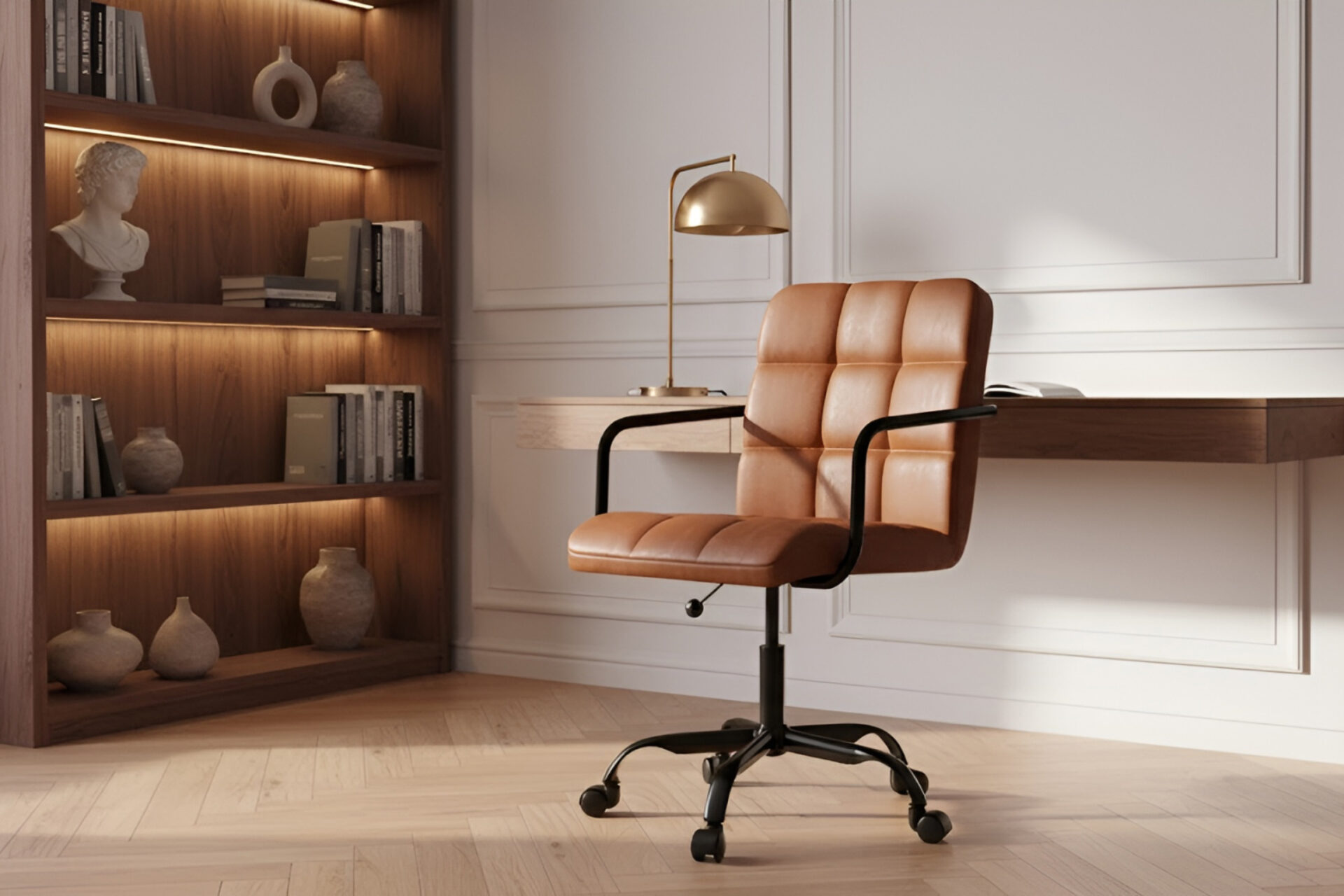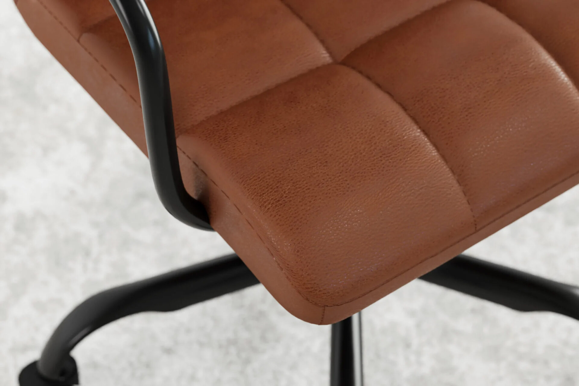The Futura Office Chair in Brown Vegan Leather with Black Base and Wheels brings natural warmth and ergonomic comfort. Its soft cushions, height adjustability, and breathable stitching encourage posture and relaxation, while smooth wheels and a solid base provide strength. A timeless choice for stylish and productive workspaces. -