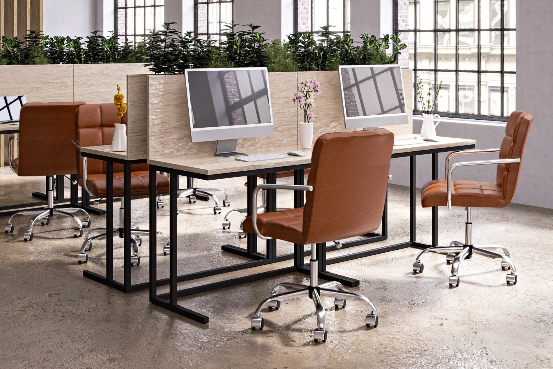 The Futura Medium Back Chair in Brown Vegan Leather with Chrome Base and Wheels unites warm style, breathable vegan leather, and ergonomic support. With smooth wheels and a polished chrome base, it brings versatility, durability, and timeless sophistication to professional spaces or modern home offices.