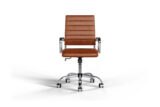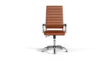 The Laguna High Back Chair in Brown Vegan Leather with Chrome Base brings timeless refinement and dependable strength. Upholstered in breathable vegan leather, it offers fatigue-free comfort. A sturdy chrome base supports up to 150 kg, while smooth wheels deliver mobility—ideal for professional and home offices alike.