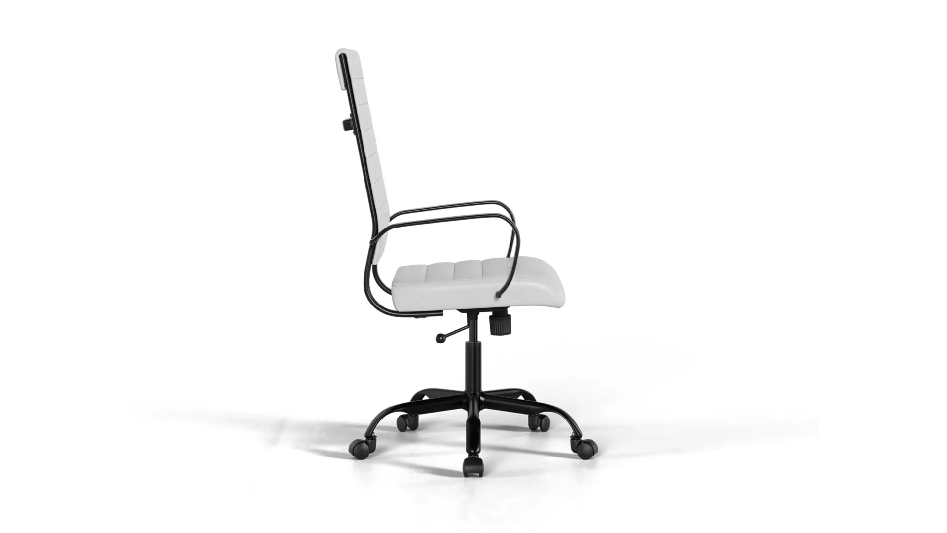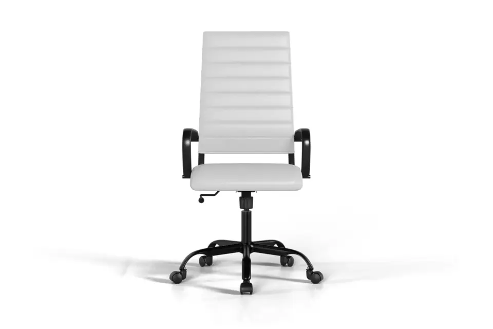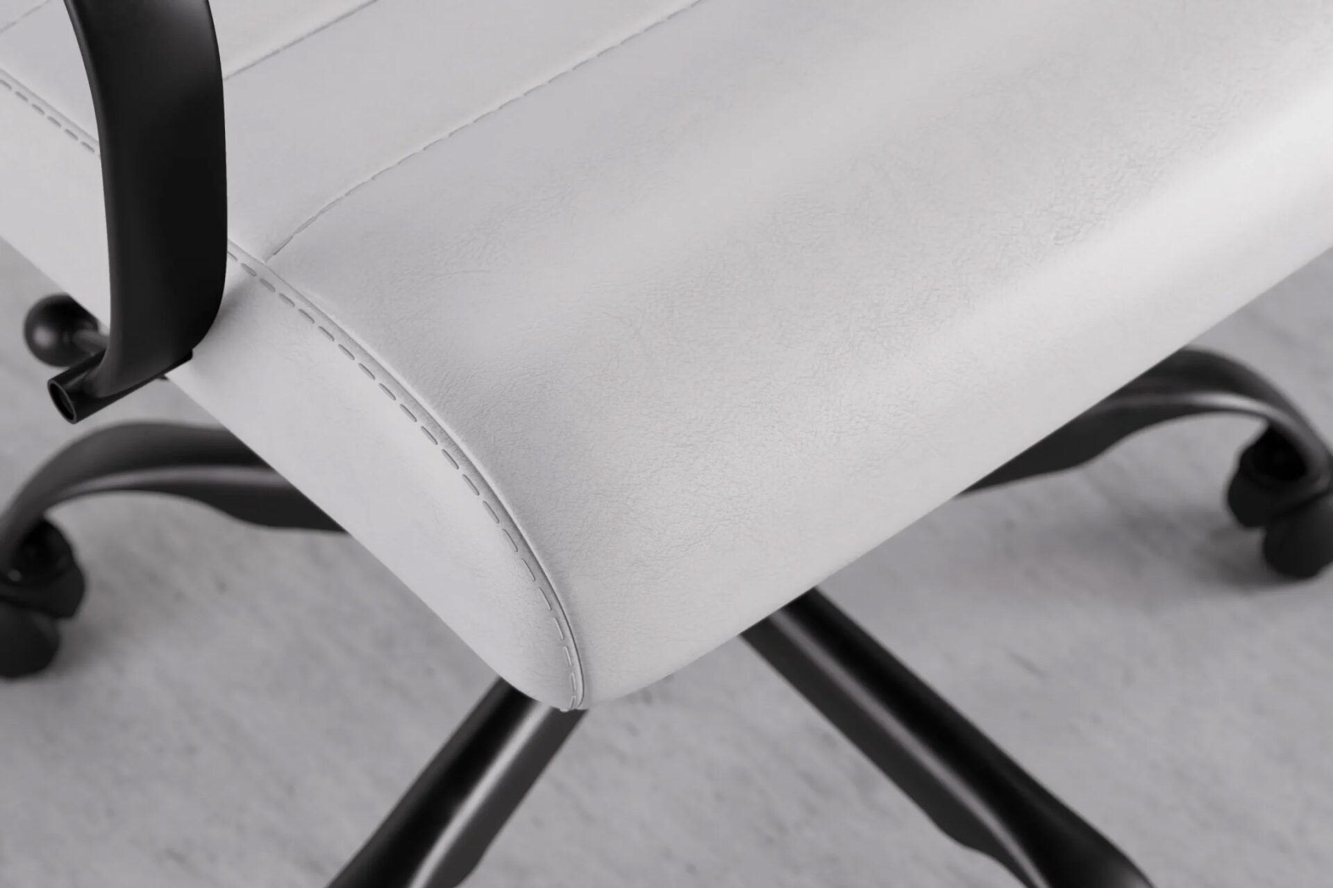 The Laguna High Back Chair in White Vegan Leather with Black Base combines timeless design with ergonomic support. Breathable vegan leather upholstery and reinforced stitching ensure lasting quality. With smooth mobility and a strong foundation, it provides comfort and stability, making it a stylish companion for long work sessions.