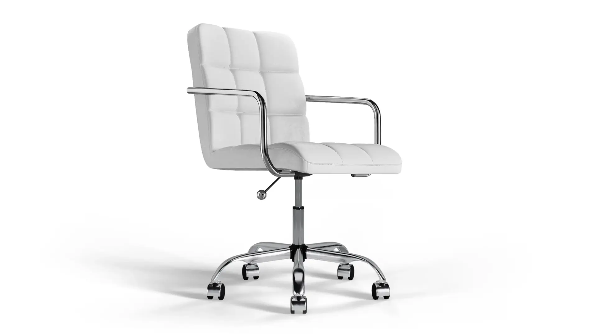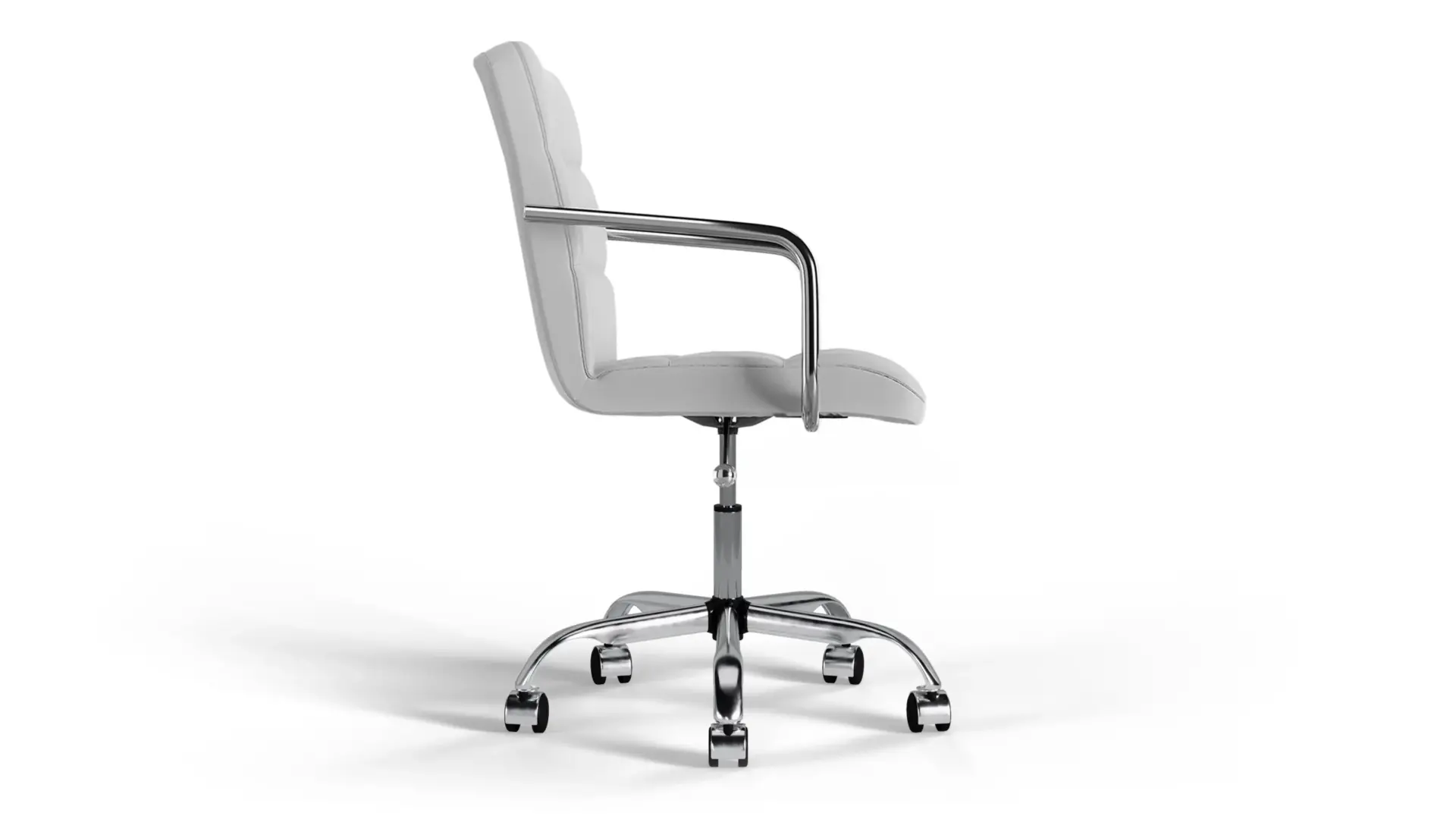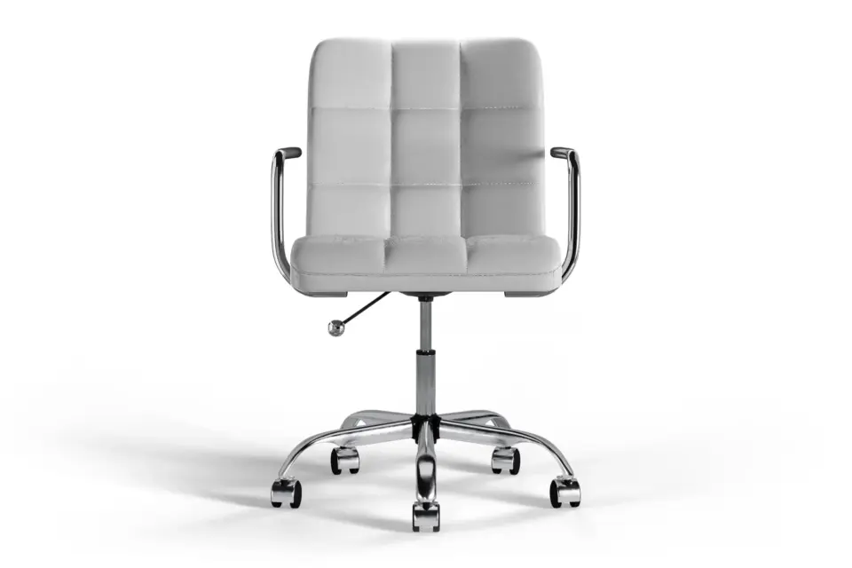 The Futura Office Chair in White Vegan Leather with Chrome Base and Wheels blends Scandinavian minimalism with lasting support. Upholstered in vegan leather with breathable stitching, it ensures daily comfort. A polished chrome base with smooth wheels offers stability and mobility, making it ideal for refined, modern workspaces. -