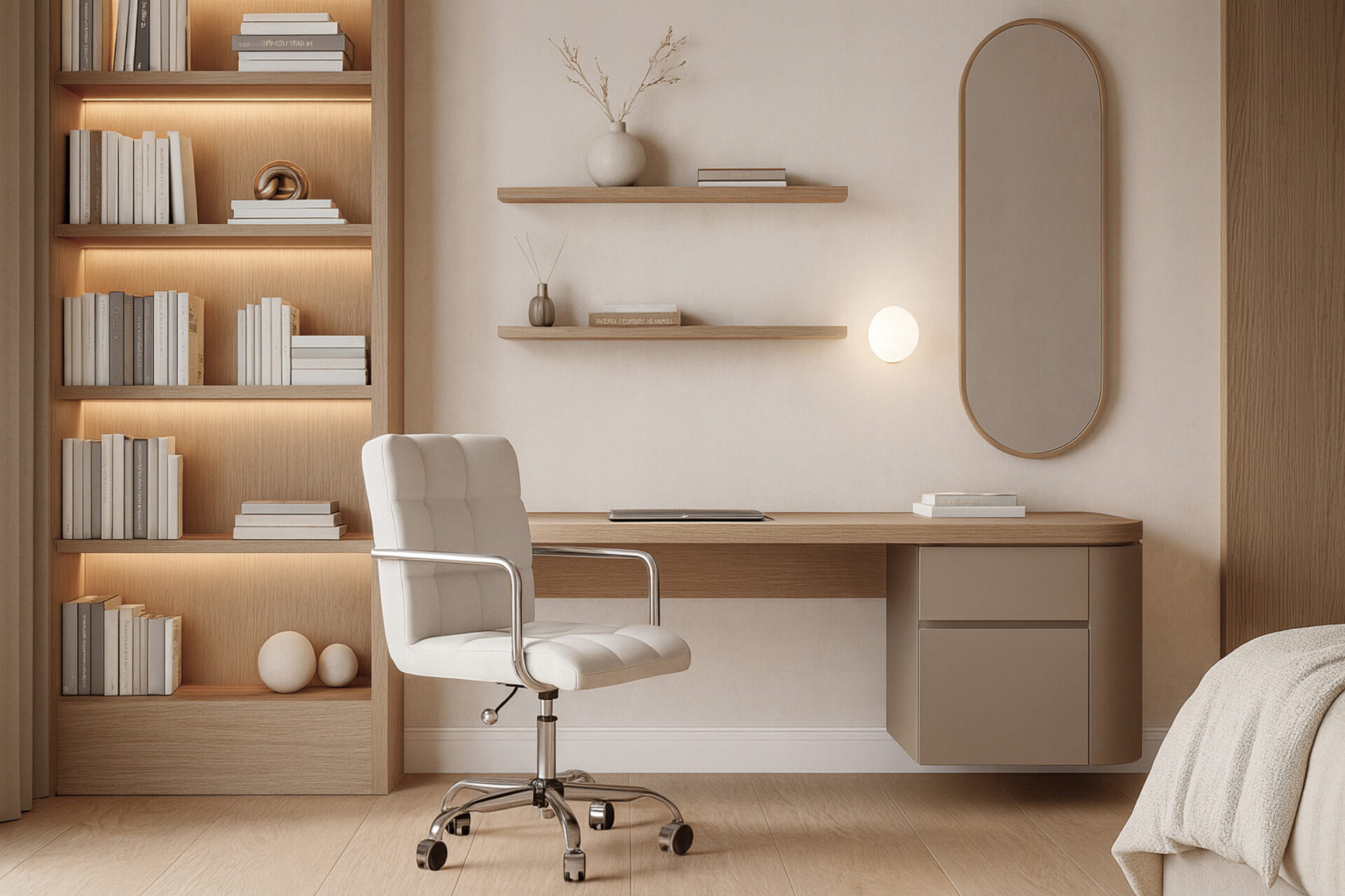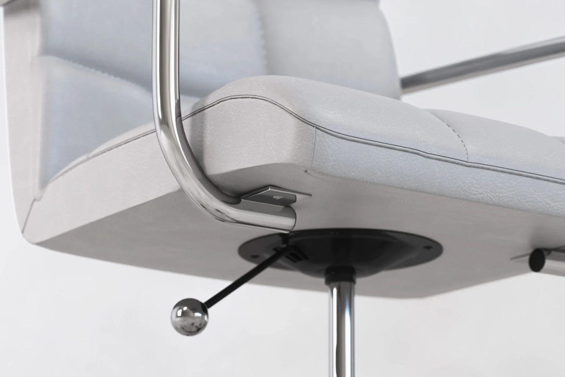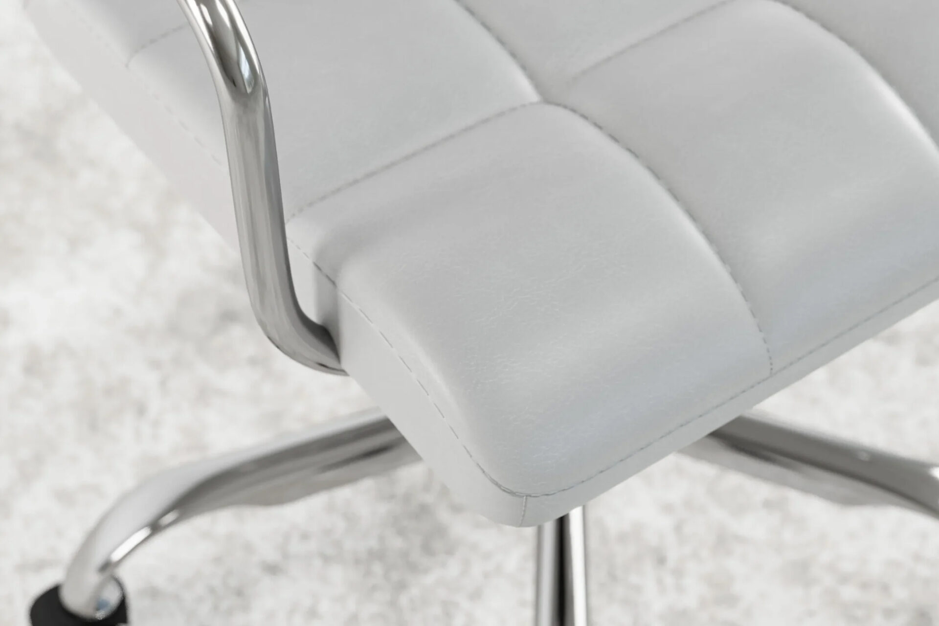 The Futura Office Chair in White Vegan Leather with Chrome Base and Wheels blends Scandinavian minimalism with lasting support. Upholstered in vegan leather with breathable stitching, it ensures daily comfort. A polished chrome base with smooth wheels offers stability and mobility, making it ideal for refined, modern workspaces. -
