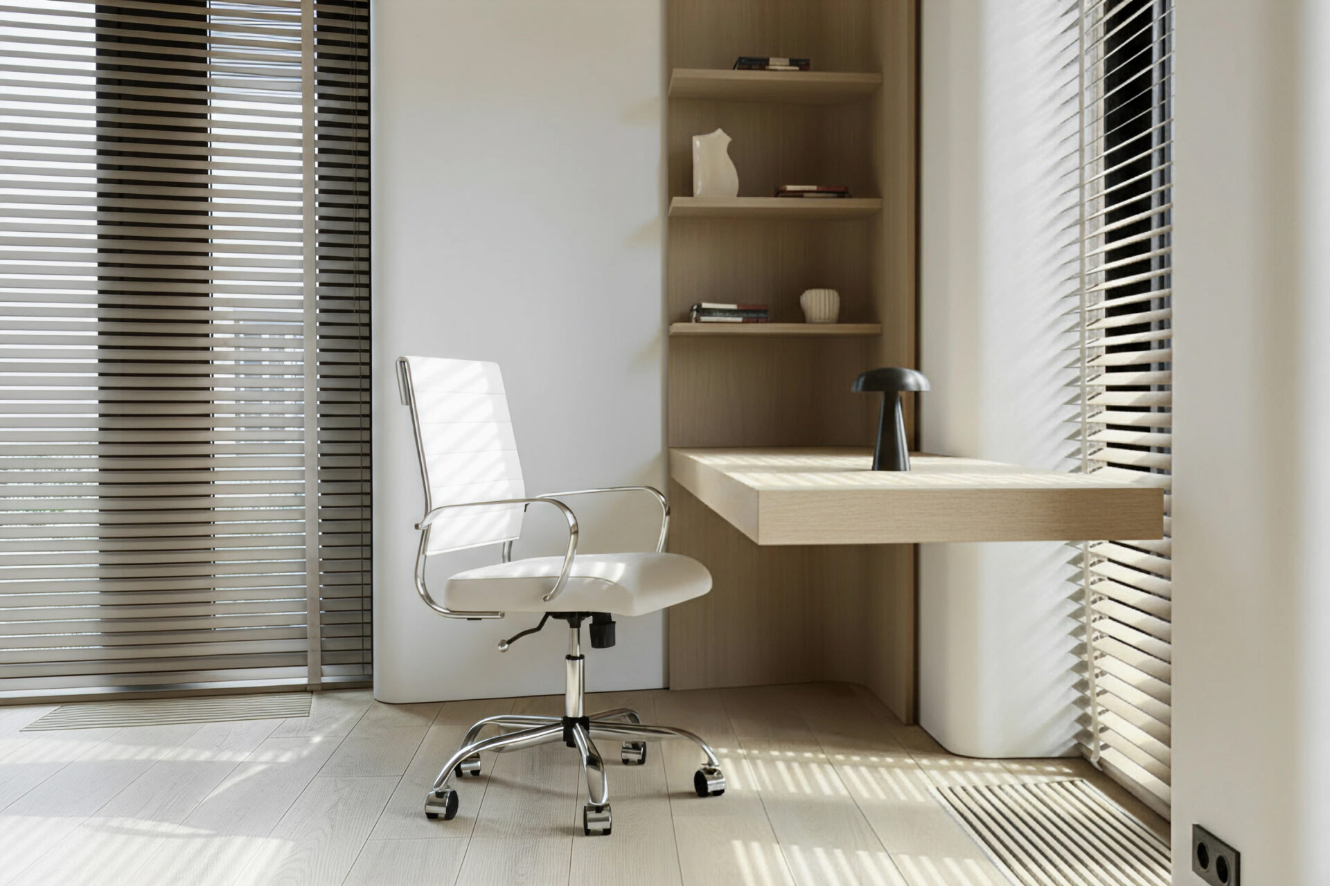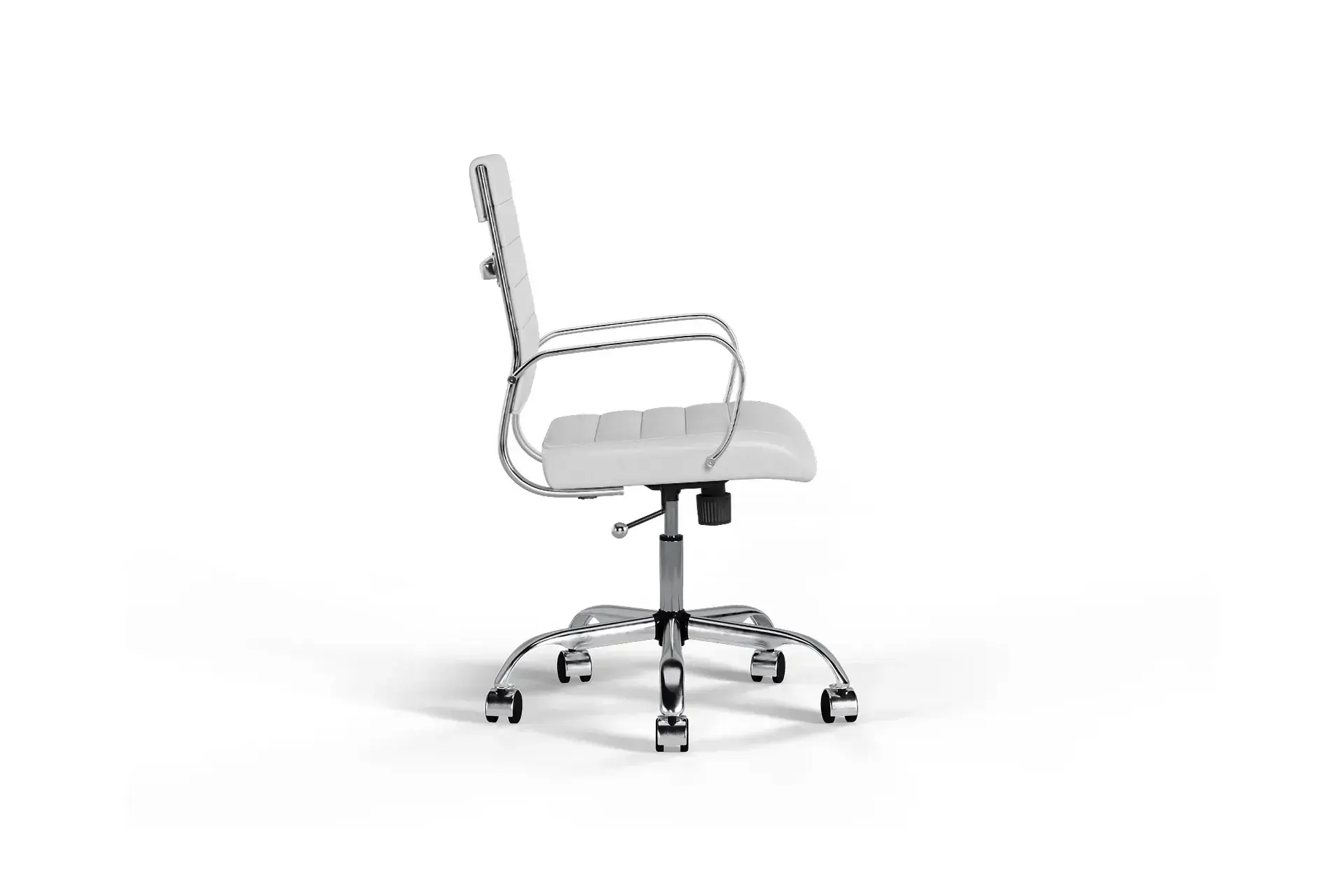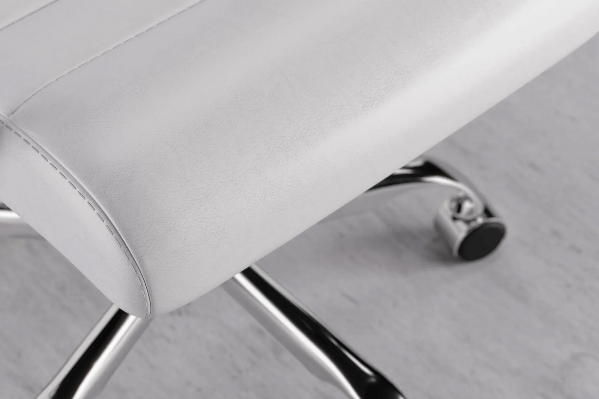 The Laguna Medium Back Chair in White Vegan Leather with Chrome Base combines sleek elegance with lasting comfort. Breathable vegan leather and detailed stitching ensure long-term quality. With smooth wheels and a polished chrome base, it provides both stability and mobility, making it a versatile addition to modern offices.
