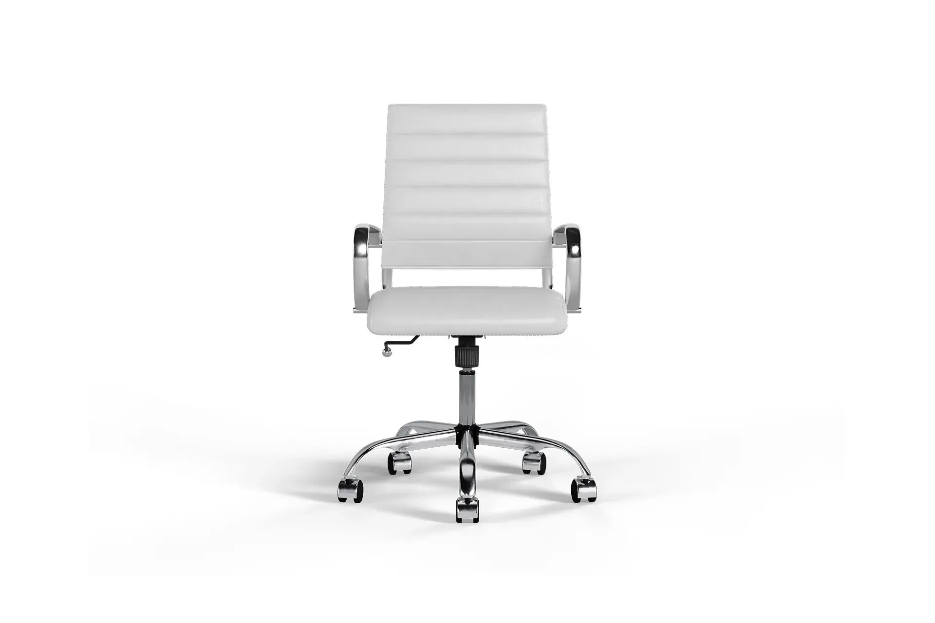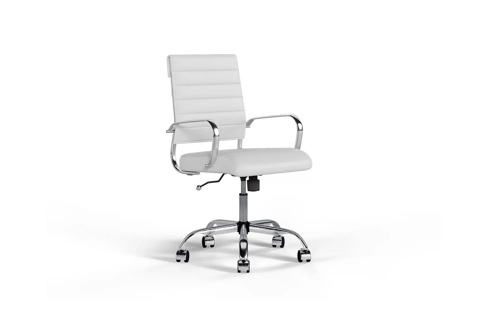 The Laguna Medium Back Office Chair with Wheels in White Vegan Leather and Chrome Base combines modern refinement with ergonomic comfort. Upholstered in smooth vegan leather, its bright finish contrasts beautifully with the polished chrome base for a sleek, contemporary look. Featuring lumbar support, adjustable height, and smooth 360° mobility, it promotes natural posture and everyday comfort. Built with durable components, Laguna is designed to adapt seamlessly to professional offices or stylish home workspaces, balancing timeless sophistication with practical performance. -