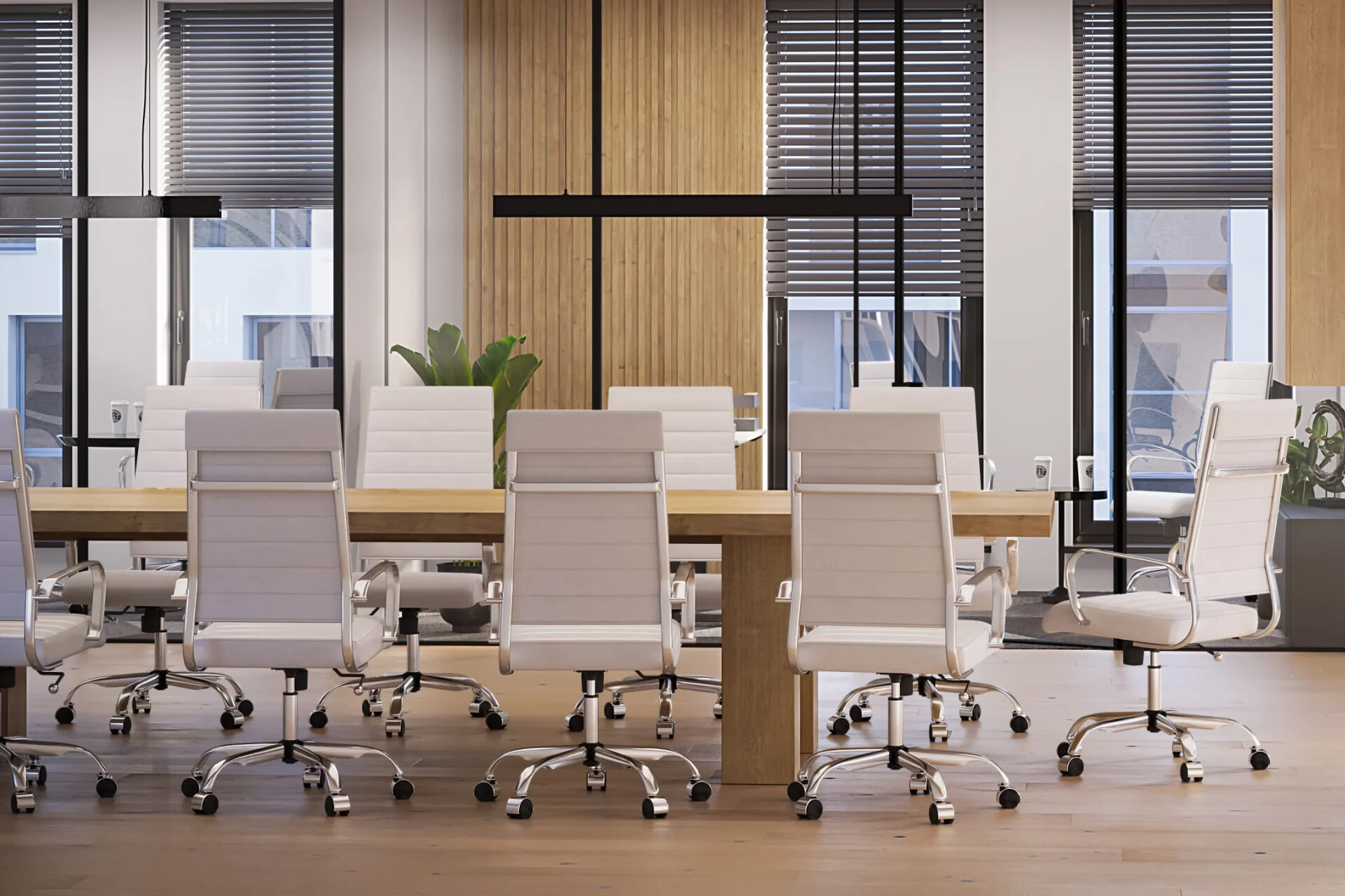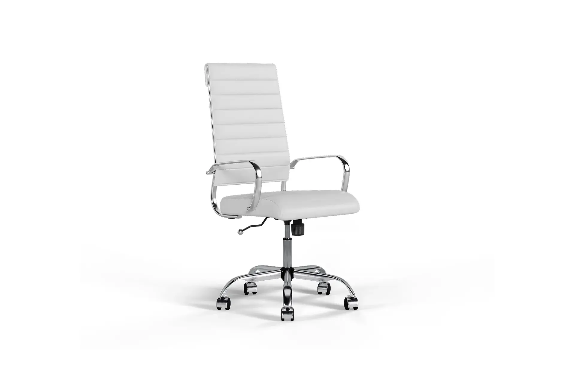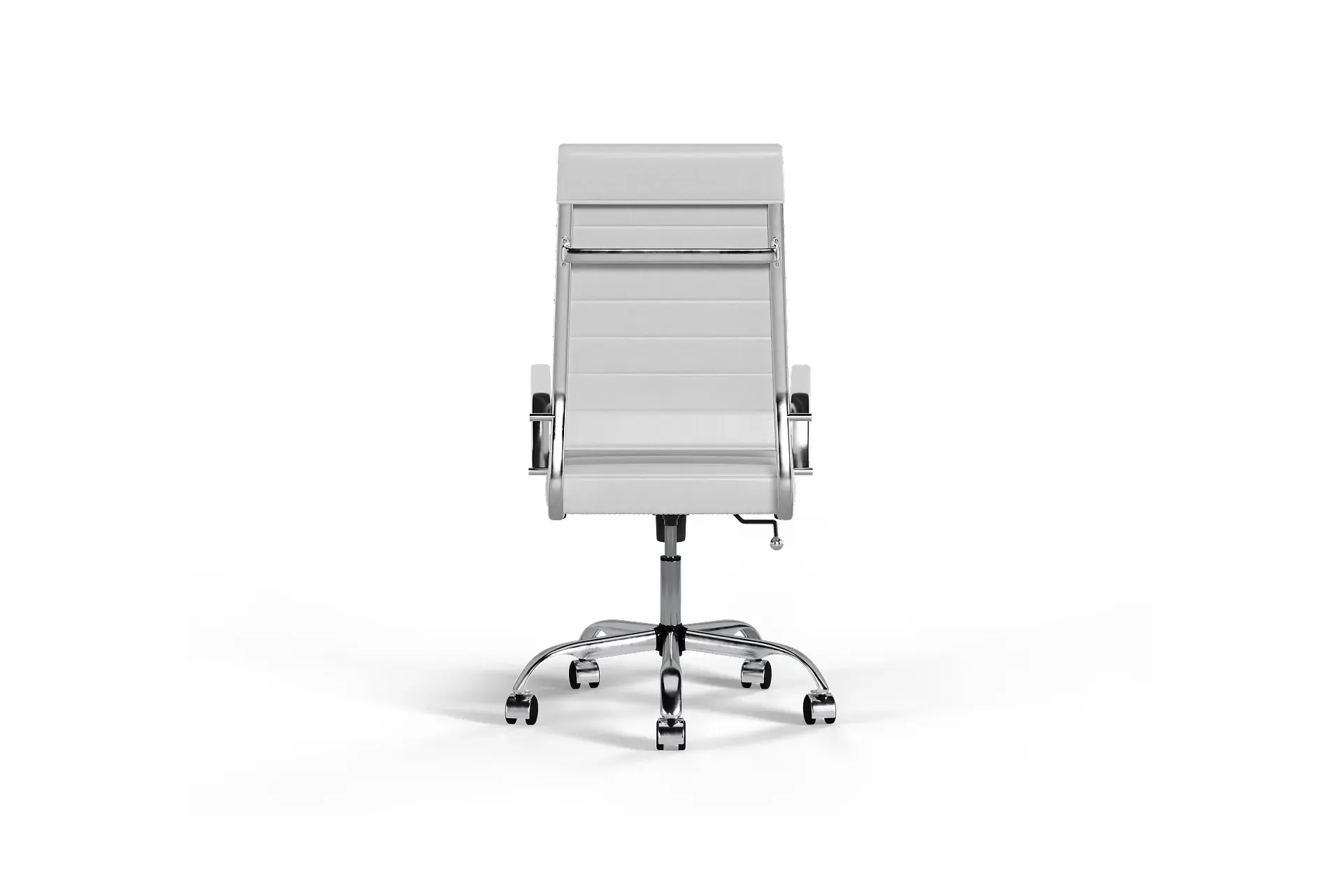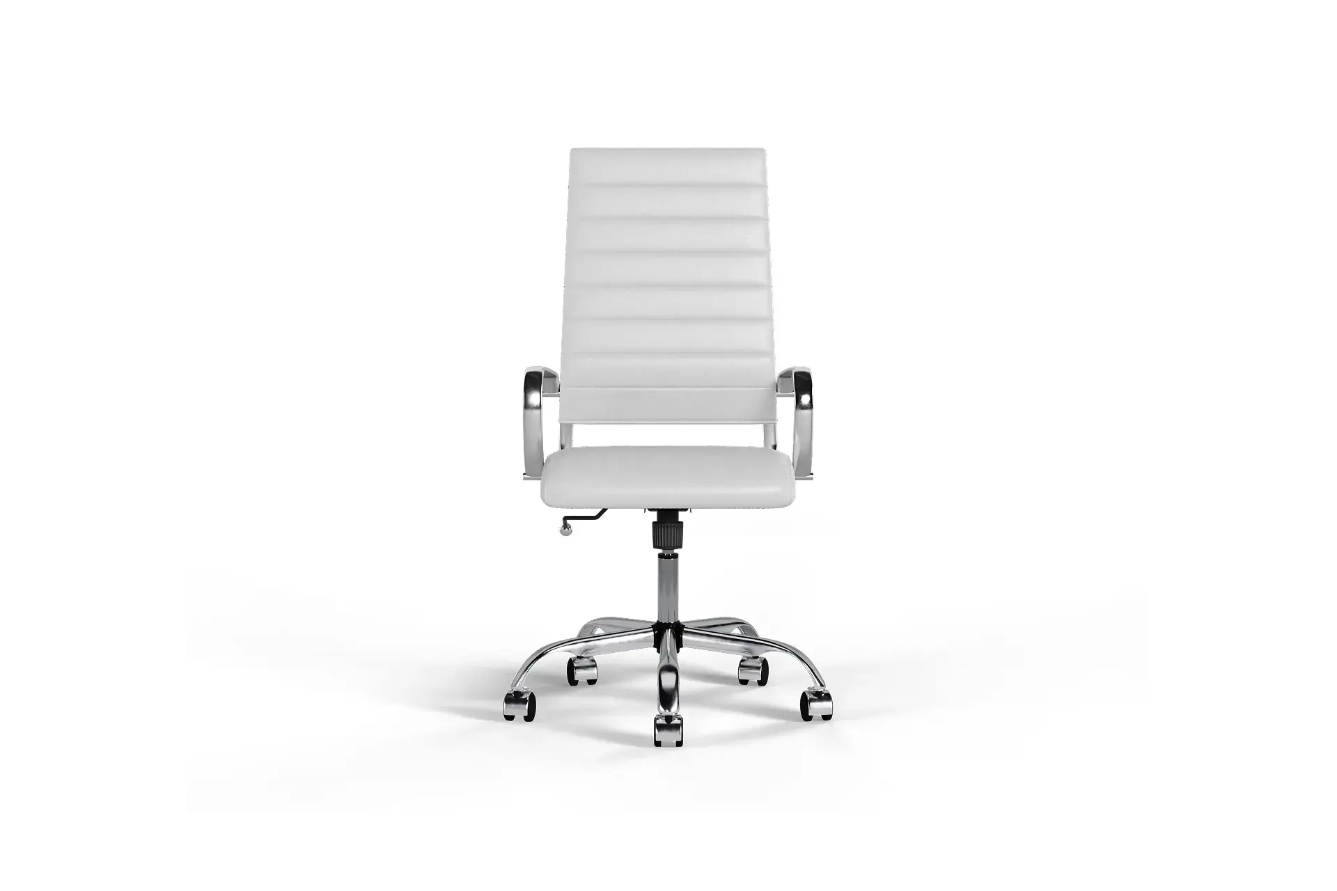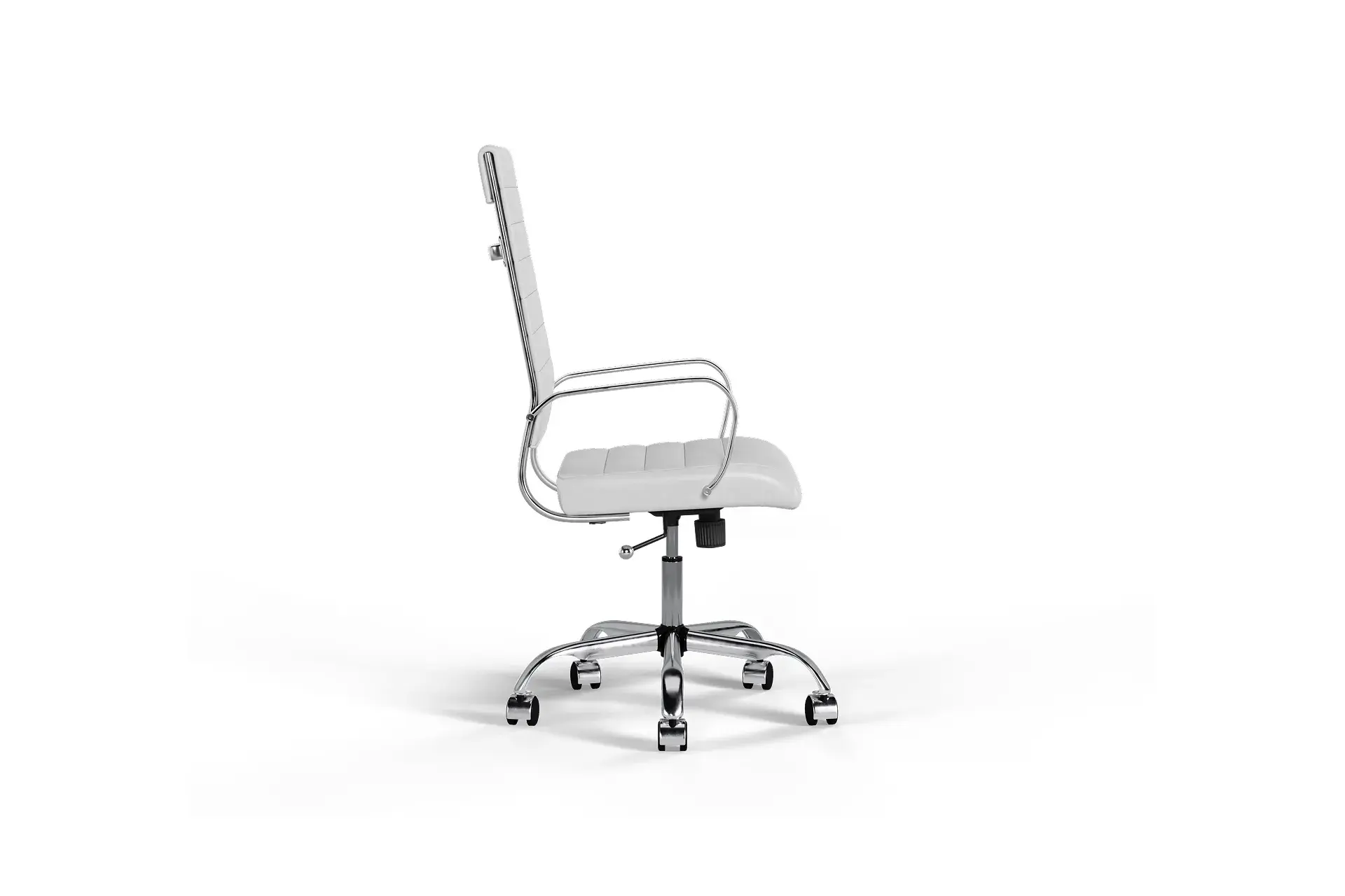 The Laguna High Back Office Chair with Wheels in White Vegan Leather and Chrome Base blends elegant minimalism with full ergonomic support. Its tall backrest and supple vegan leather upholstery provide lasting comfort, while the polished chrome base adds modern sophistication. With lumbar support, adjustable features, and 360° swivel motion, it encourages natural posture and effortless productivity. Ideal for boardrooms, home offices, or creative spaces, Laguna transforms any environment into a sanctuary of focus and style, uniting durability, comfort, and timeless design. -