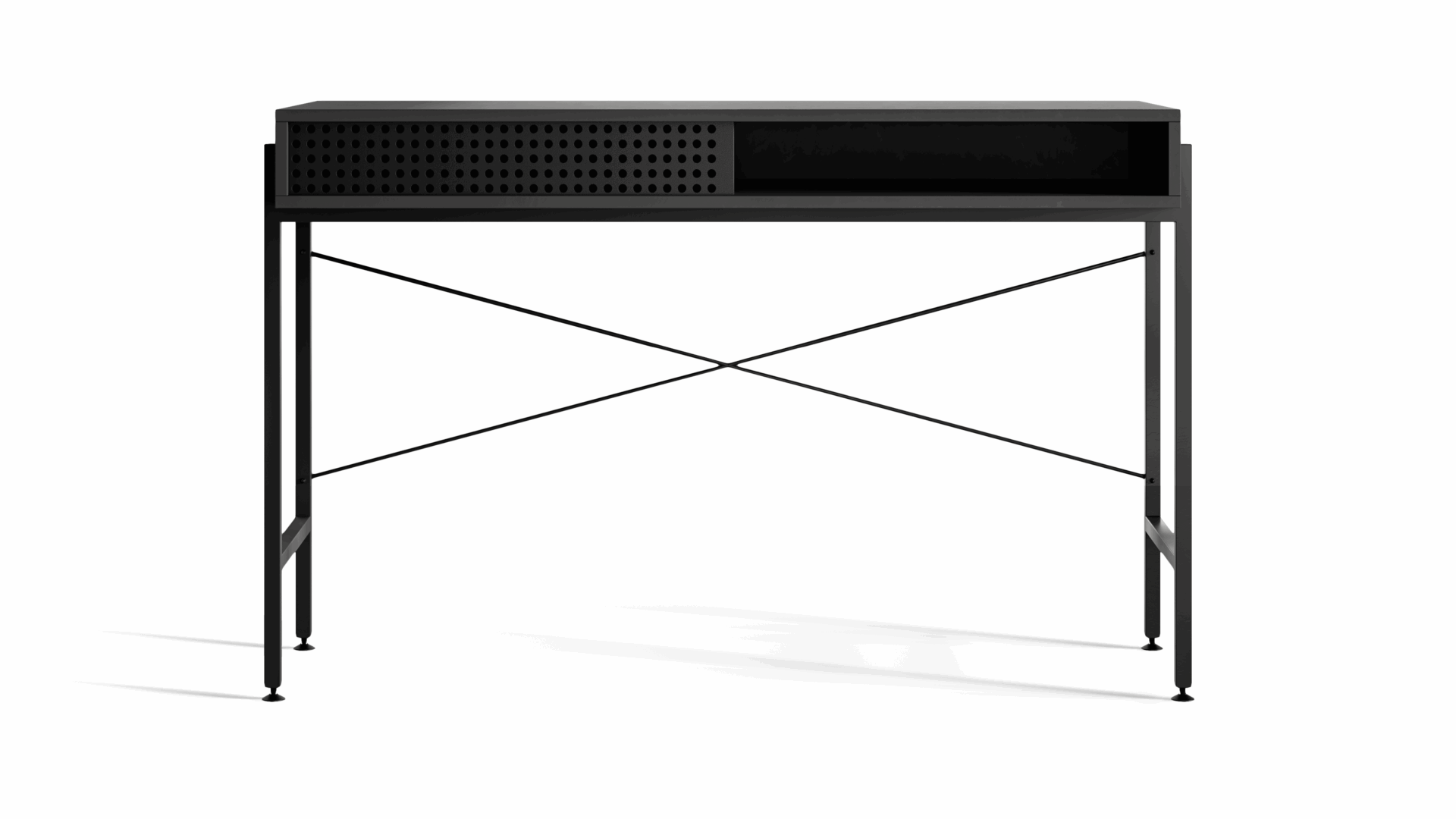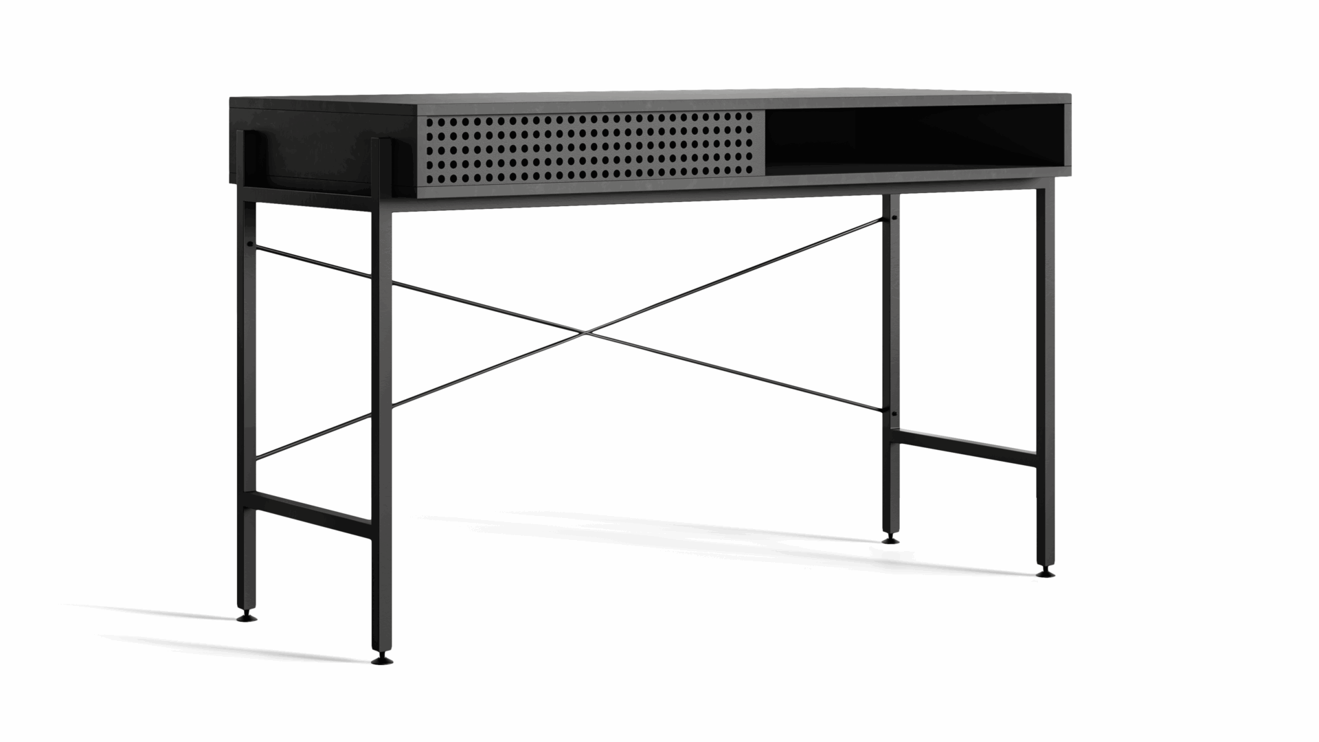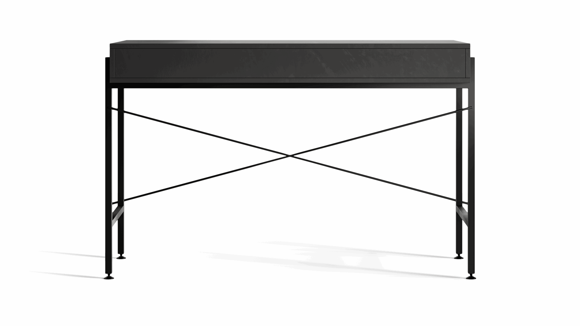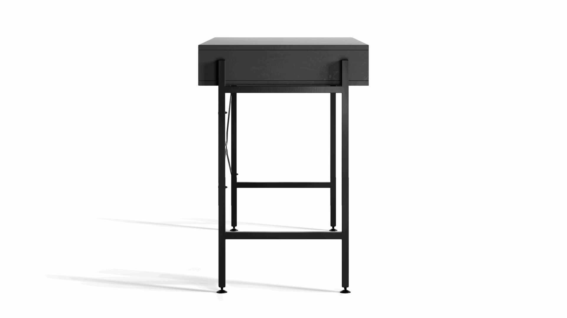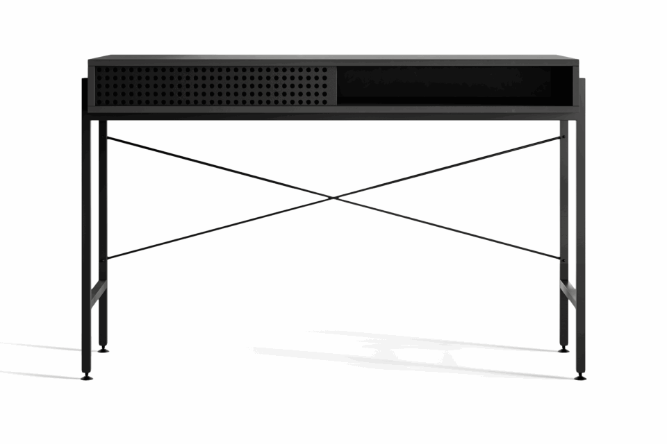 Minimalist in design, this black desk offers quiet strength and refined presence. A statement piece that brings elegance and focus into any contemporary space.