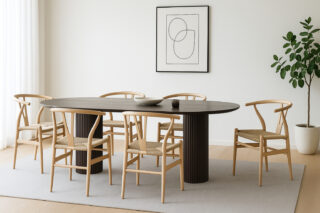 The Raylan Chair in beech highlights the beauty of natural grain and soft tones. Its handwoven paper cord seat adds texture and authenticity, while the curved backrest offers lasting comfort—bringing balance and understated elegance to every dining setting.