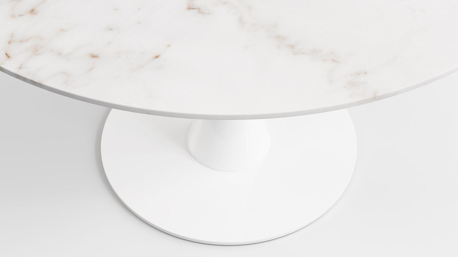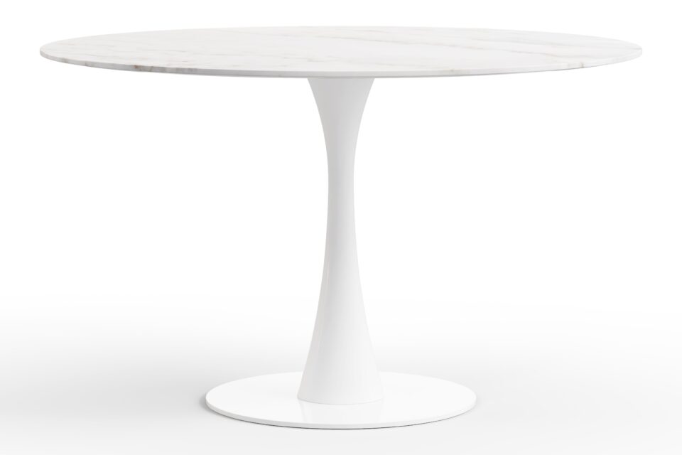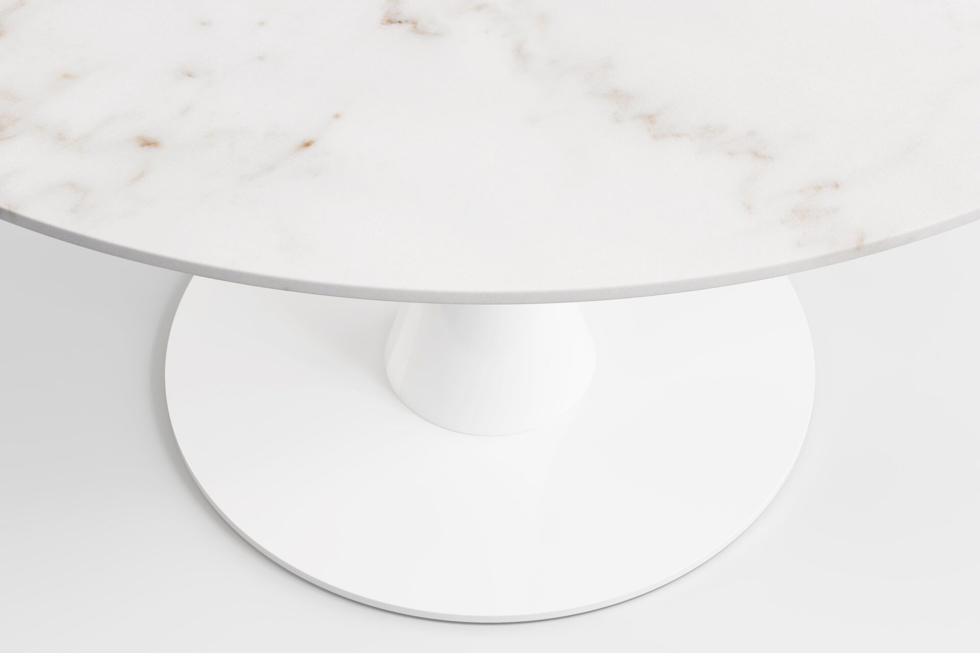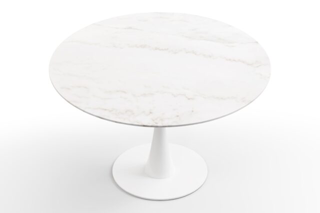 Introducing the stunning Aarhus Table, designed with a chic aesthetic and a sleek pedestal base that eschews traditional heavy legs for a modern dining experience. Inspired by futuristic mid-1950s style, this piece serves both dining and sleek desk needs. The Calacatta Marble version elevates its elegance, making it a versatile, captivating furniture solution for your space.