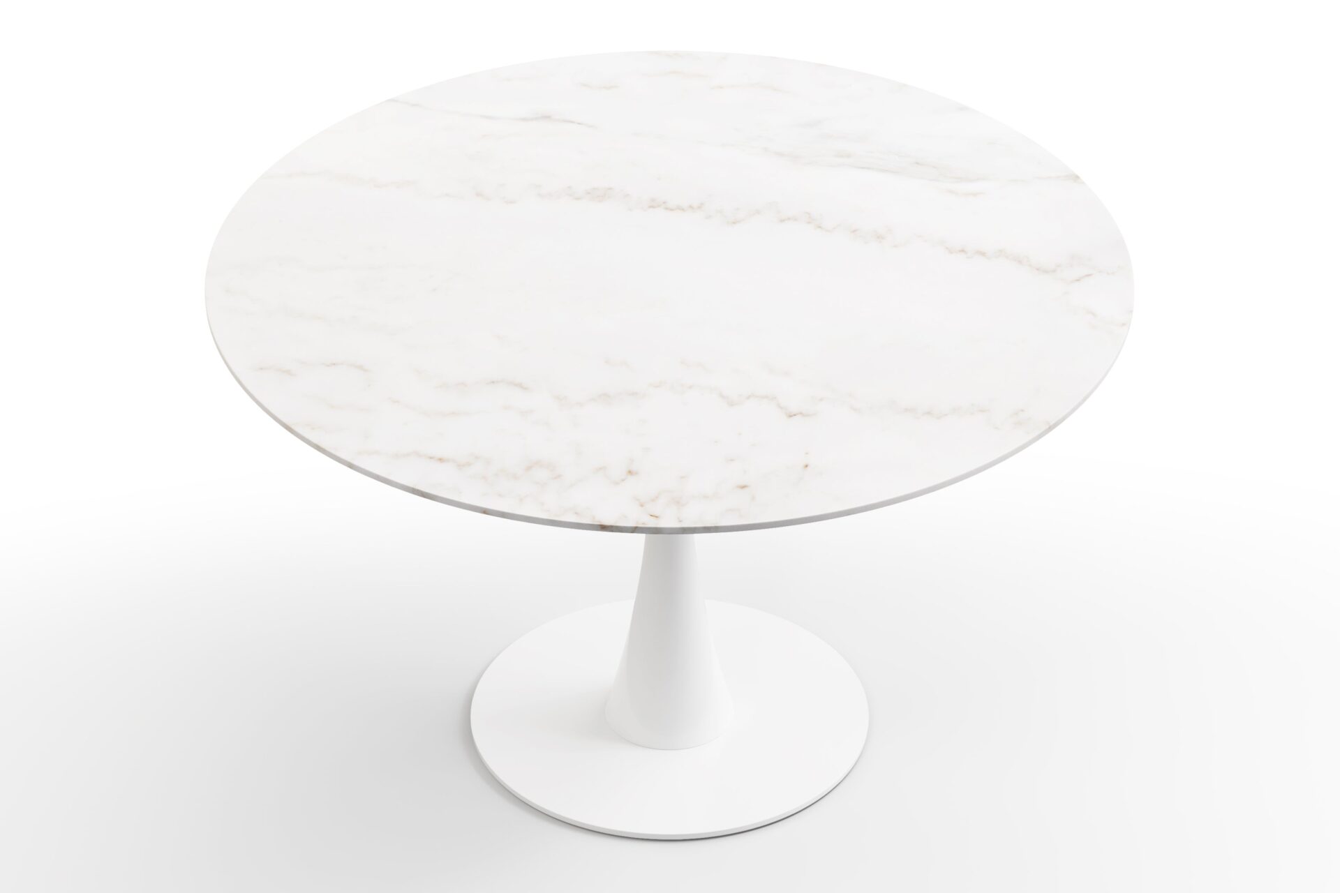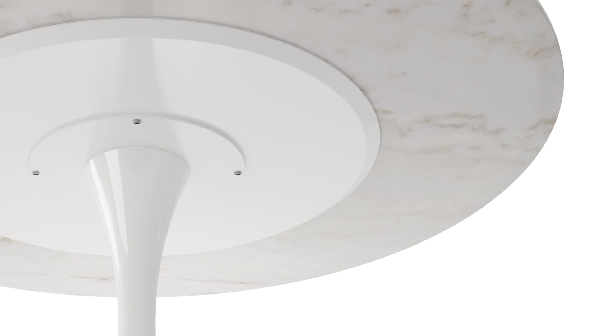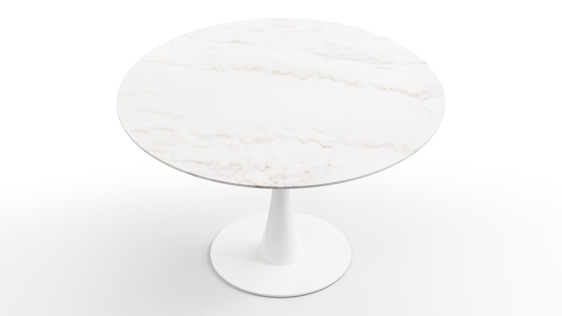 Introducing the stunning Aarhus Table, designed with a chic aesthetic and a sleek pedestal base that eschews traditional heavy legs for a modern dining experience. Inspired by futuristic mid-1950s style, this piece serves both dining and sleek desk needs. The Calacatta Marble version elevates its elegance, making it a versatile, captivating furniture solution for your space.